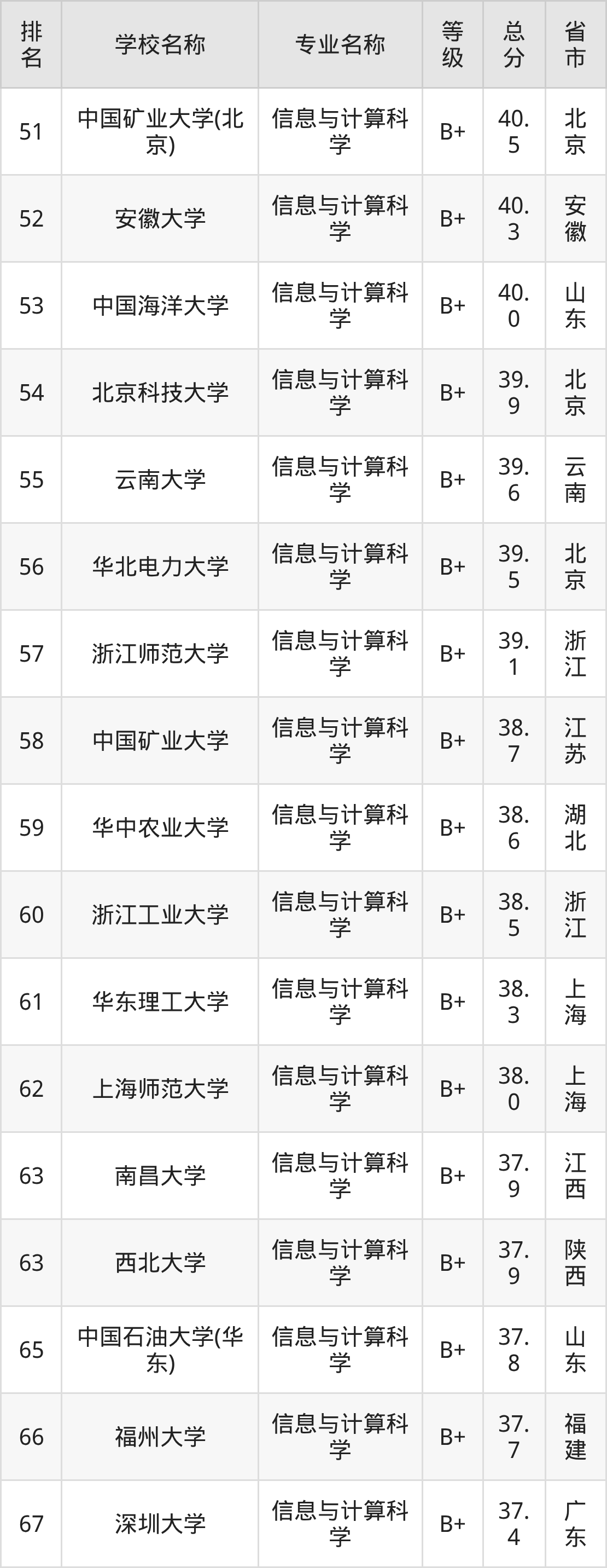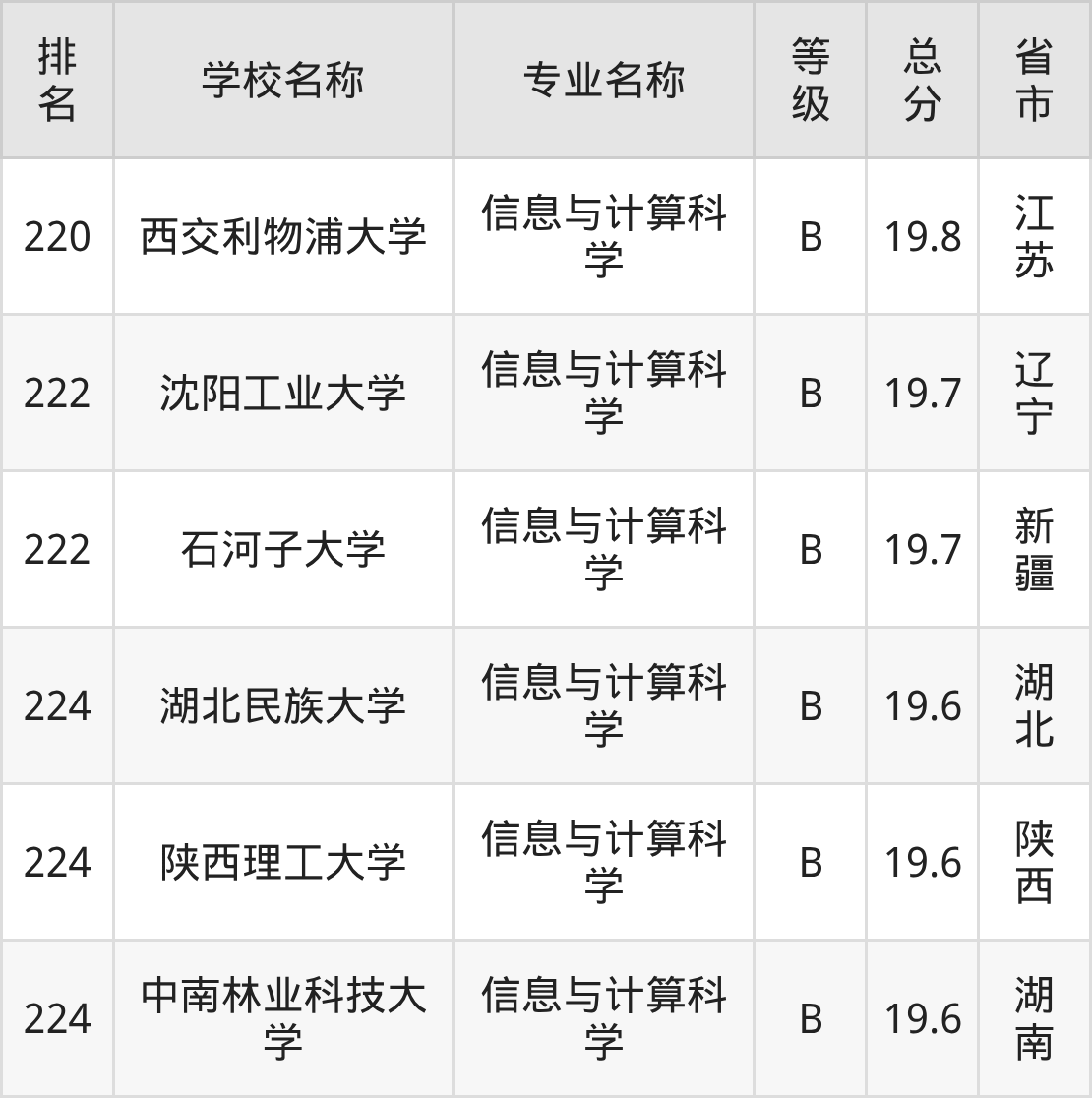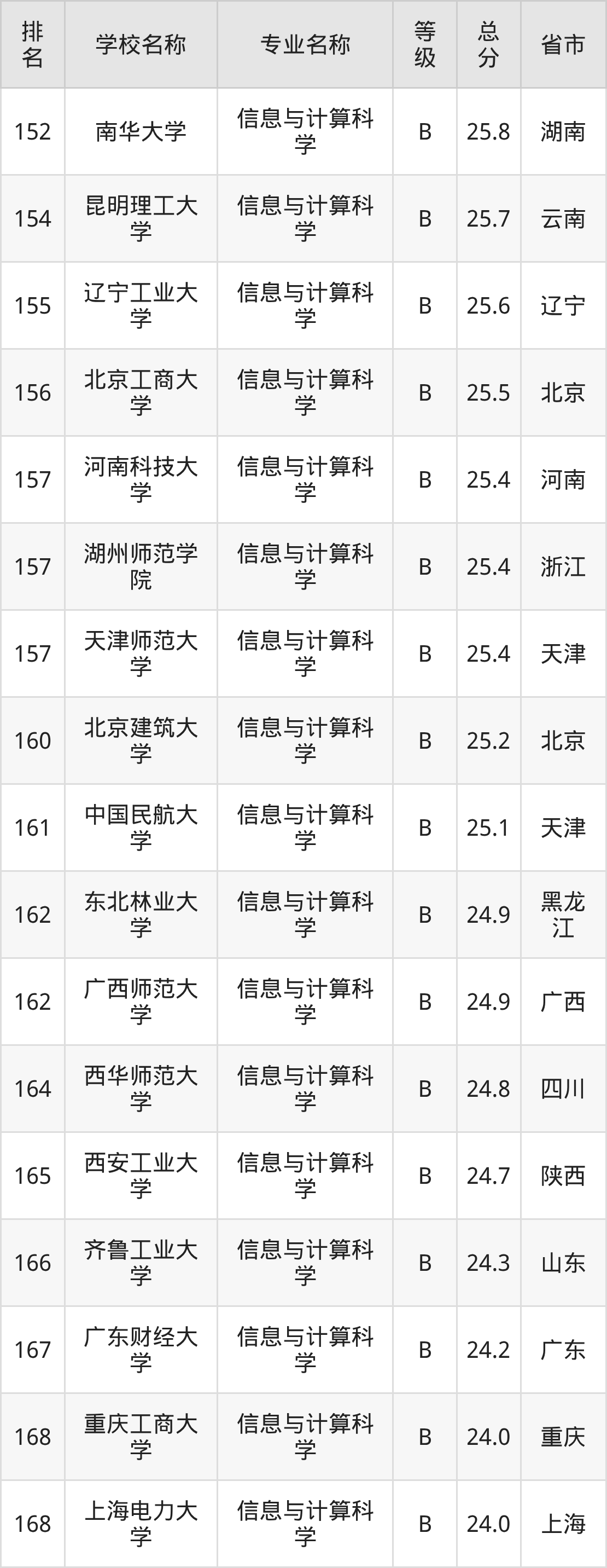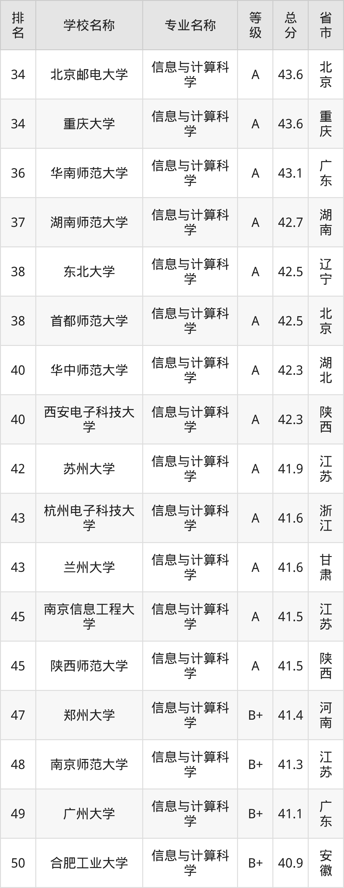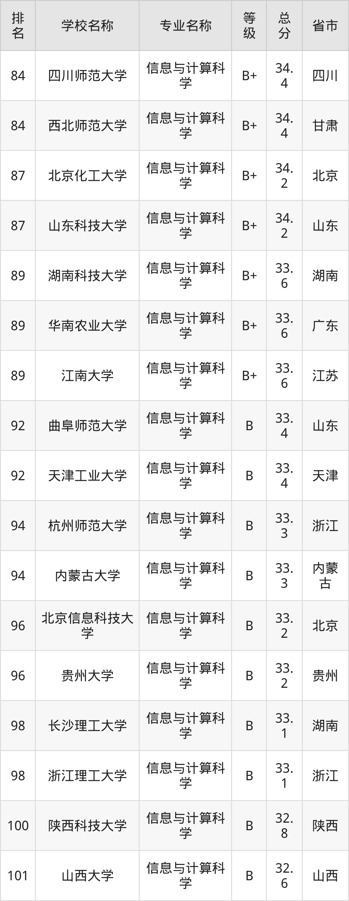 附信息与计算科学专业全国226所院校排名榜单一览表!
