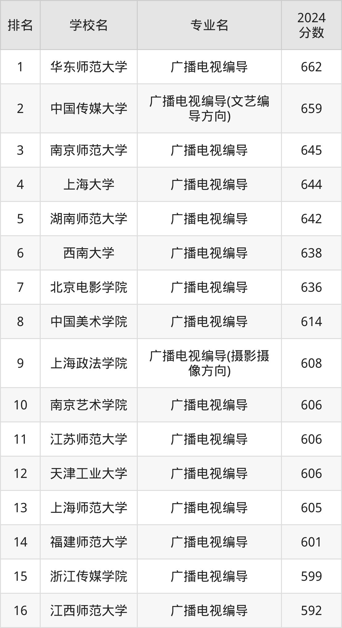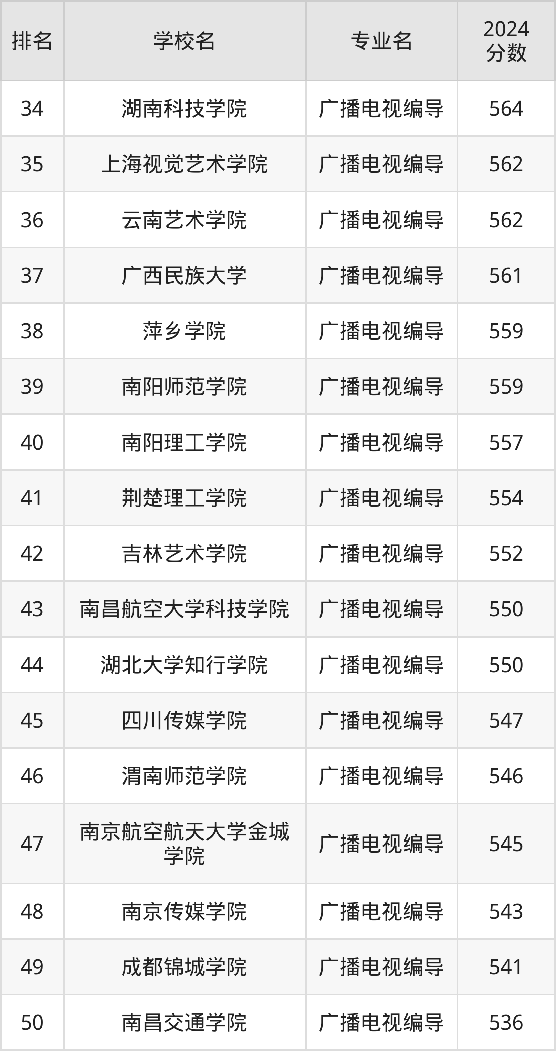 (注:不包含把广播电视编导专业列在大类专业中招生的名校)