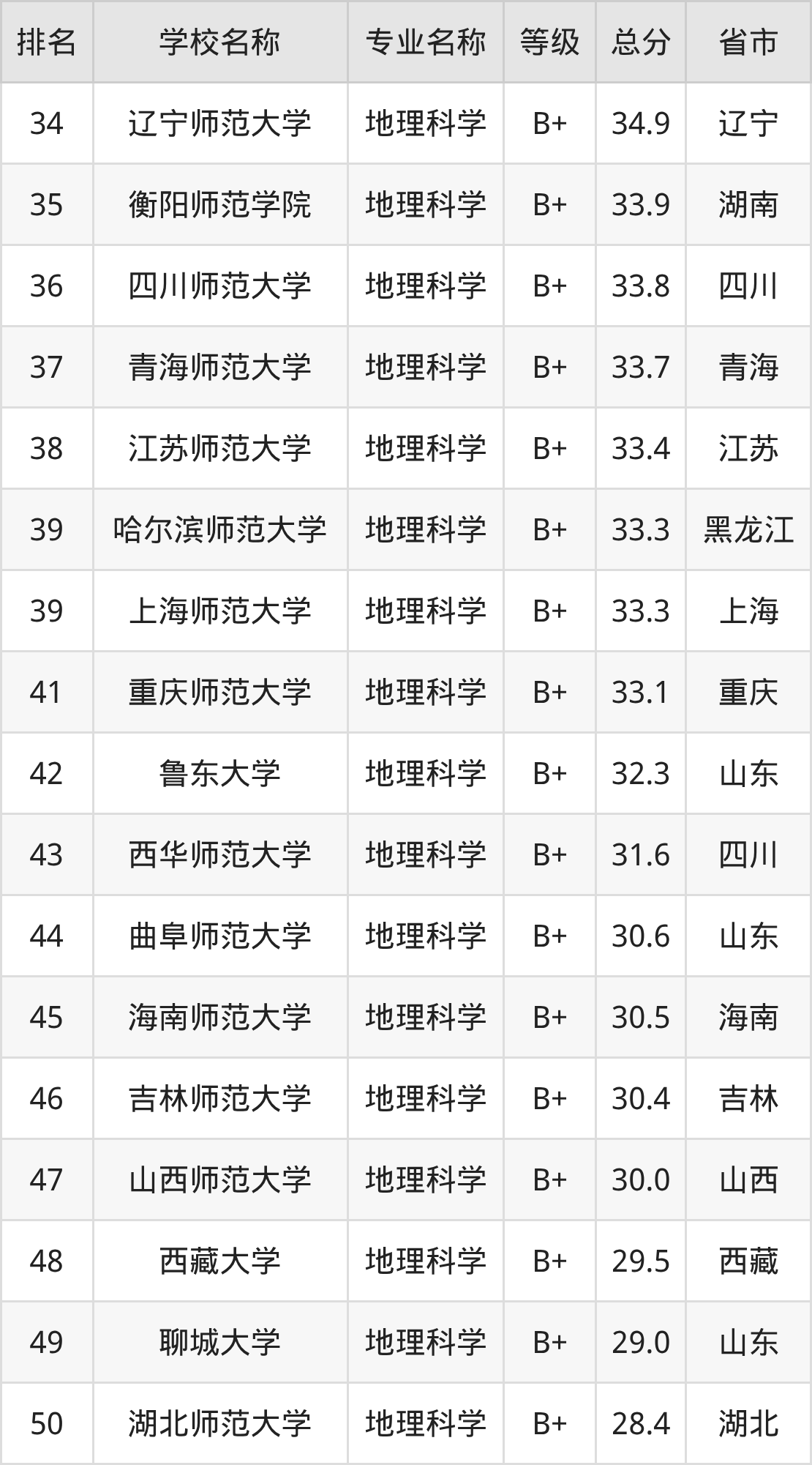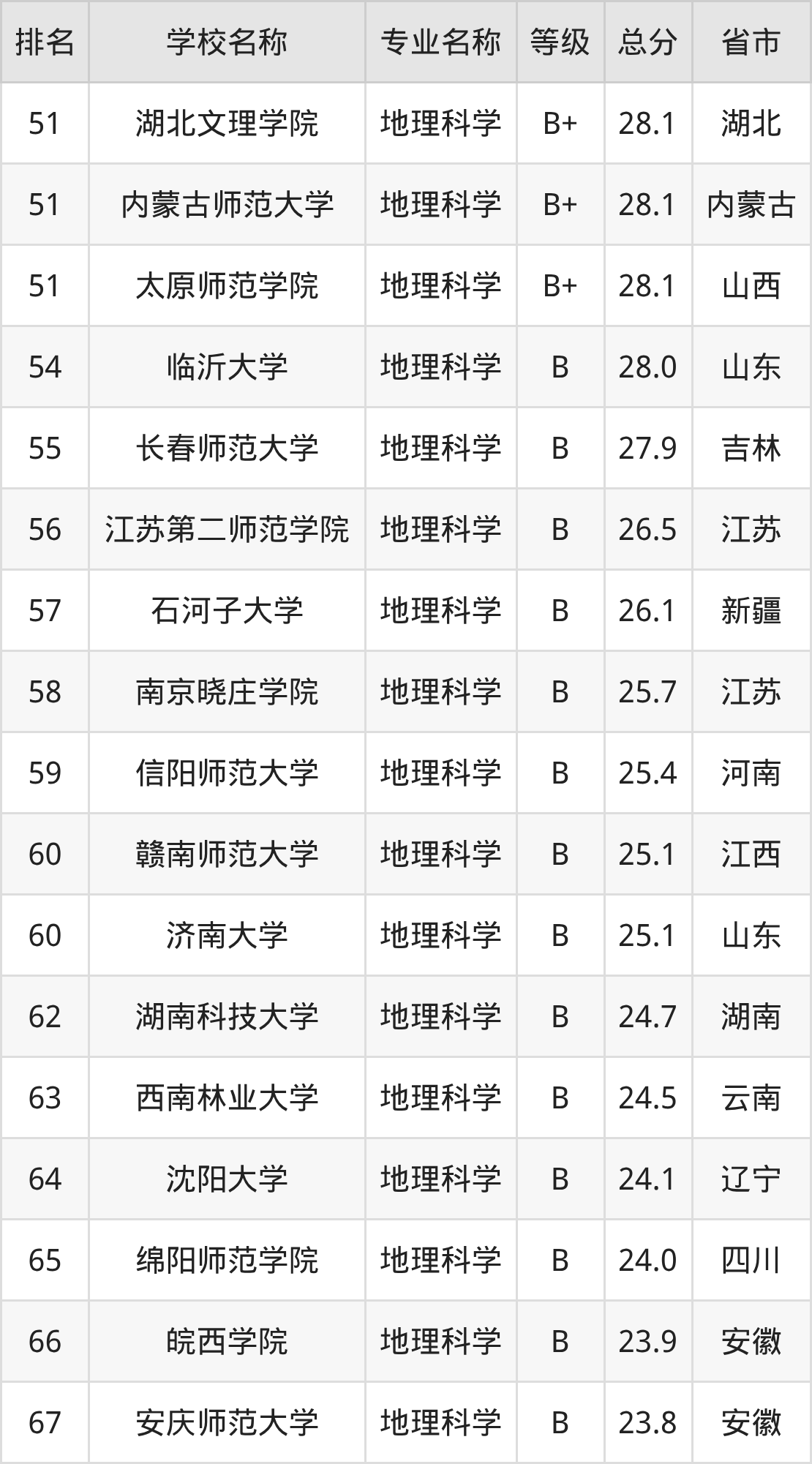 一、2025年地理科学专业全国大学排名
