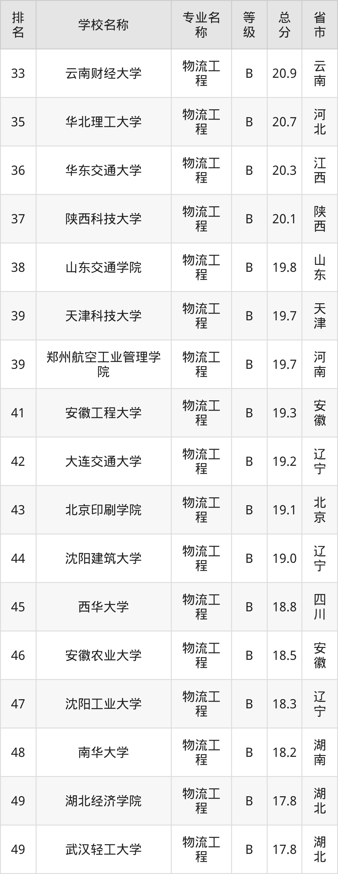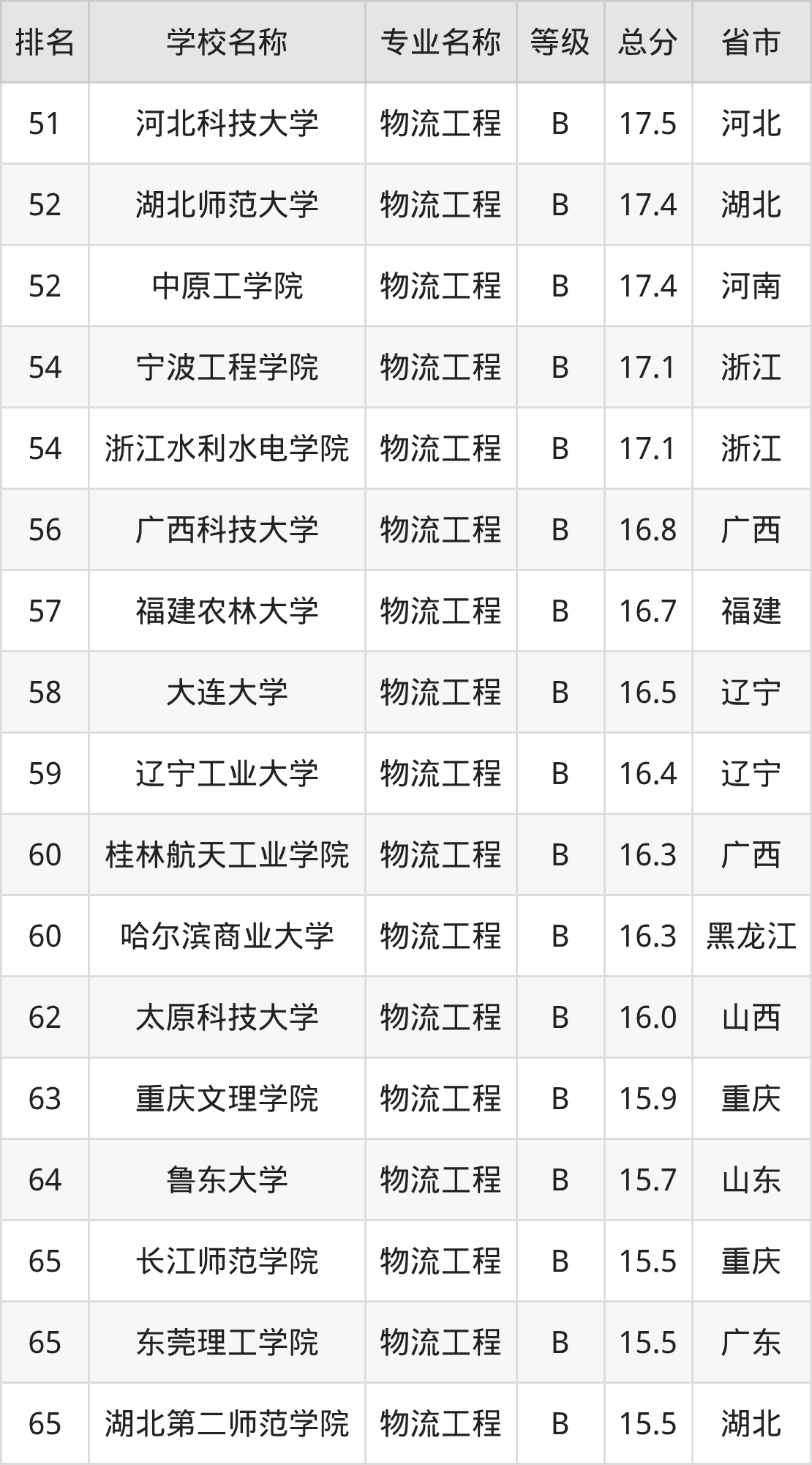 根据软科榜单可知,物流工程专业全国排名前十的大学分别是:
