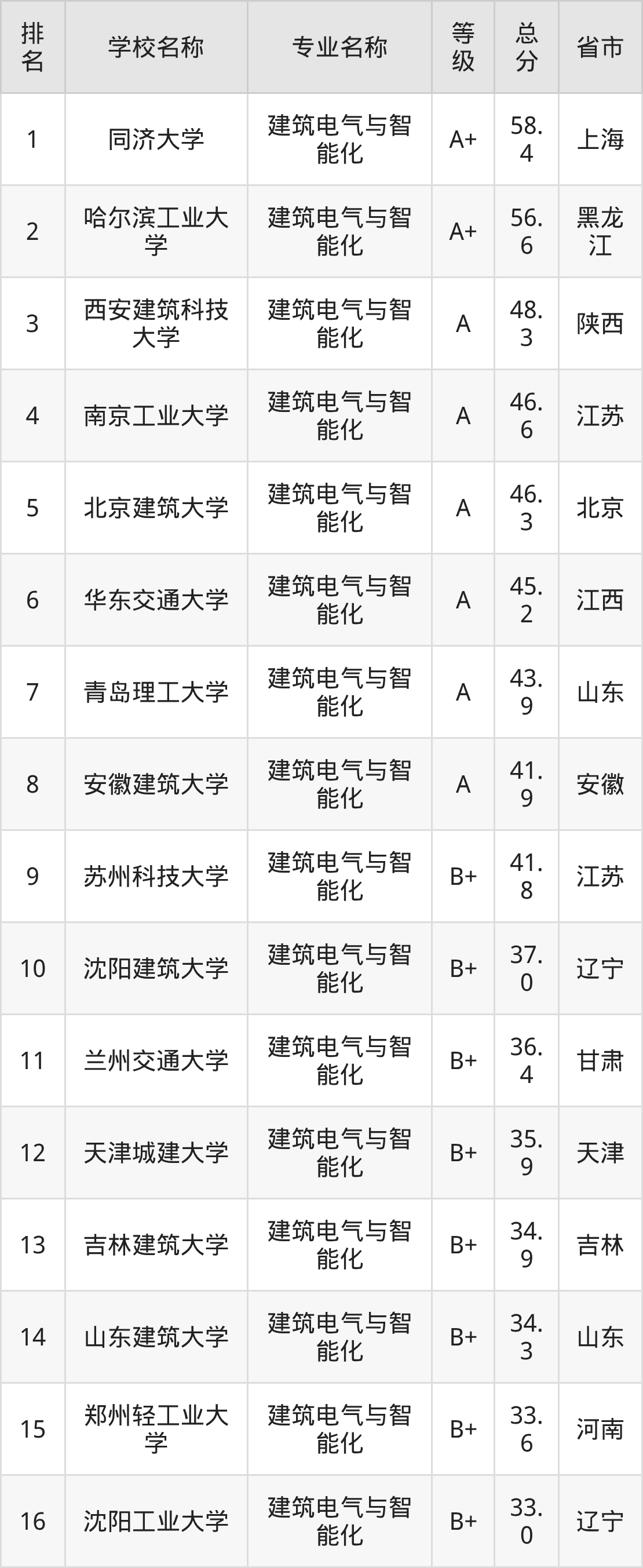 附建筑电气与智能化专业全国42所院校排名榜单一览表!