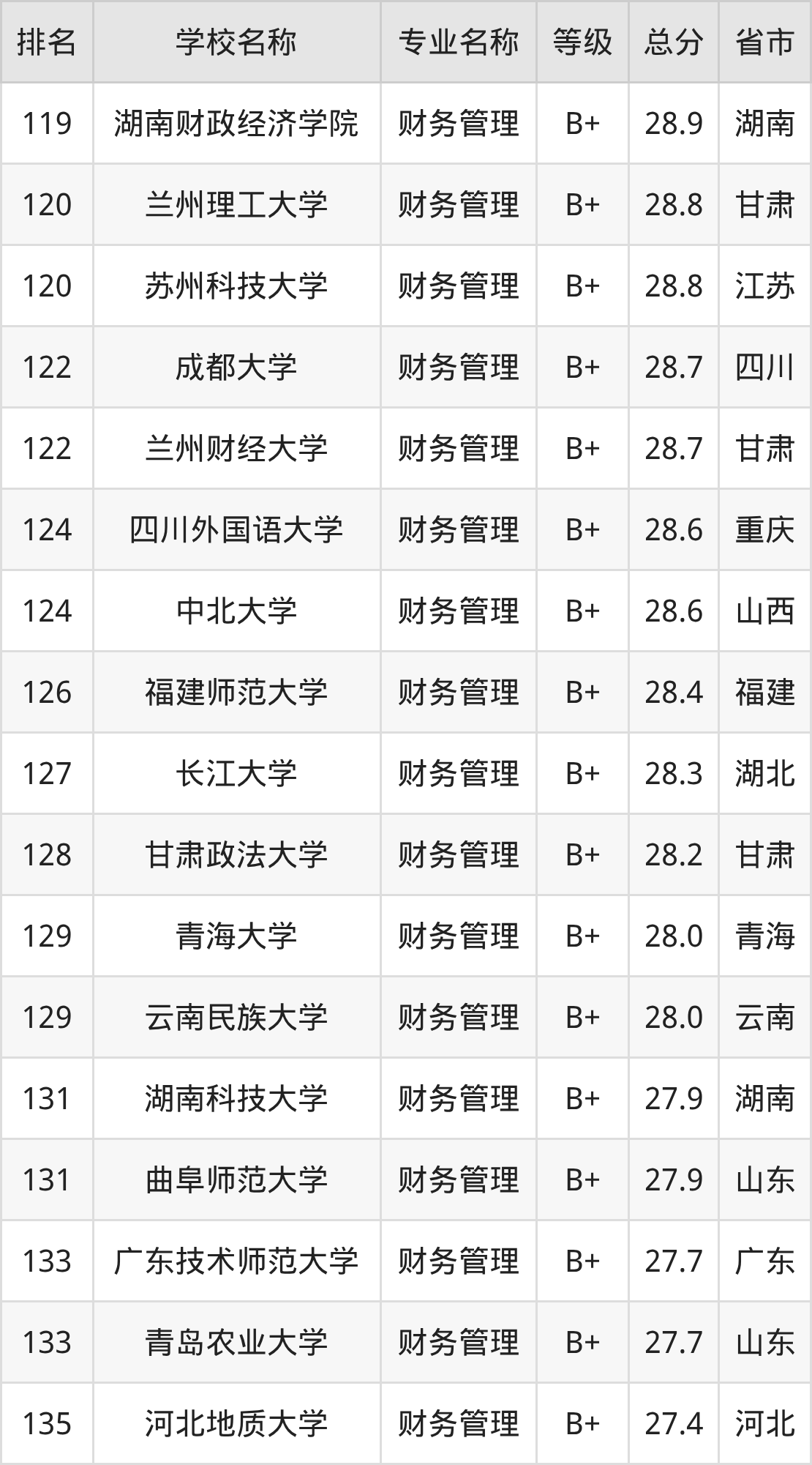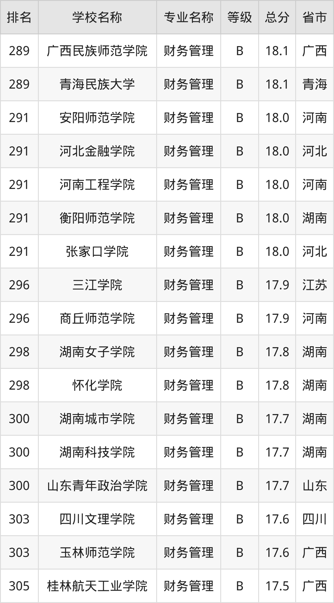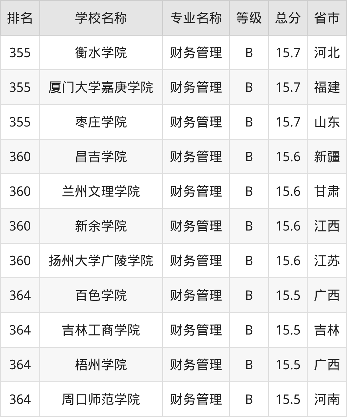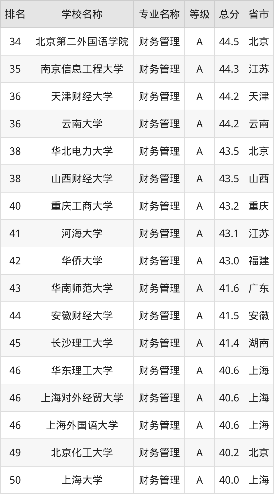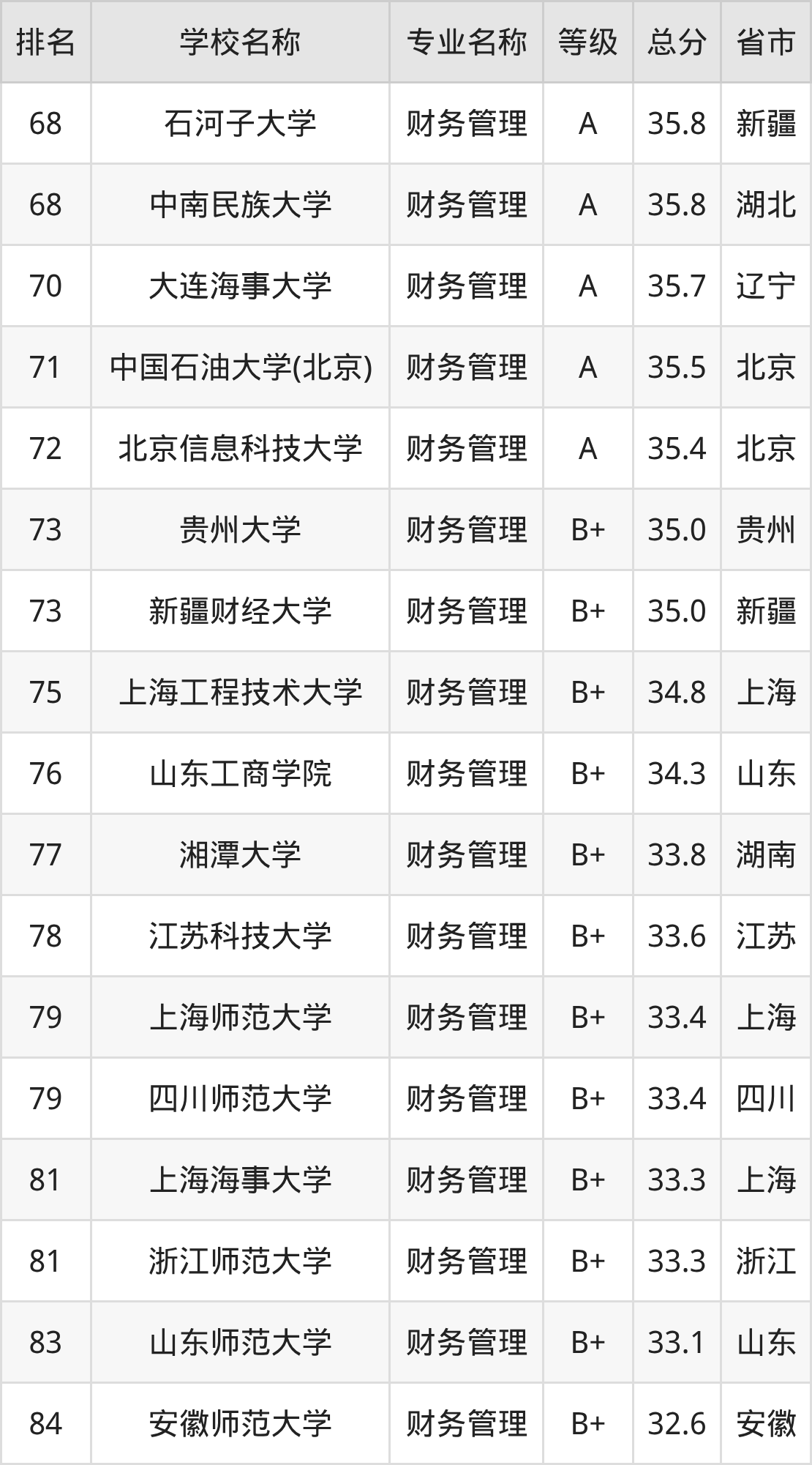 根据软科榜单可知,财务管理专业全国排名前十的大学分别是: