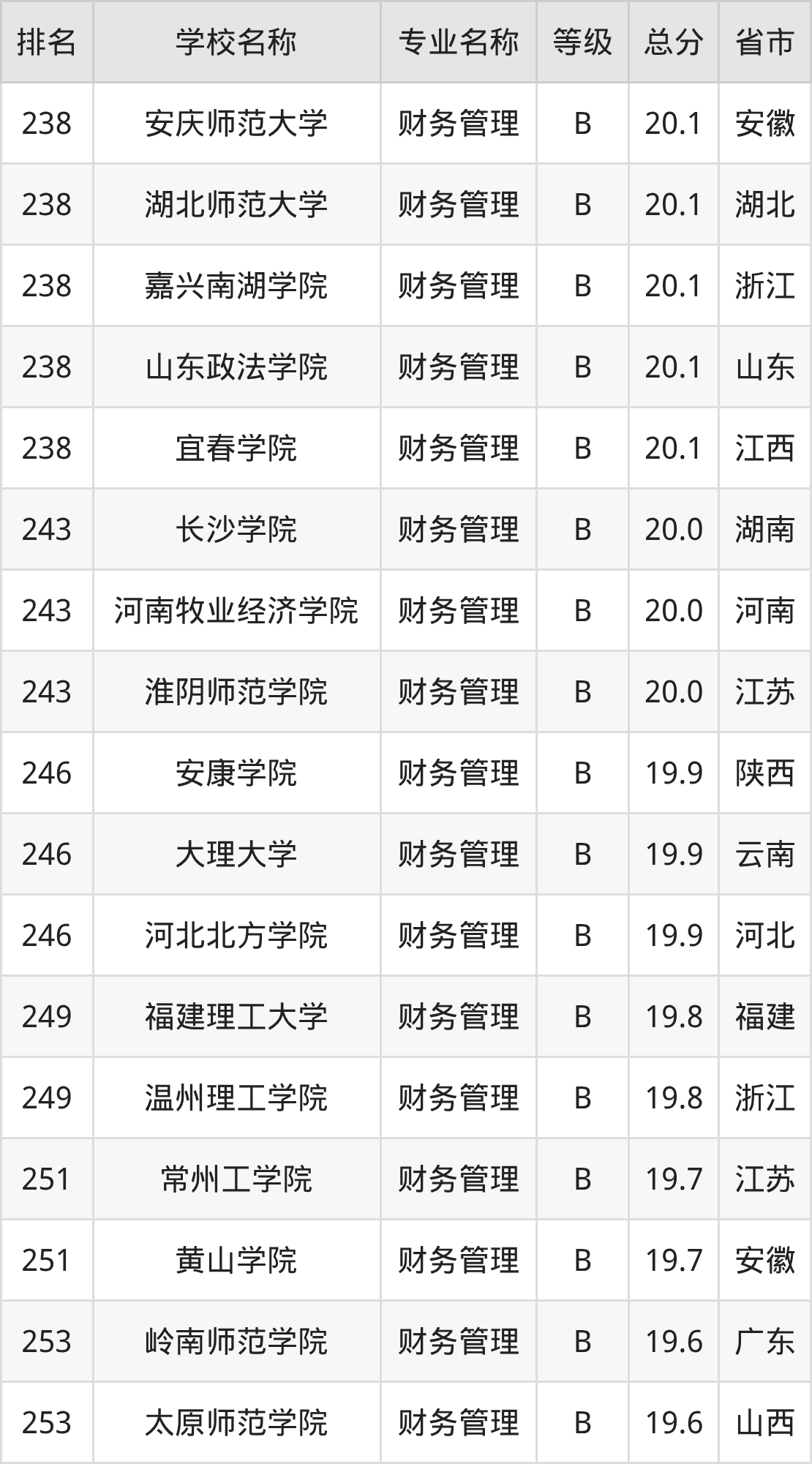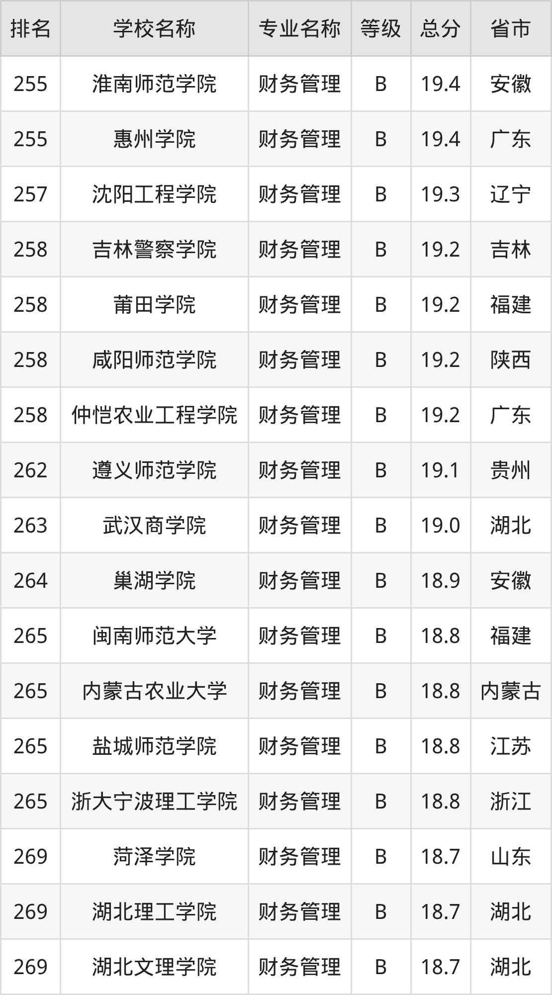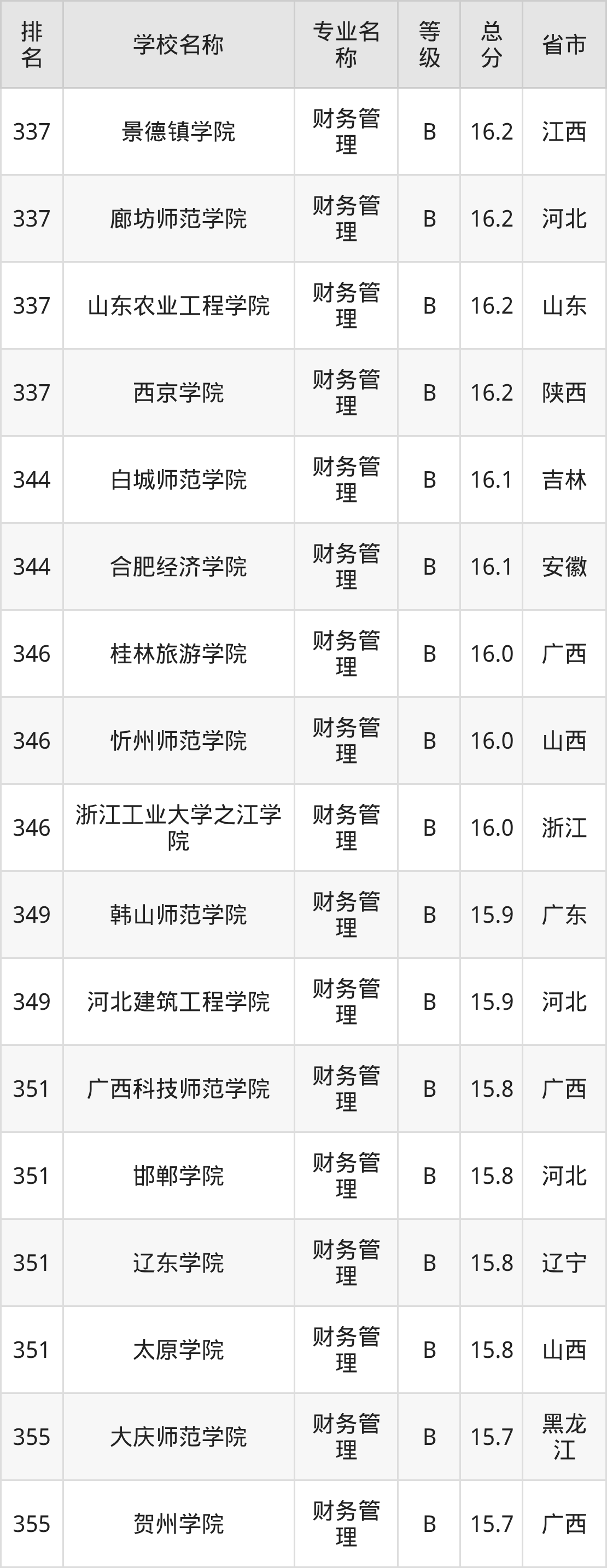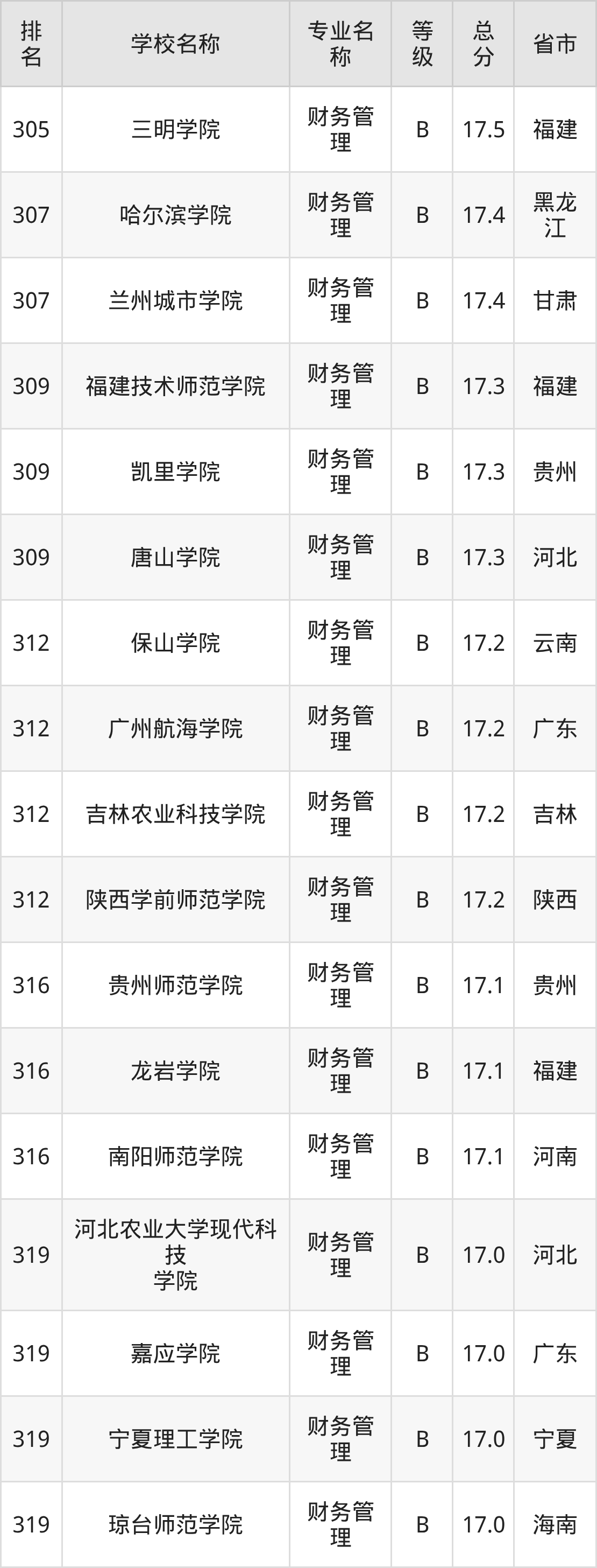 根据软科榜单可知,财务管理专业全国排名前十的大学分别是: