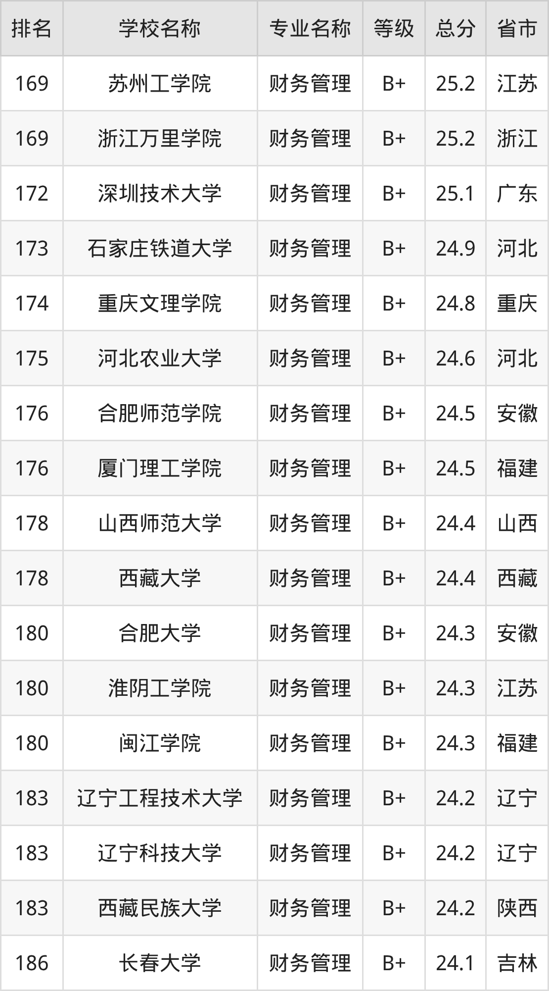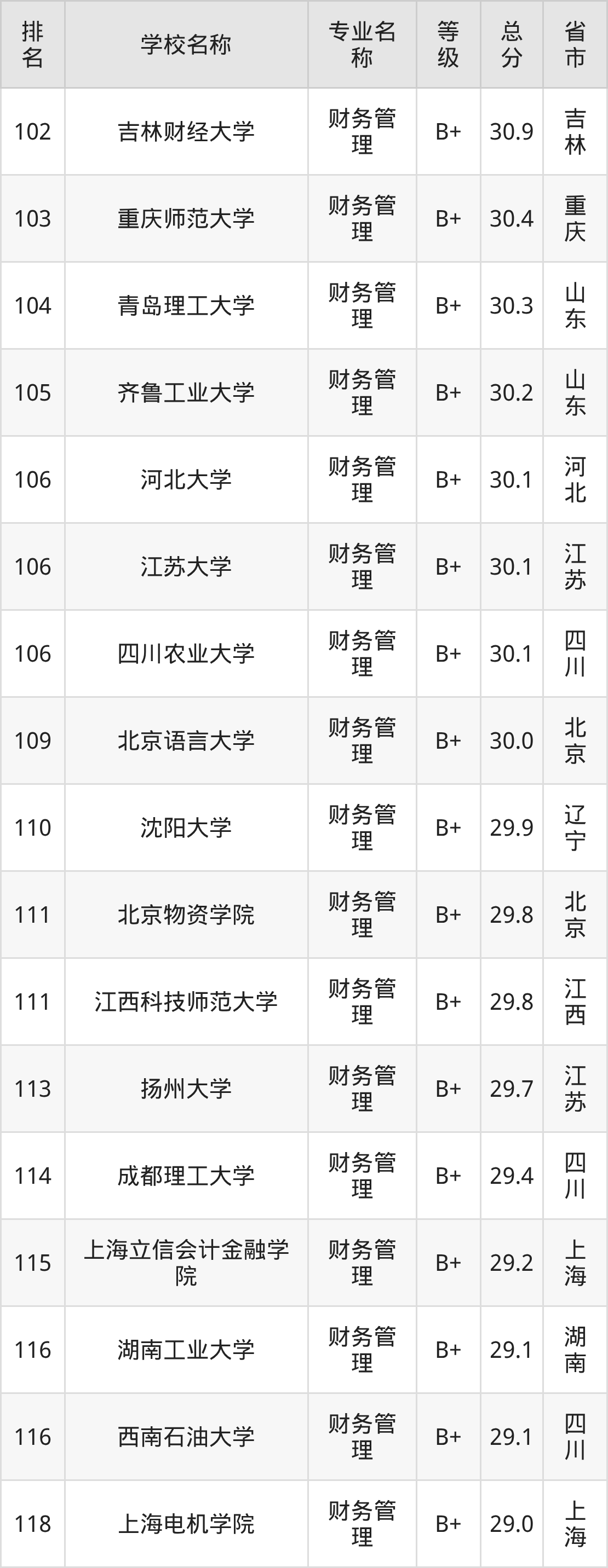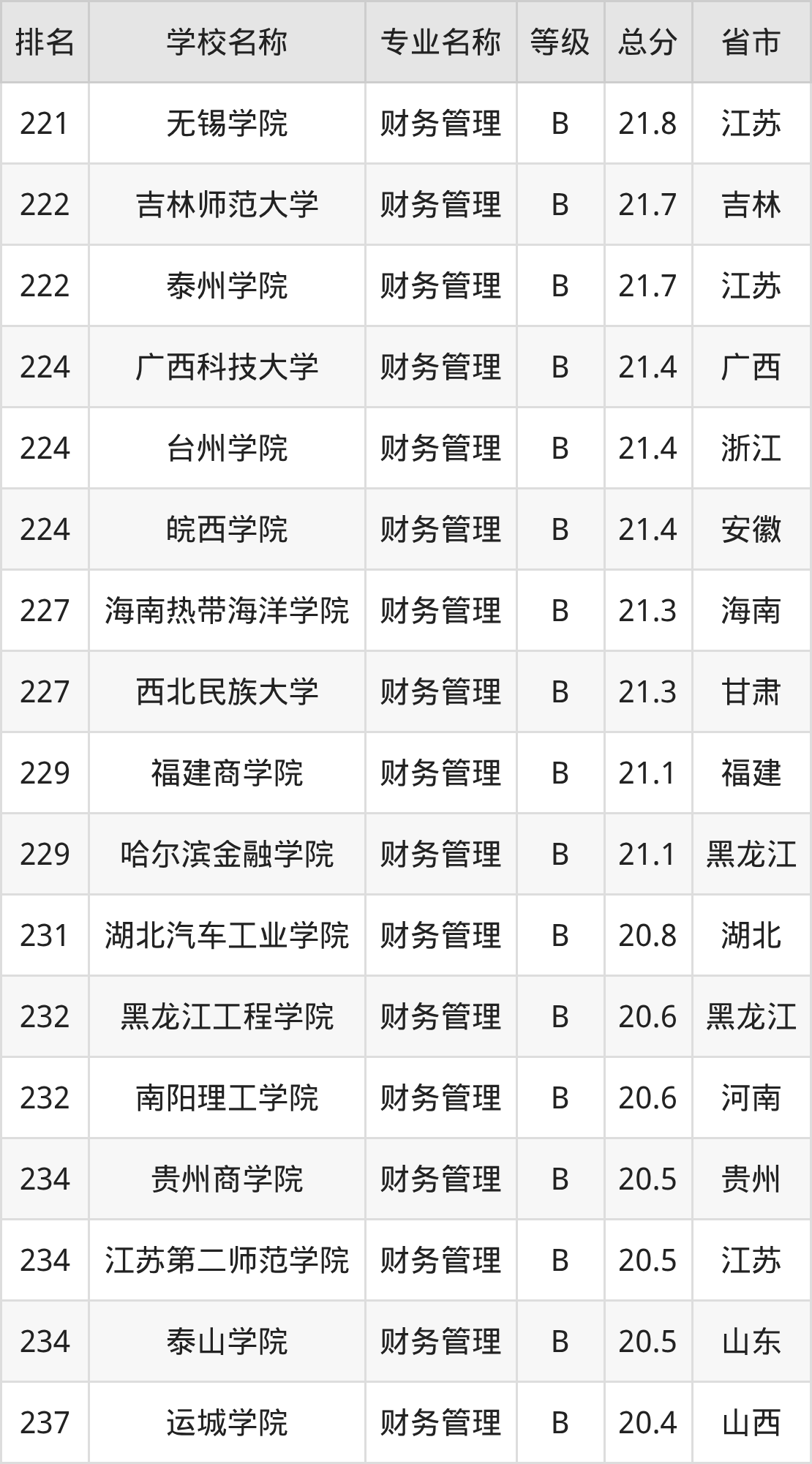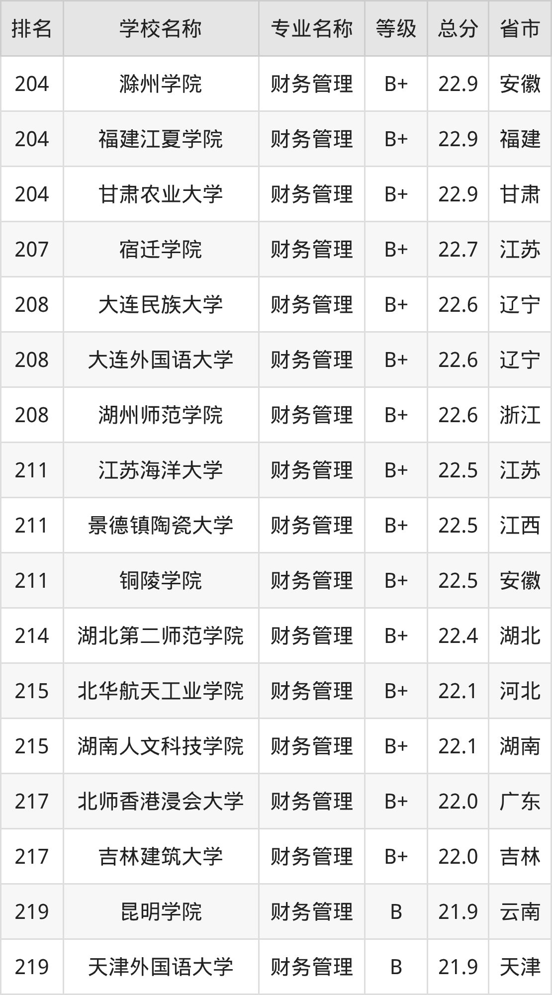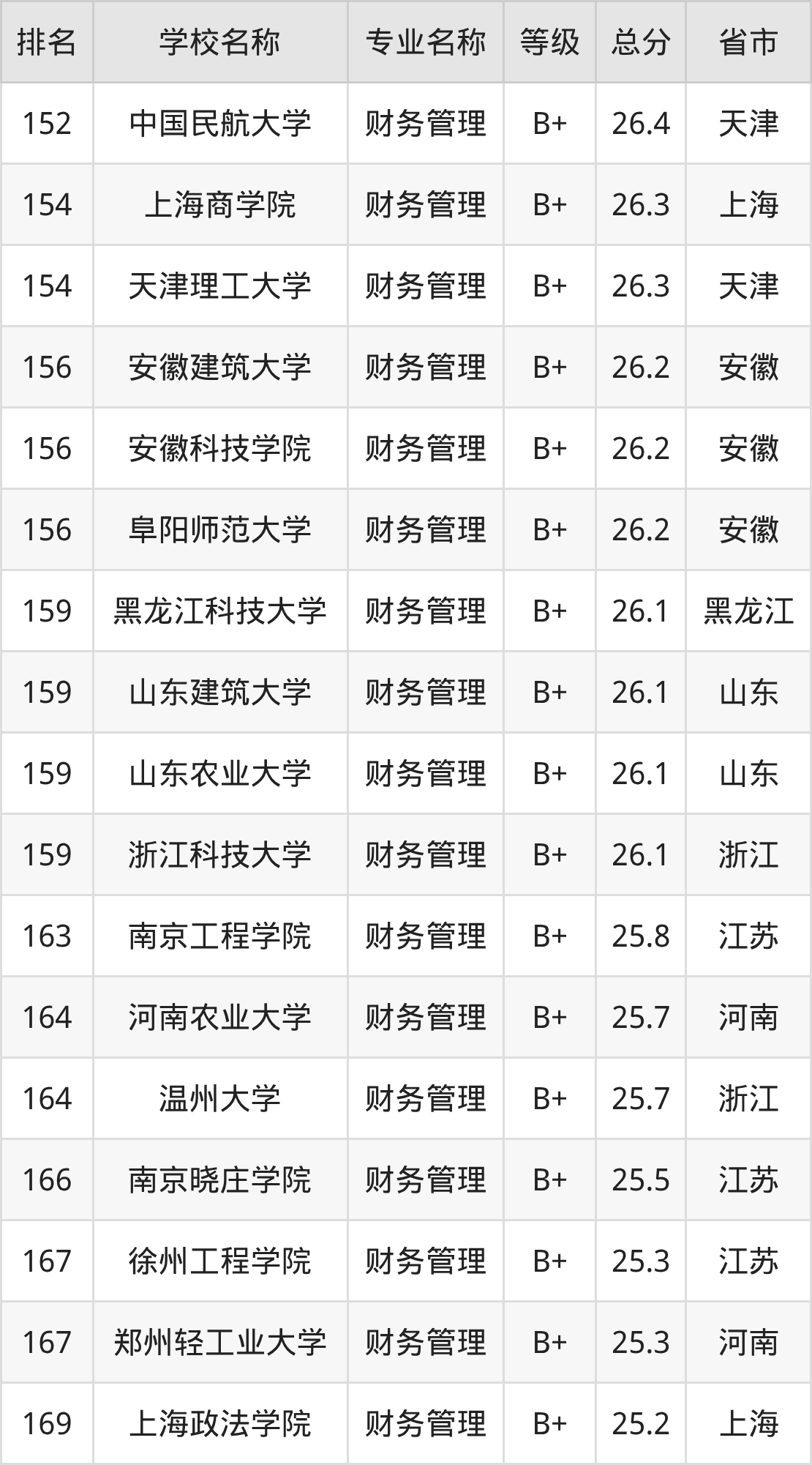 根据软科榜单可知,财务管理专业全国排名前十的大学分别是: