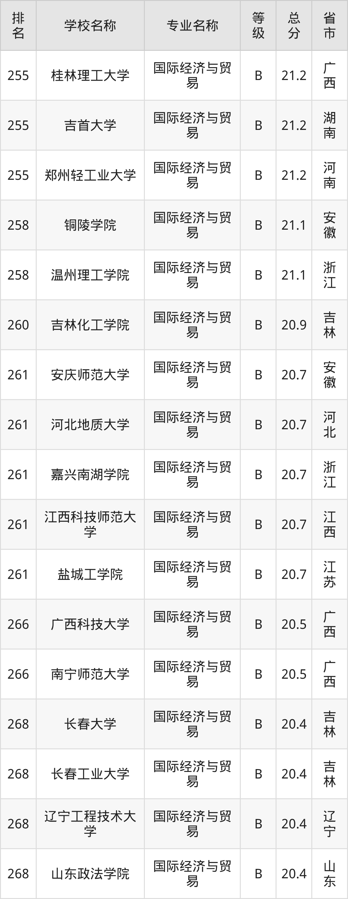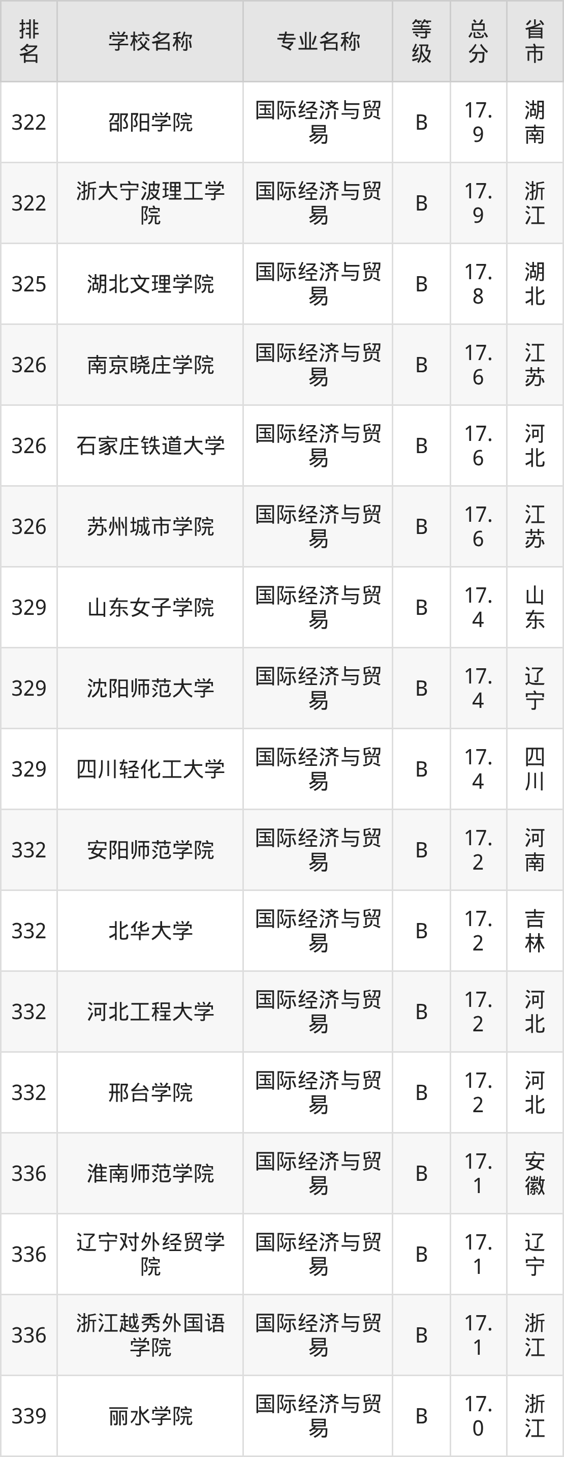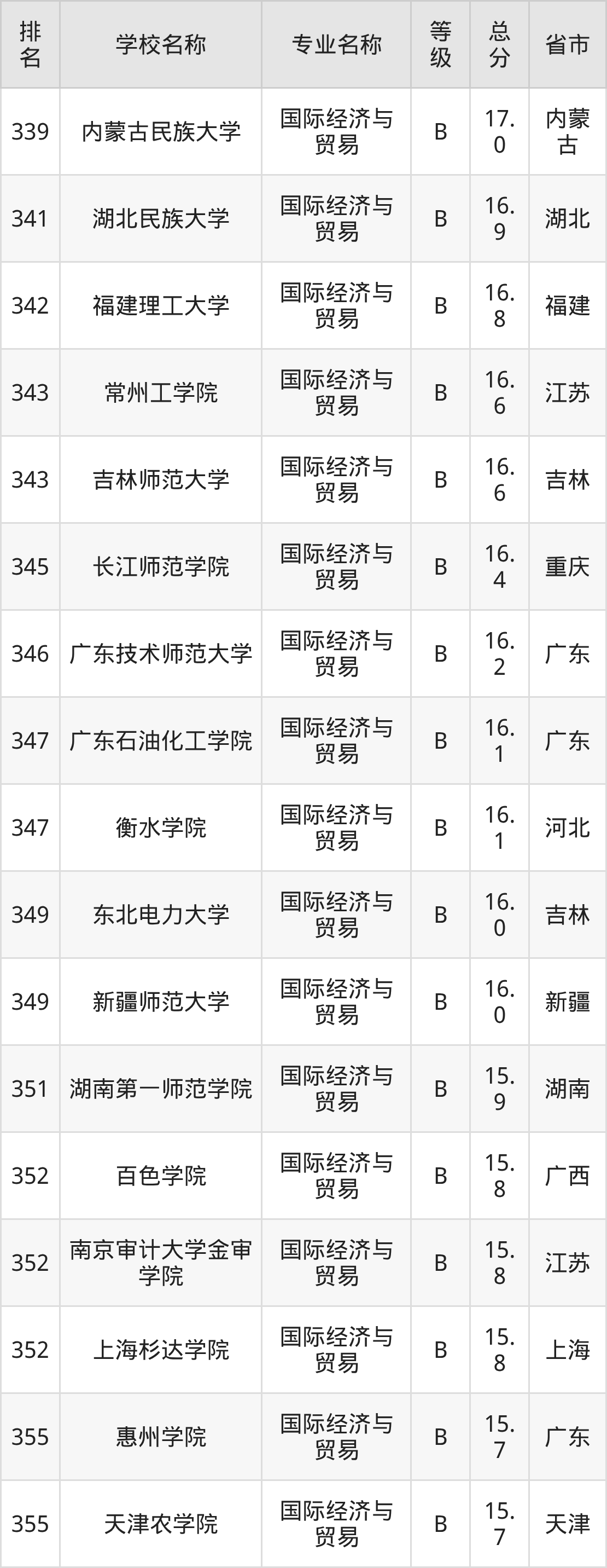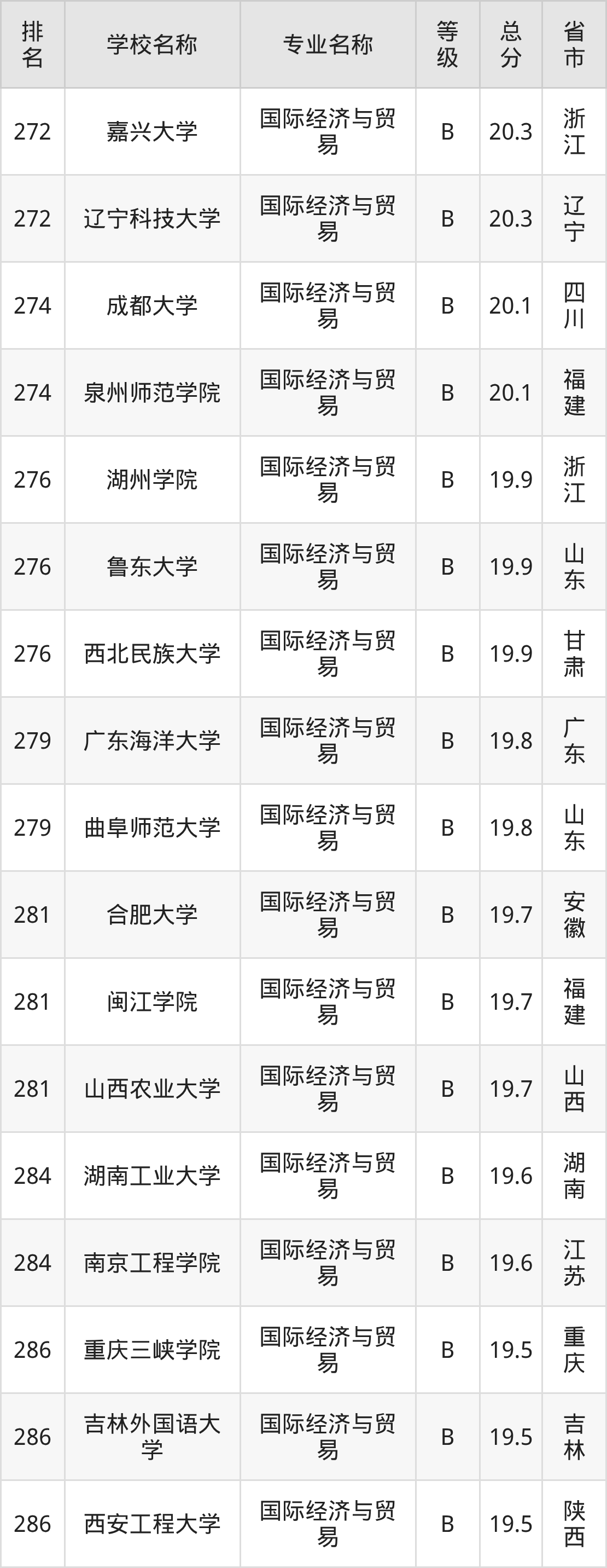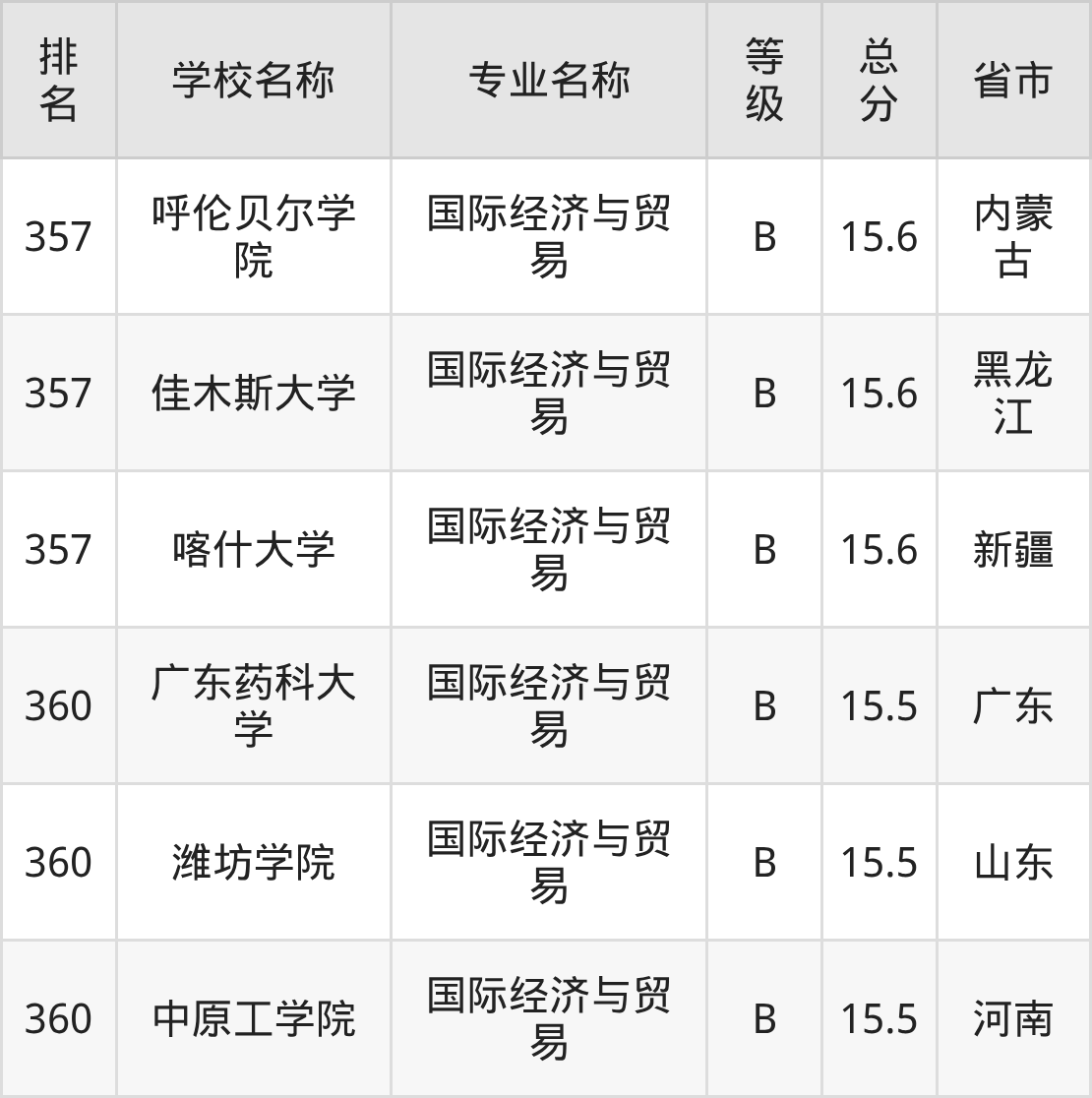 附国际经济与贸易专业全国362所院校排名榜单一览表!