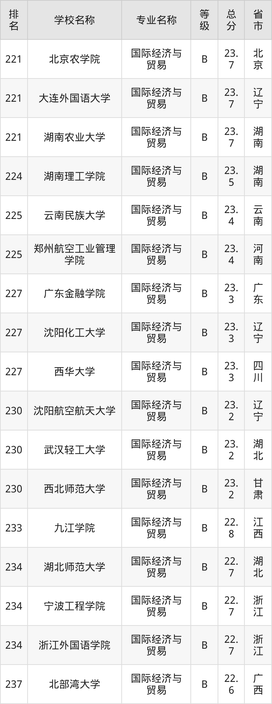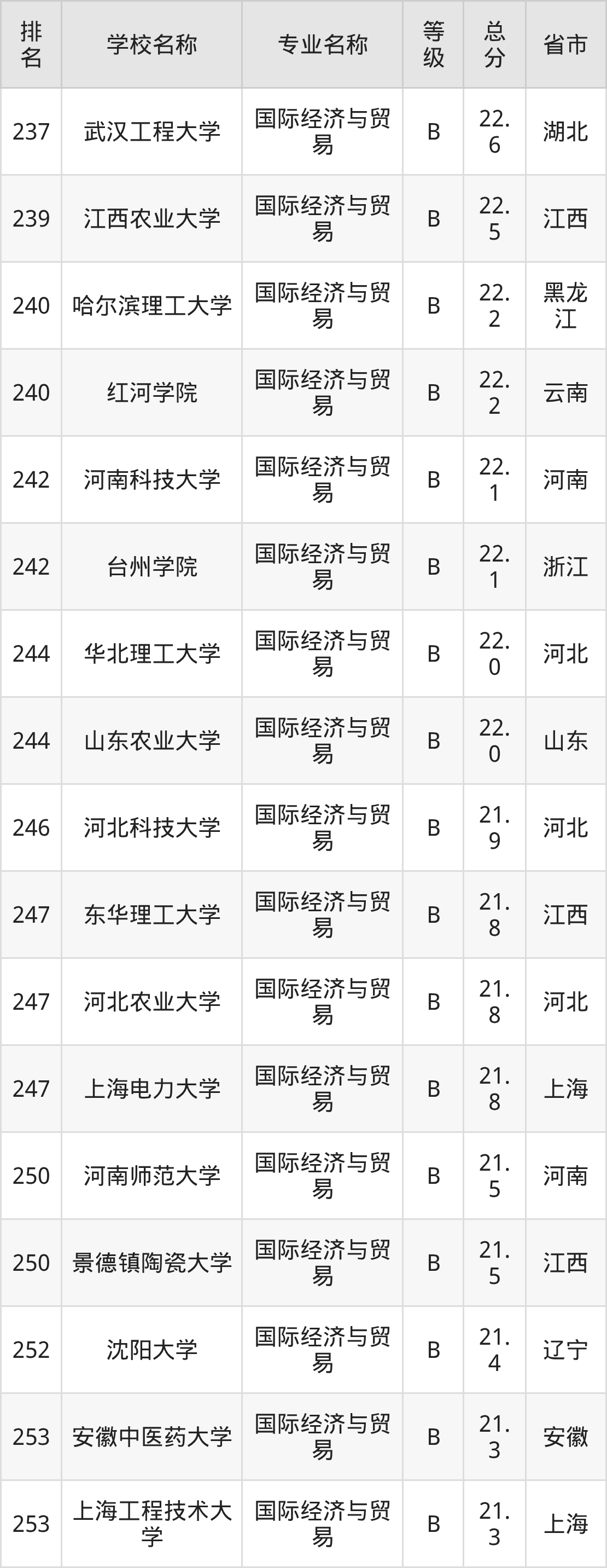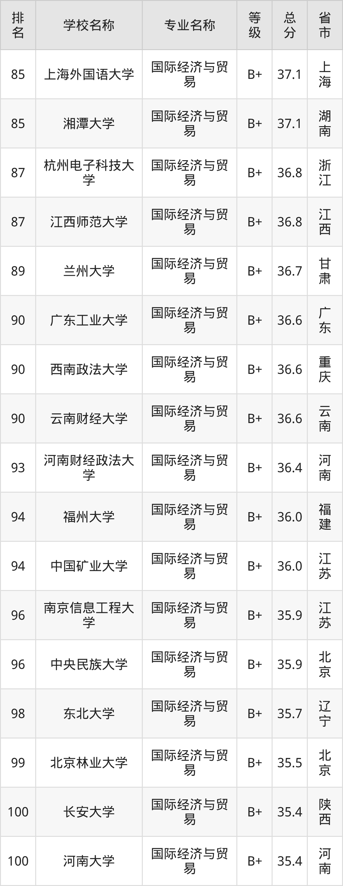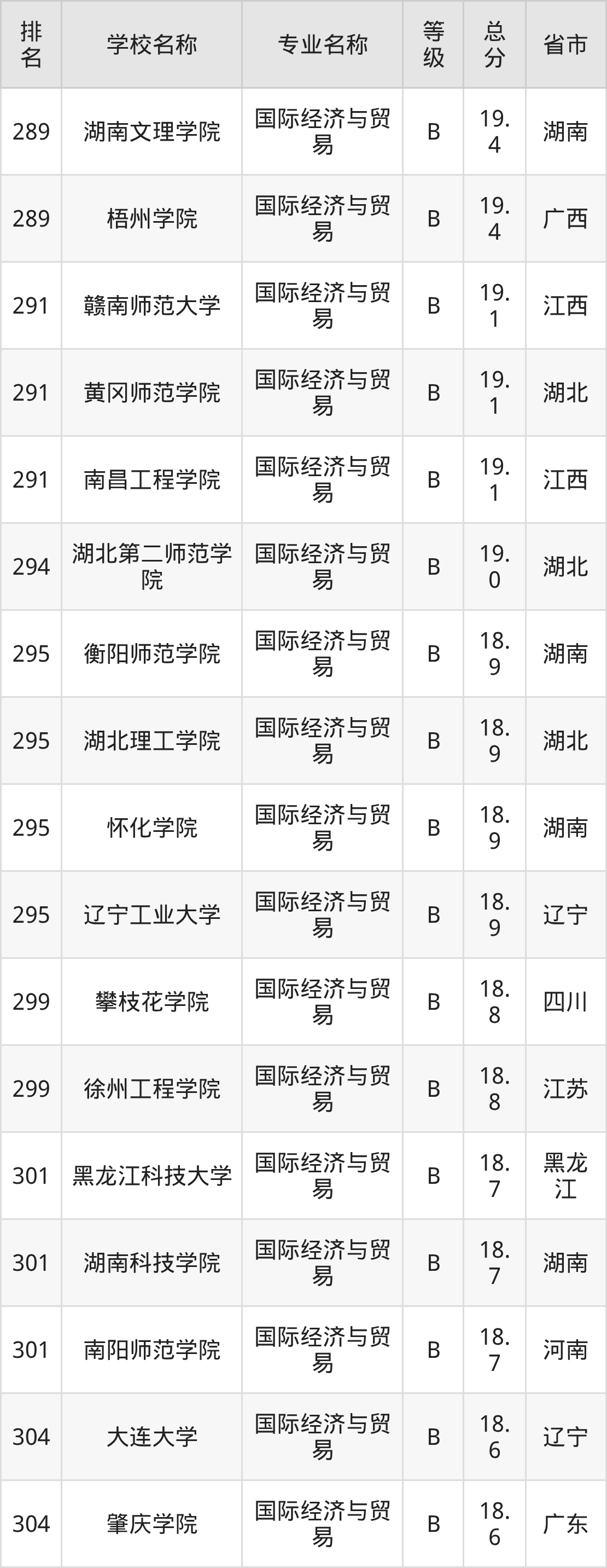附国际经济与贸易专业全国362所院校排名榜单一览表!