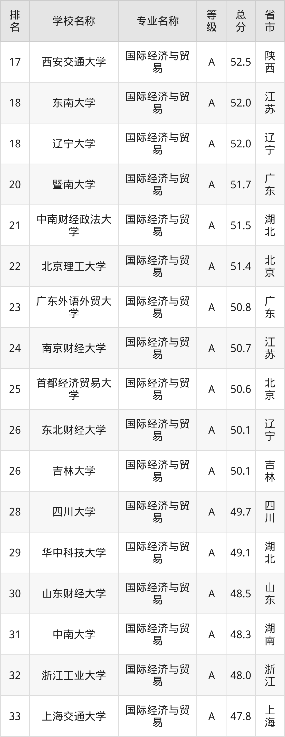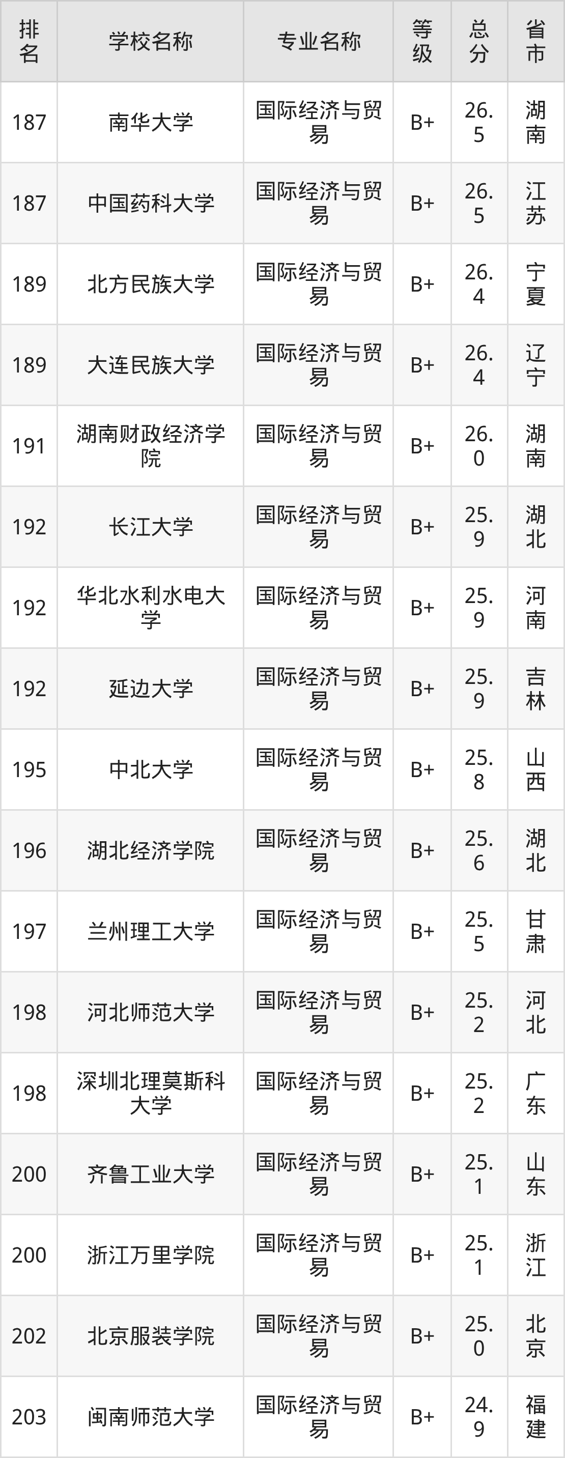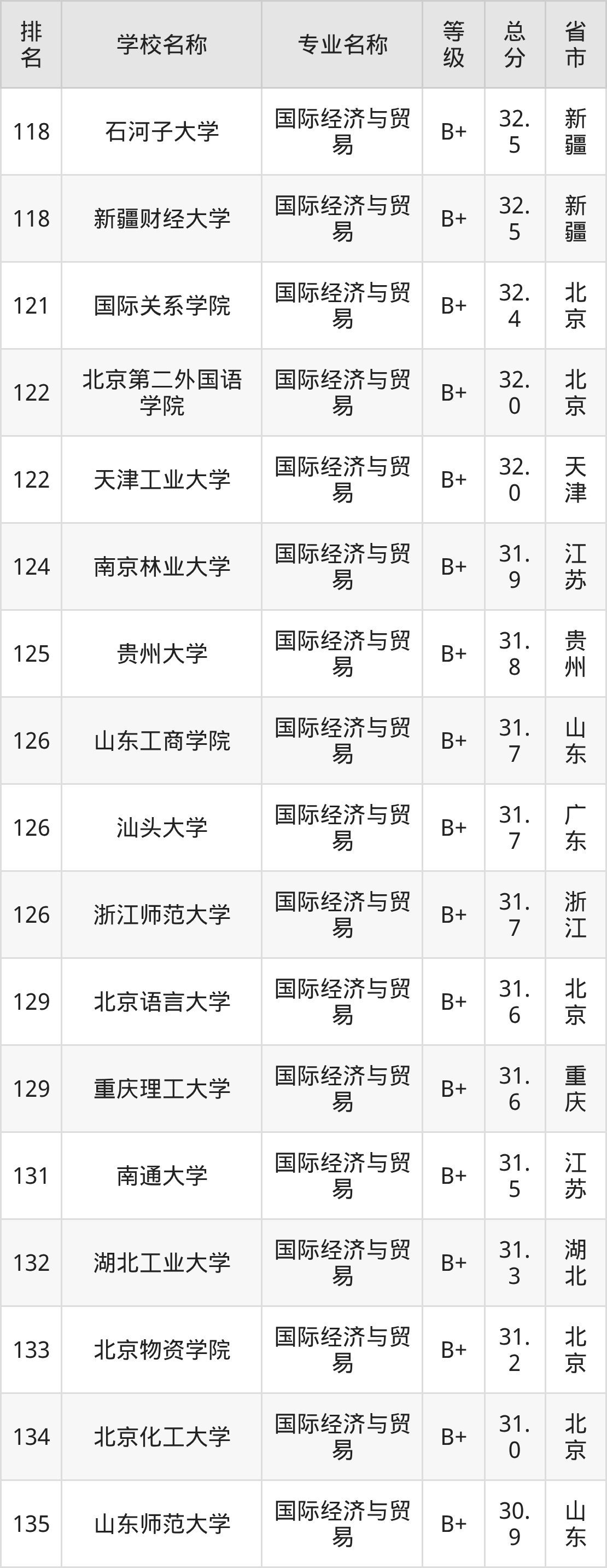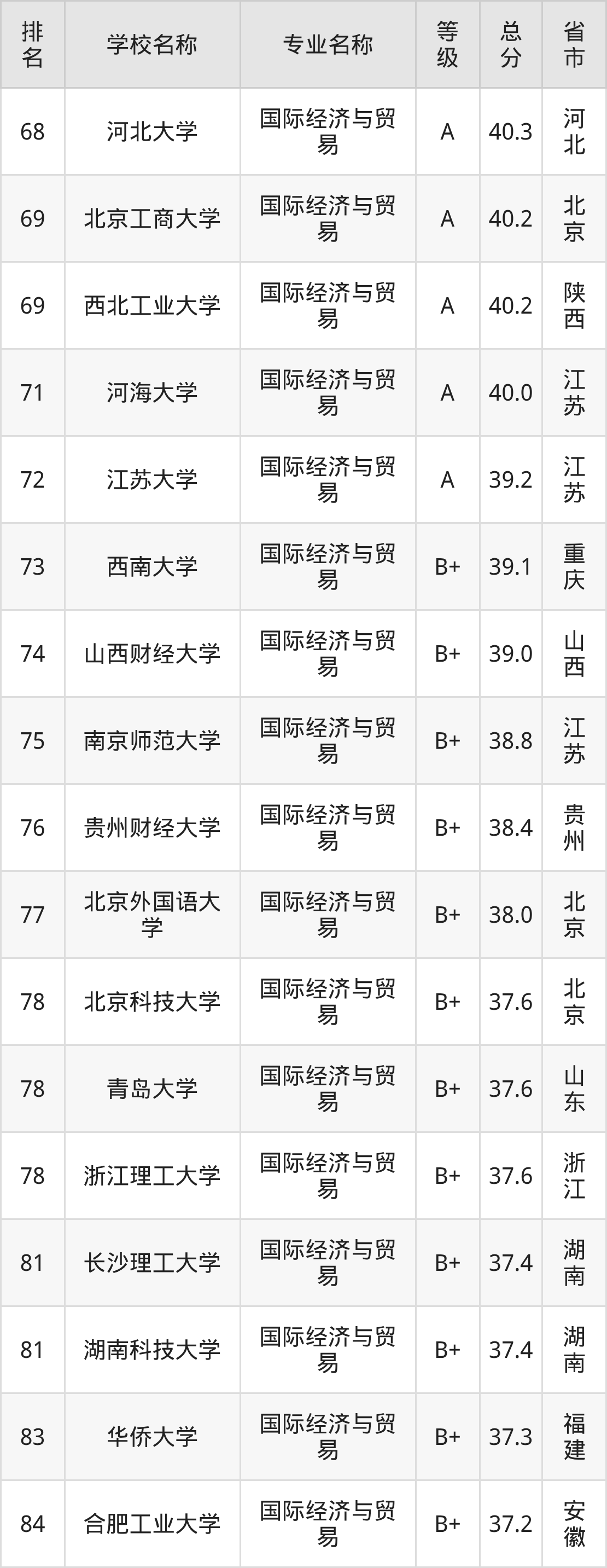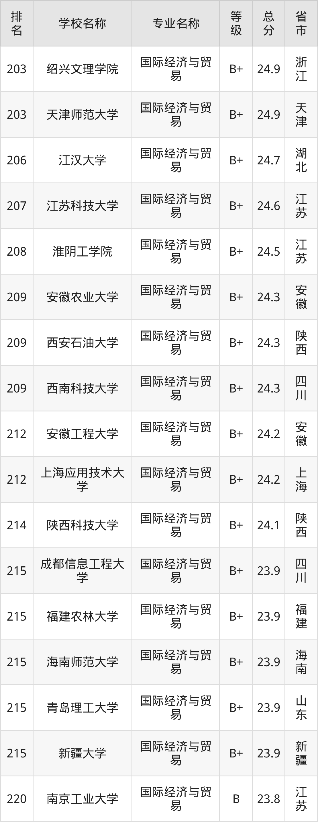 附国际经济与贸易专业全国362所院校排名榜单一览表!