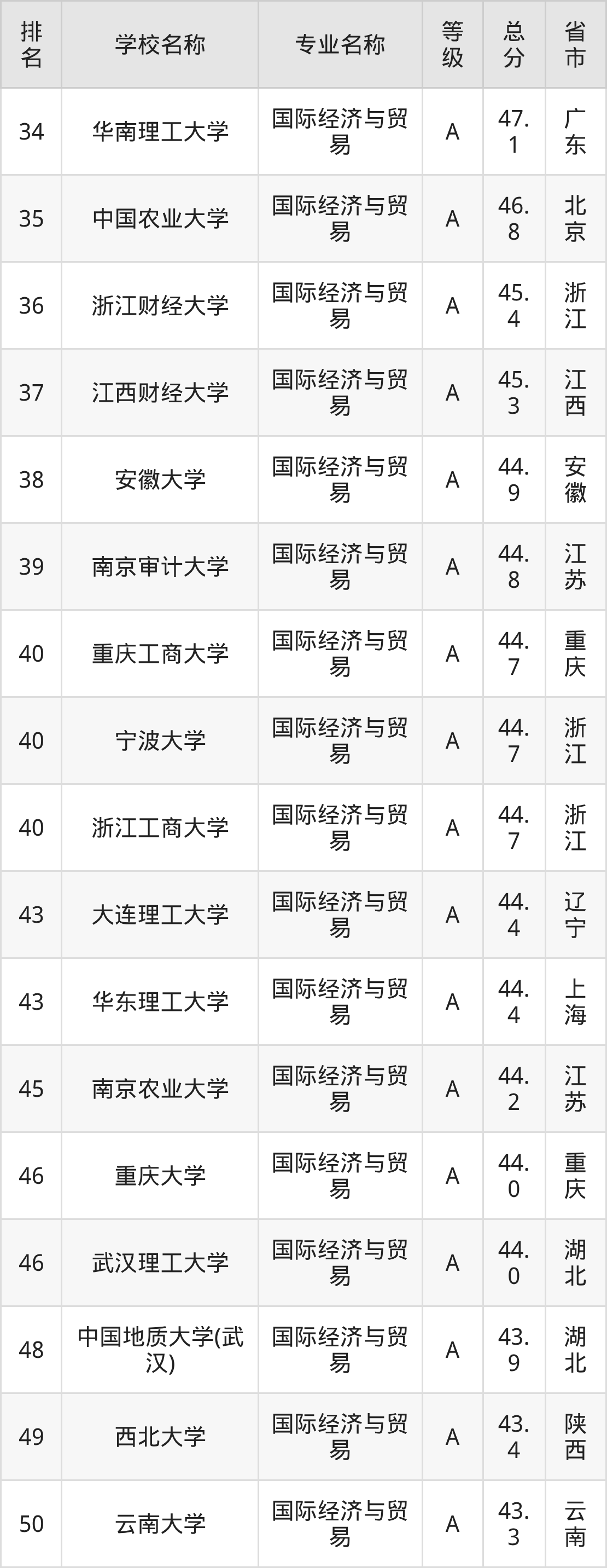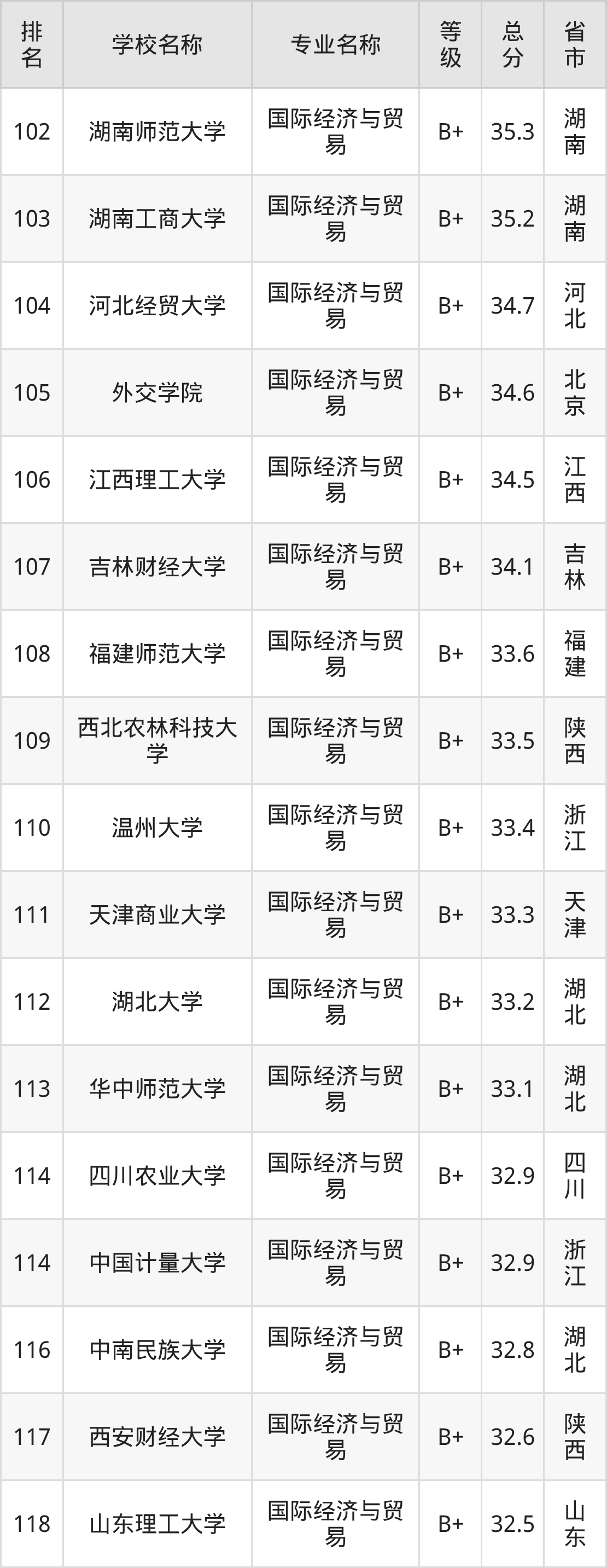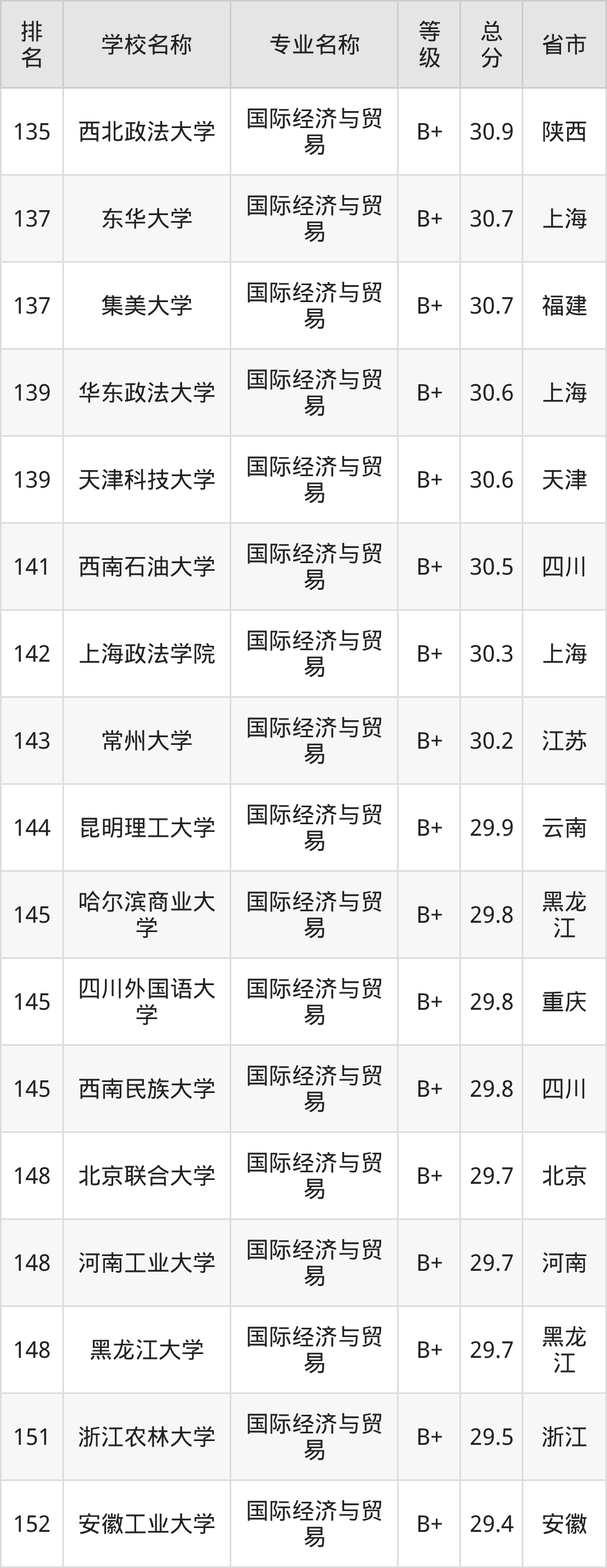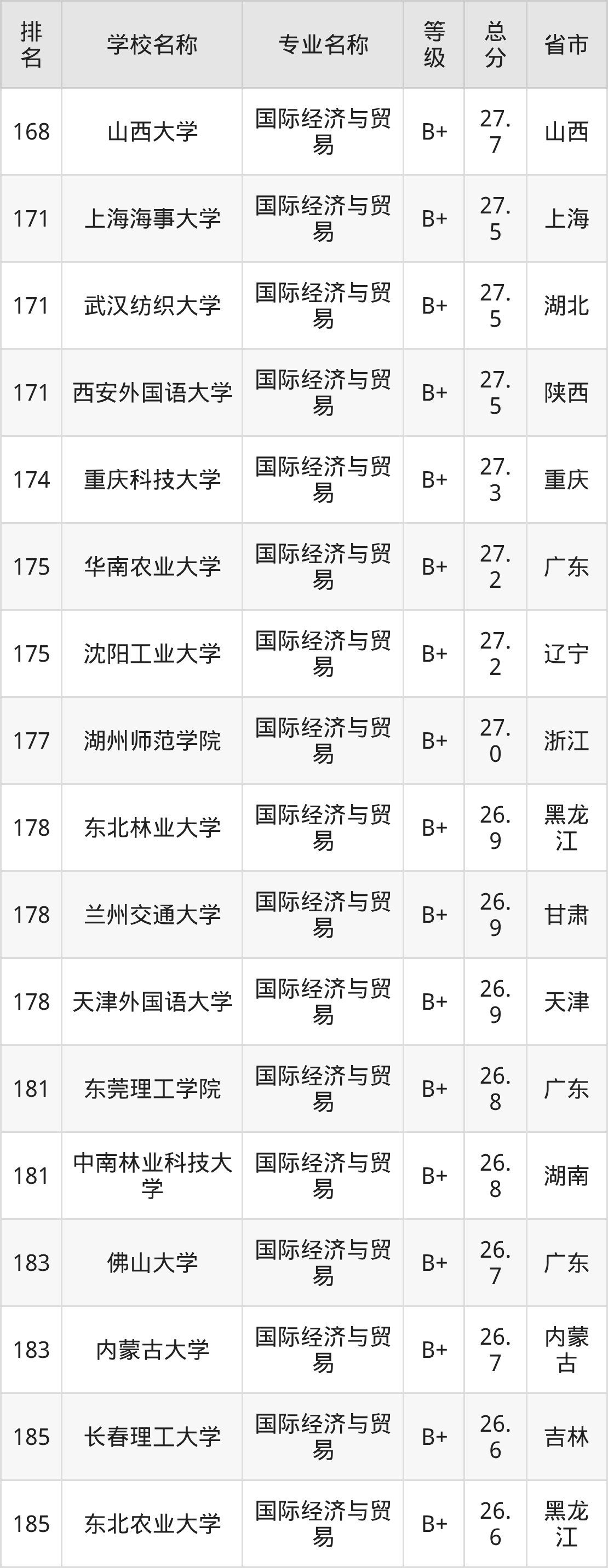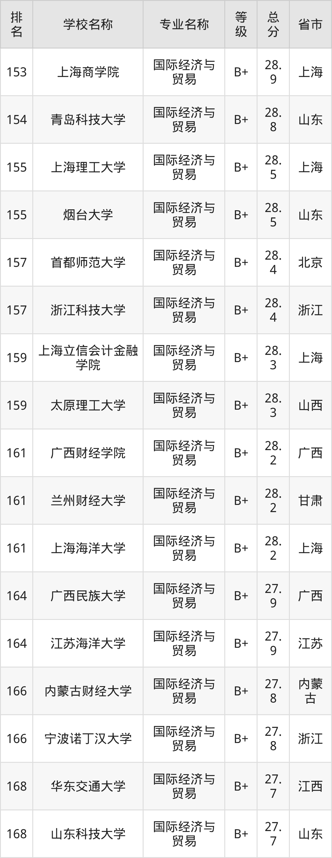 附国际经济与贸易专业全国362所院校排名榜单一览表!