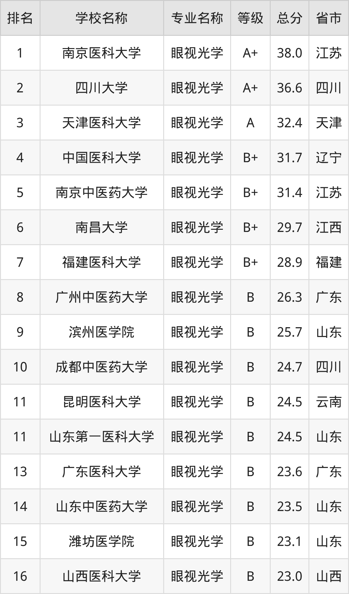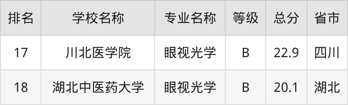 附眼视光学专业全国18所院校排名榜单一览表!
