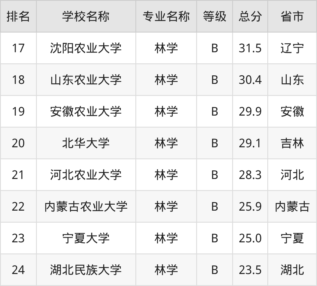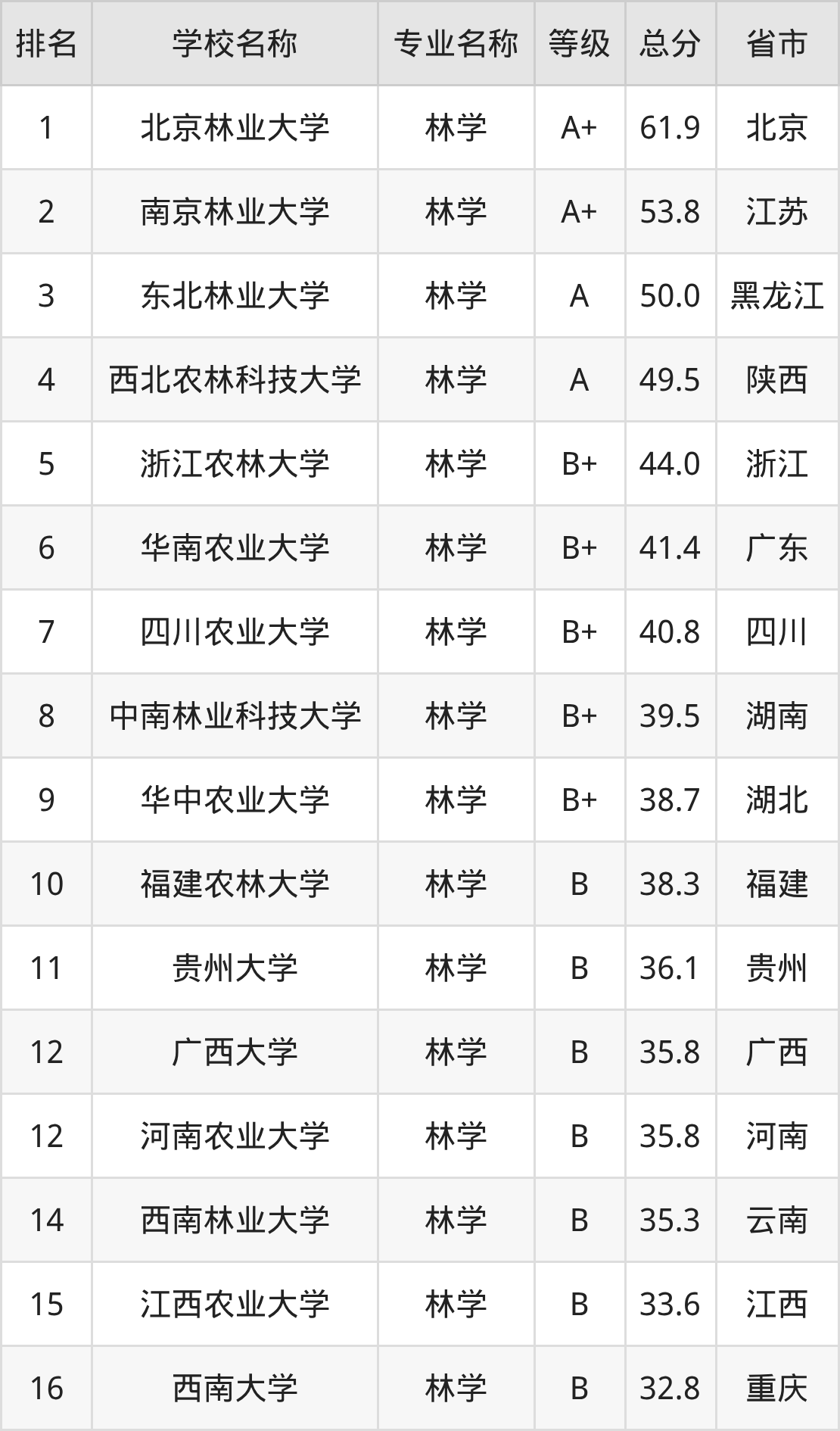 2025年林学专业全国大学排名中,排名第一的是北京林业大学,被软科榜单评为:林学专业实力最强的本科院校。本文将展示林学专业上榜软科榜单的24所院校排名以及等级评分,供2026年想读林学专业的同学们参考!