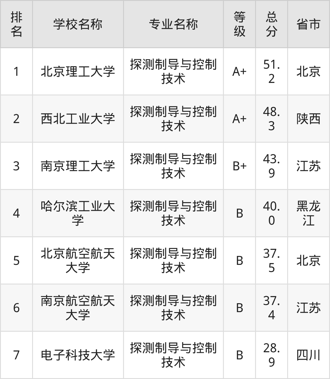 如果你的高考成绩拔尖,可重点考虑以上7所开设了探测制导与控制技术专业的大学。