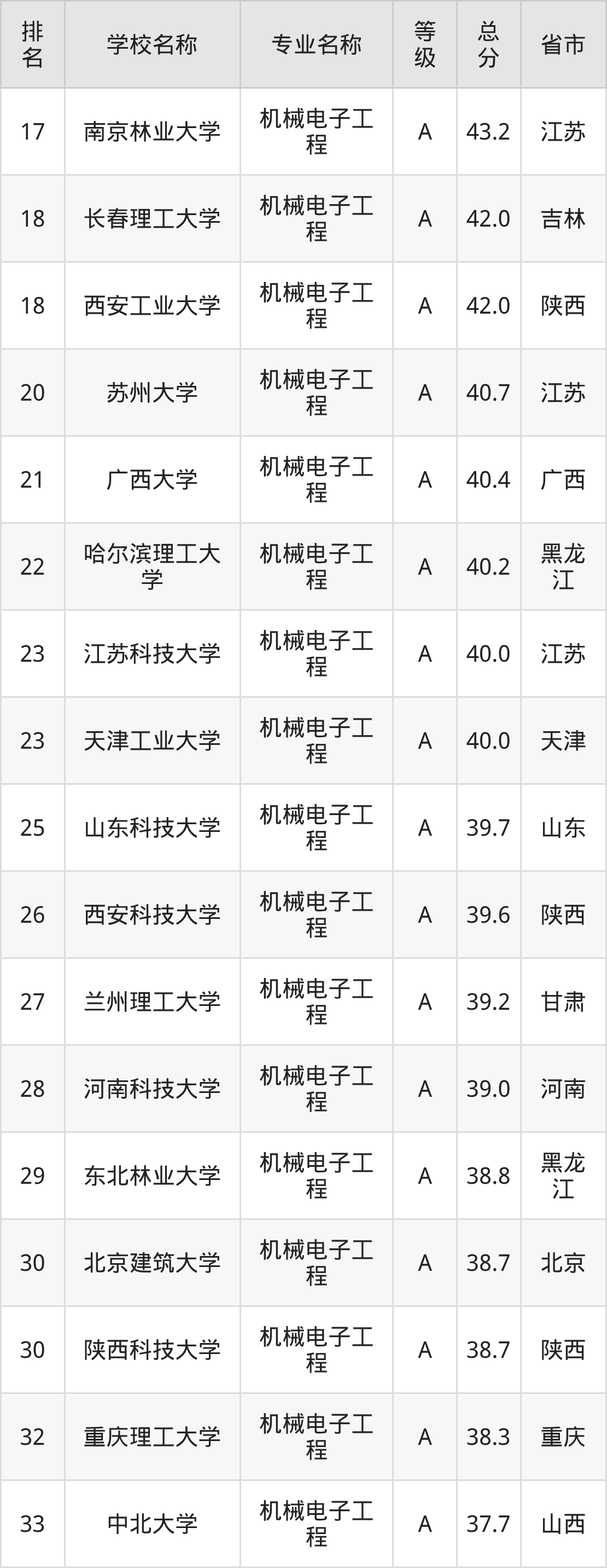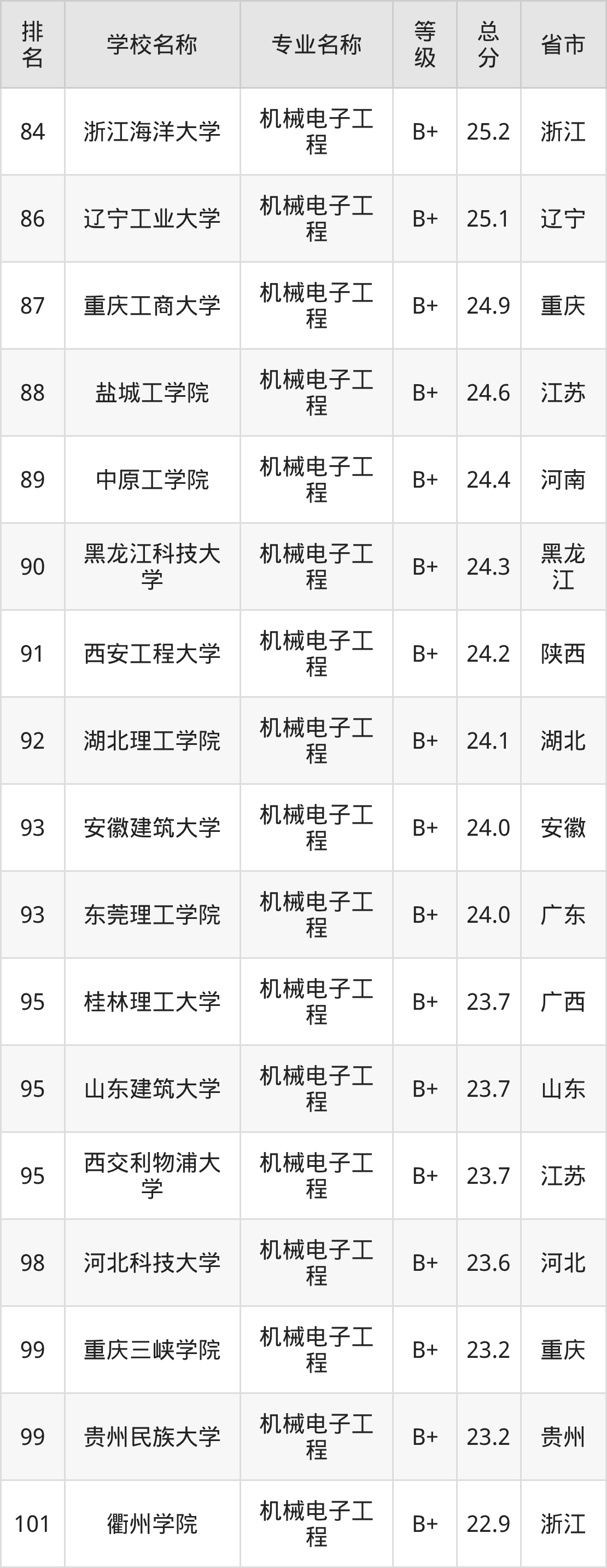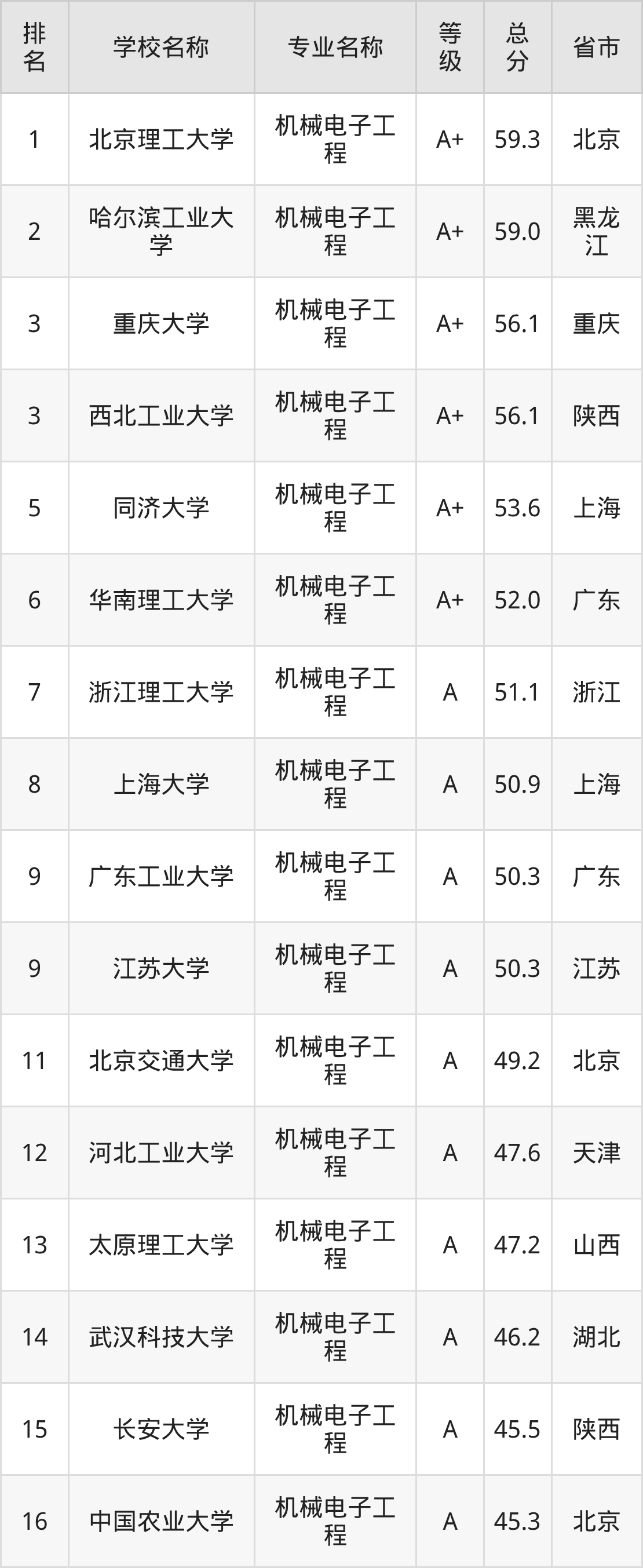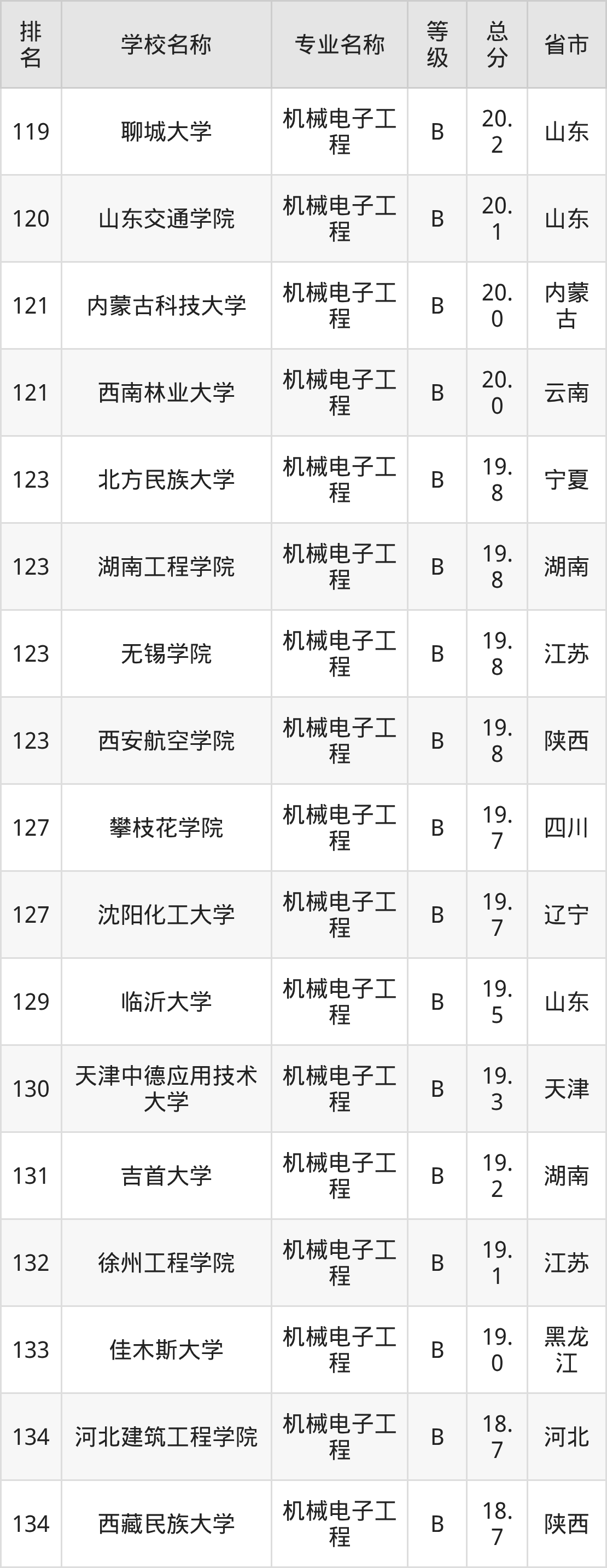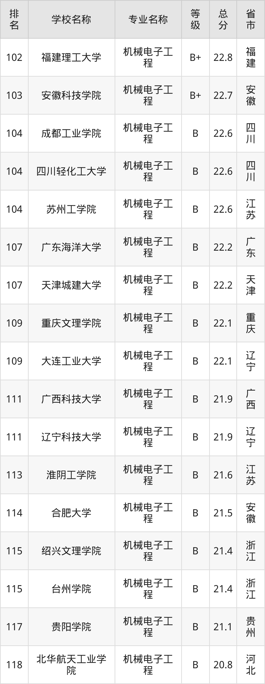 附机械电子工程专业全国172所院校排名榜单一览表!
