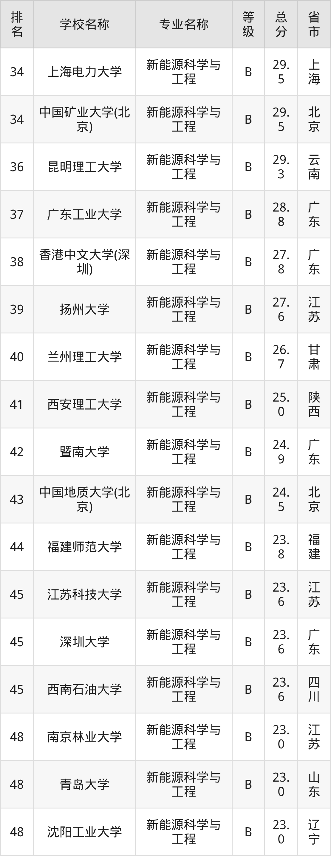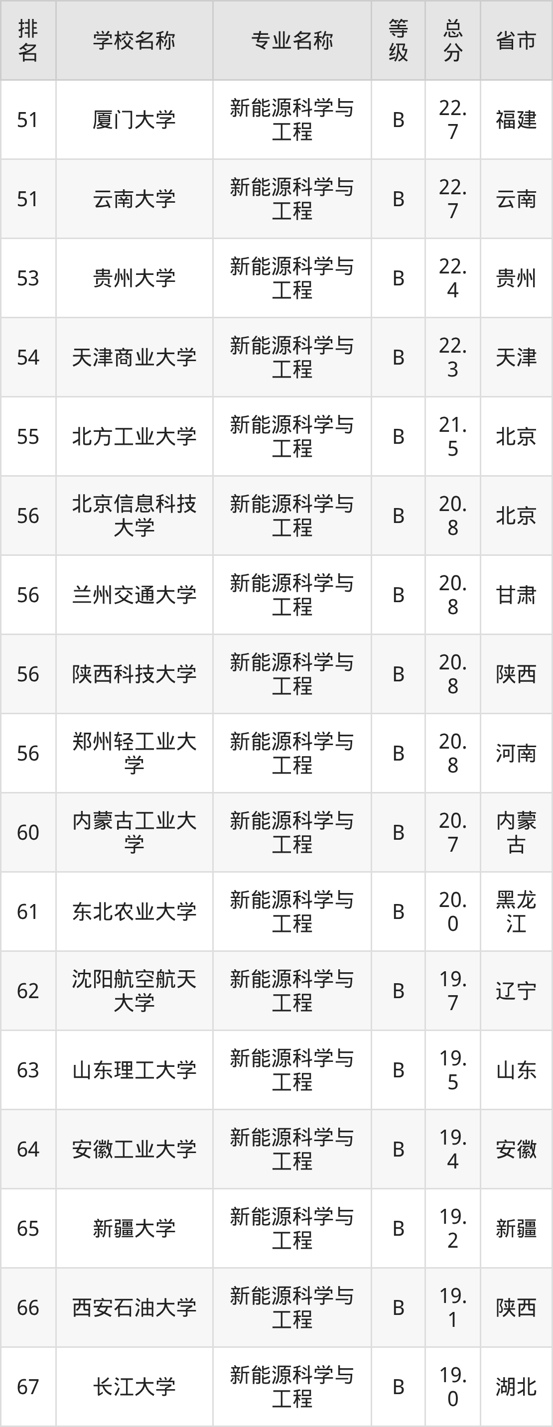 附新能源科学与工程专业全国72所院校排名榜单一览表!