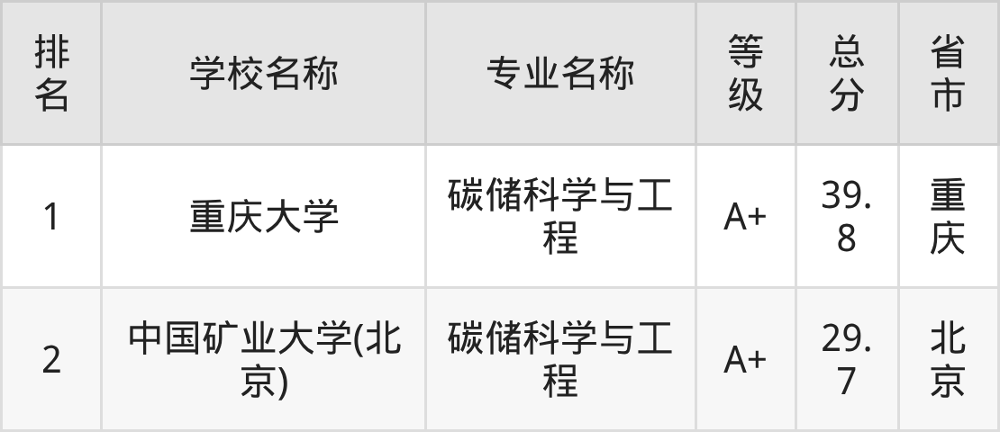 根据软科榜单可知,碳储科学与工程专业全国排名前二的大学分别是: