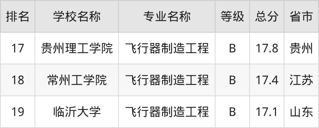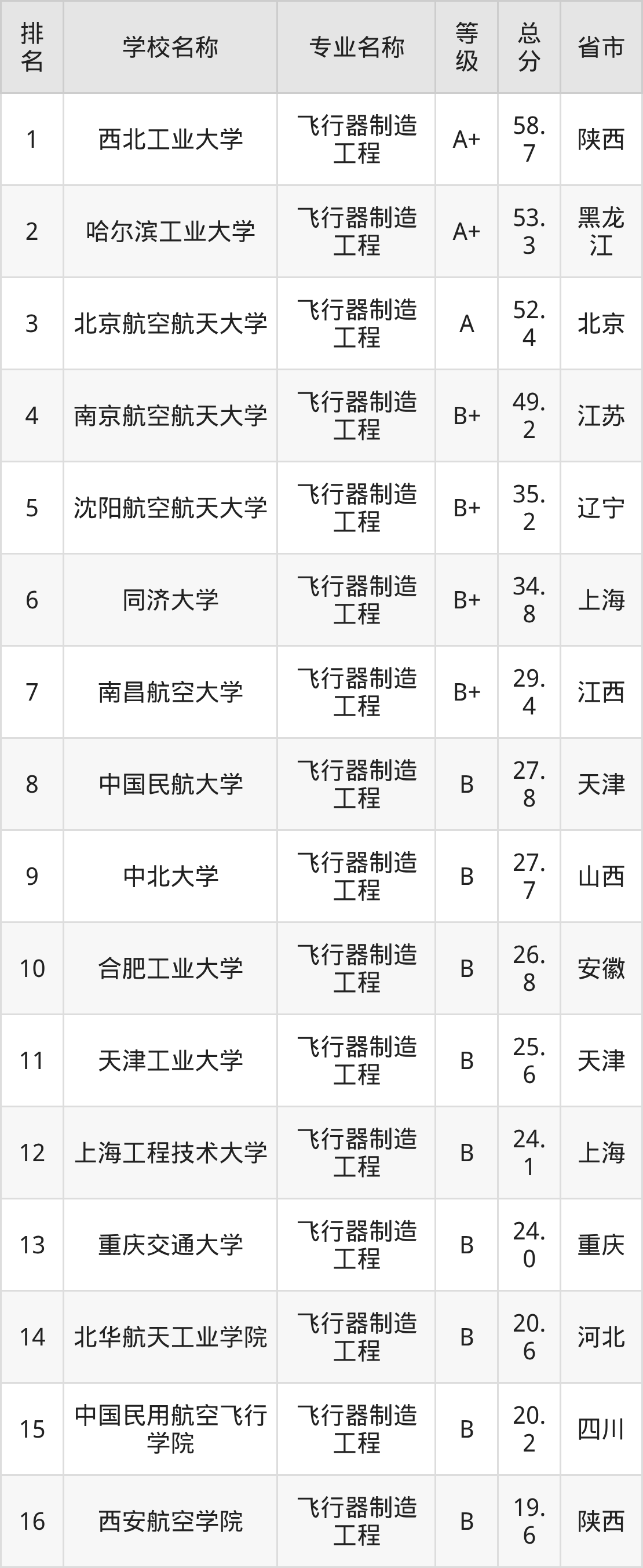附飞行器制造工程专业全国19所院校排名榜单一览表!