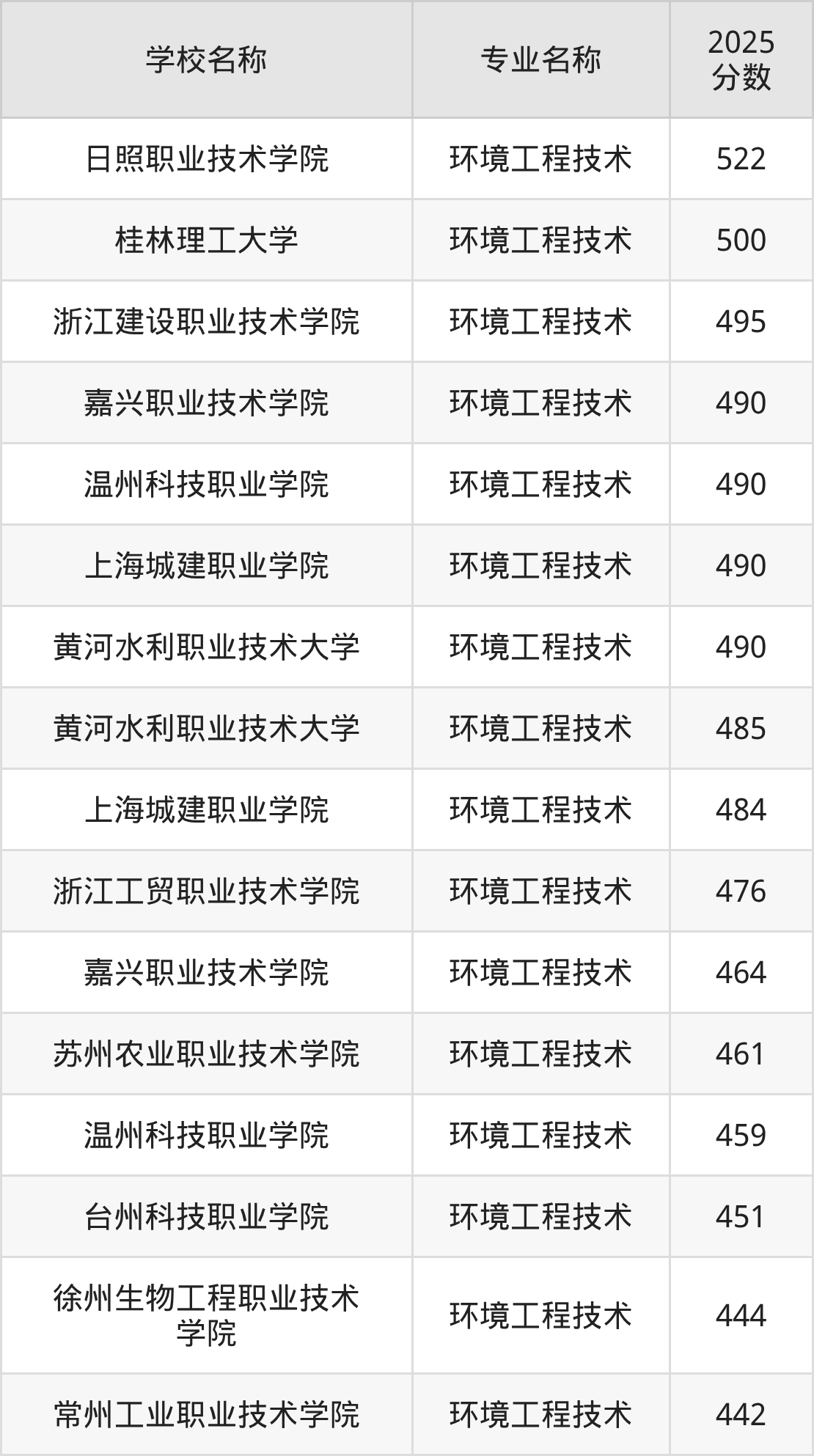| 3 | 环境工程技术 | 浙江建设职业技术学院 | 495 |