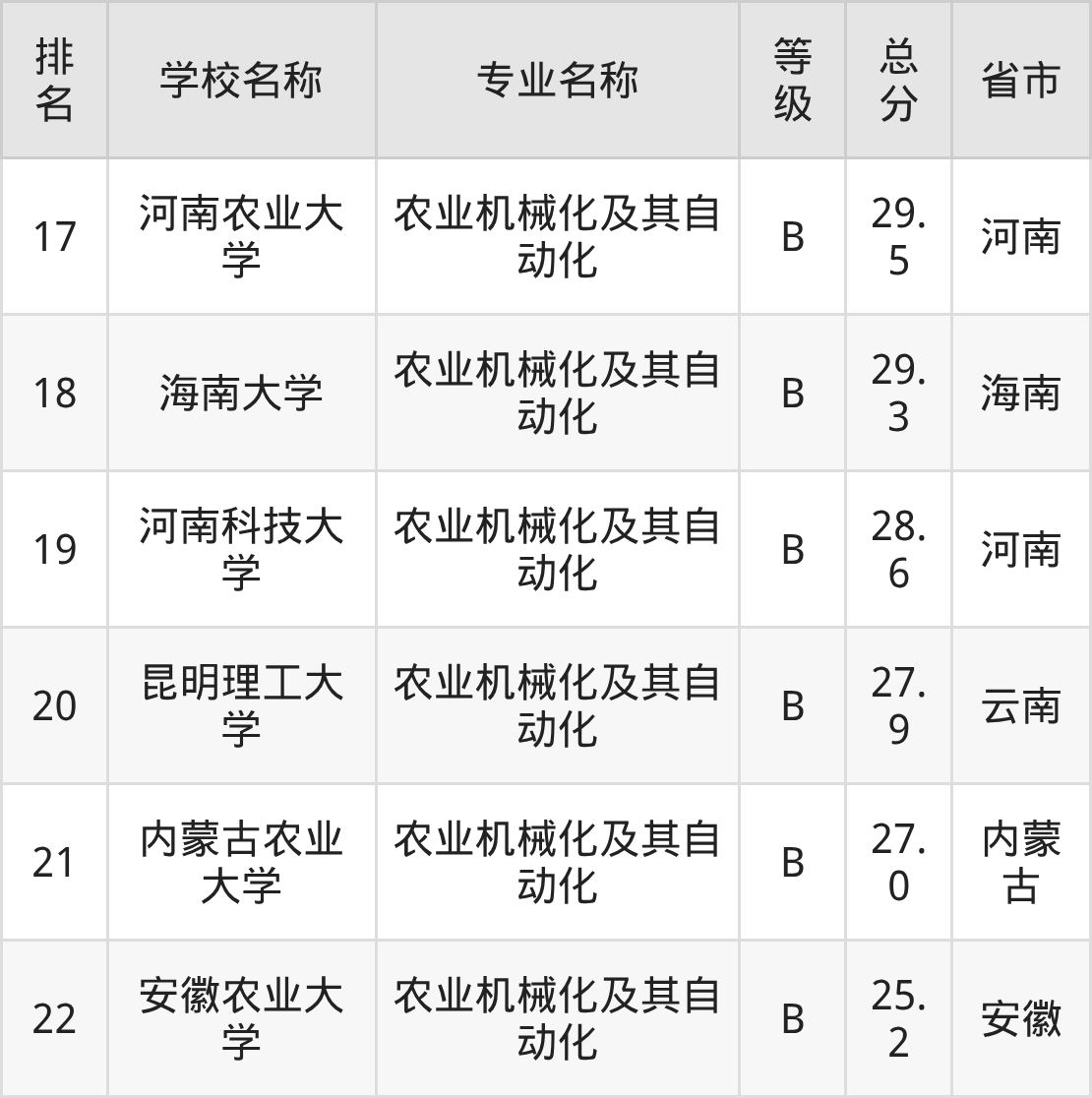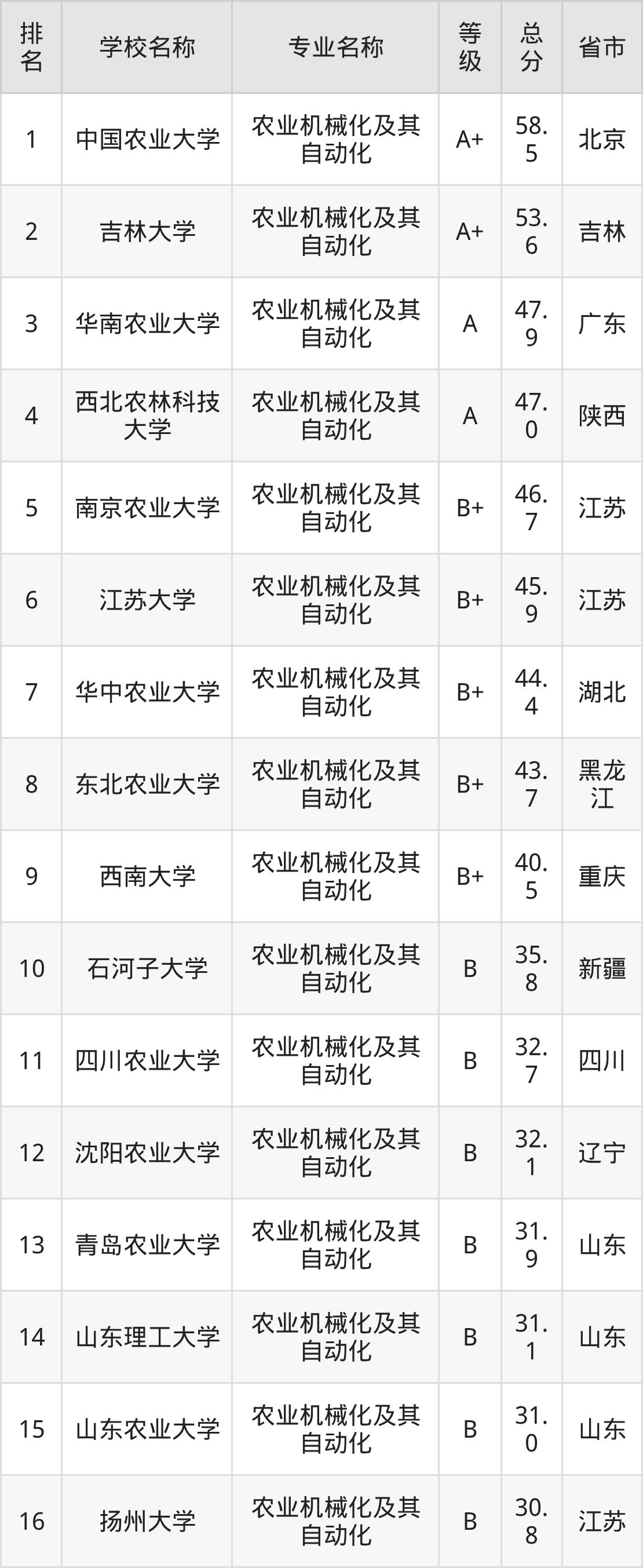 附农业机械化及其自动化专业全国22所院校排名榜单一览表!