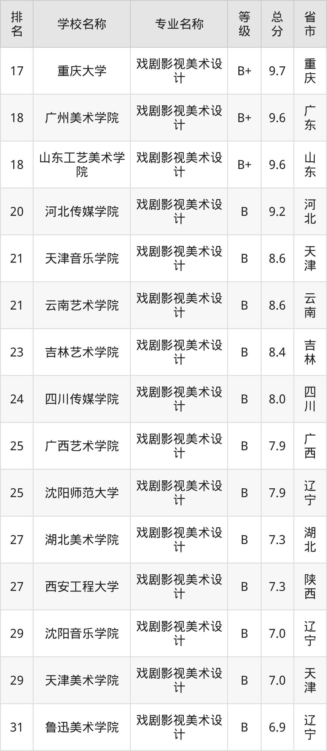 附戏剧影视美术设计专业全国31所院校排名榜单一览表!