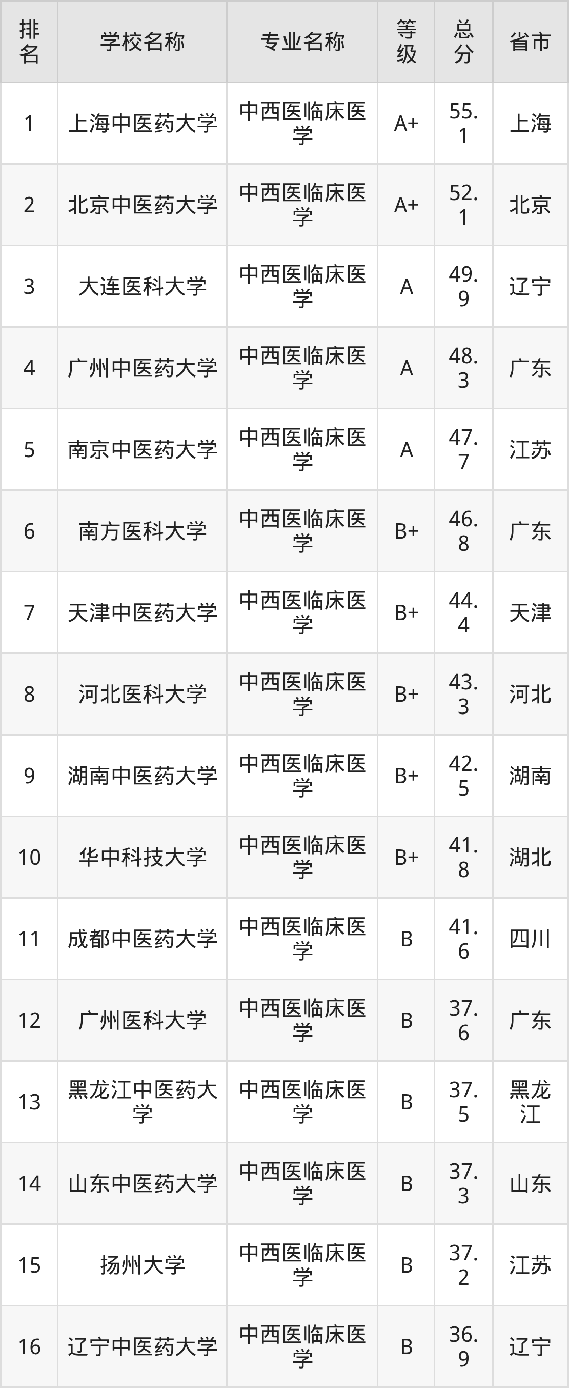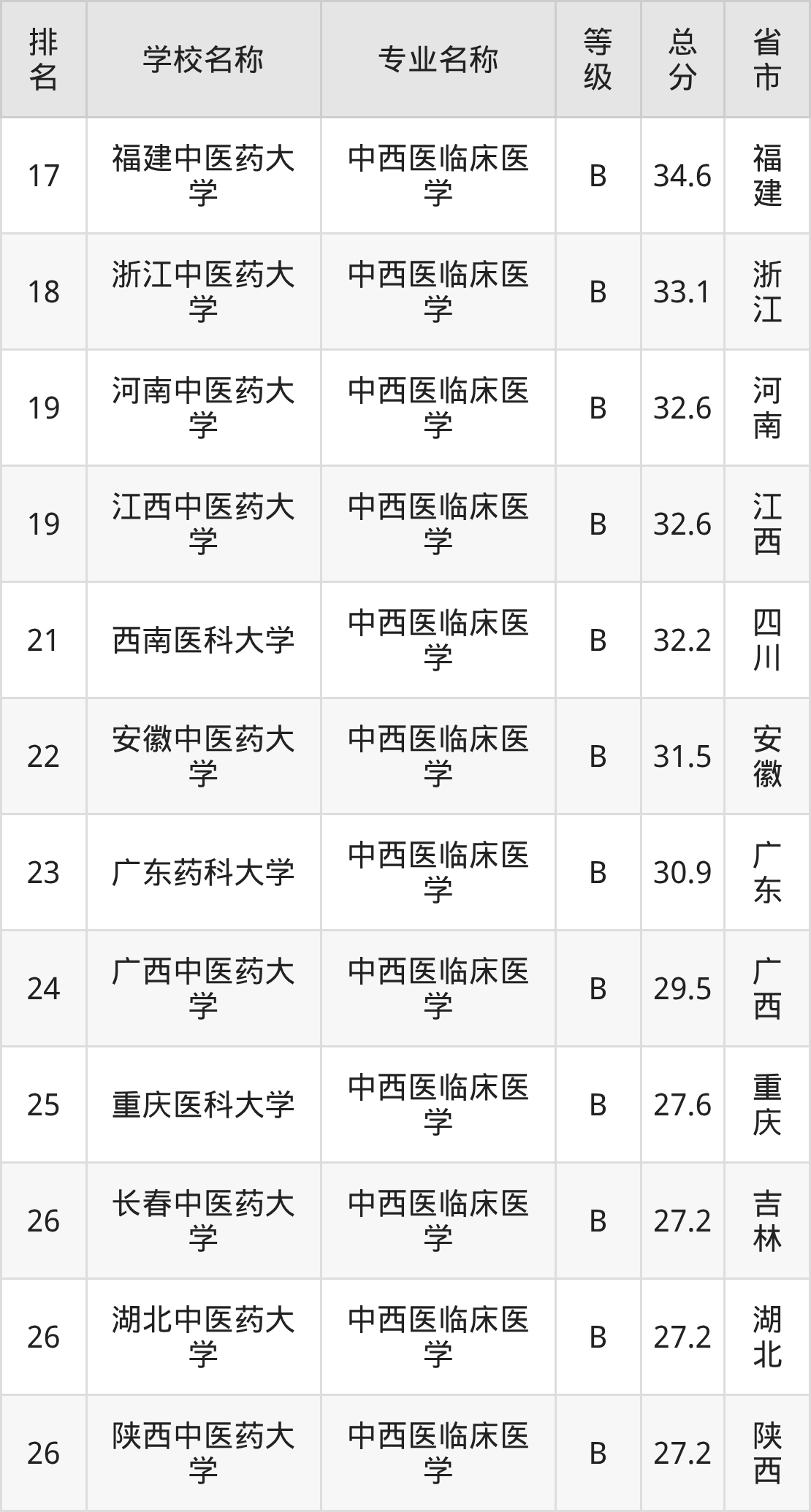 附中西医临床医学专业全国28所院校排名榜单一览表!