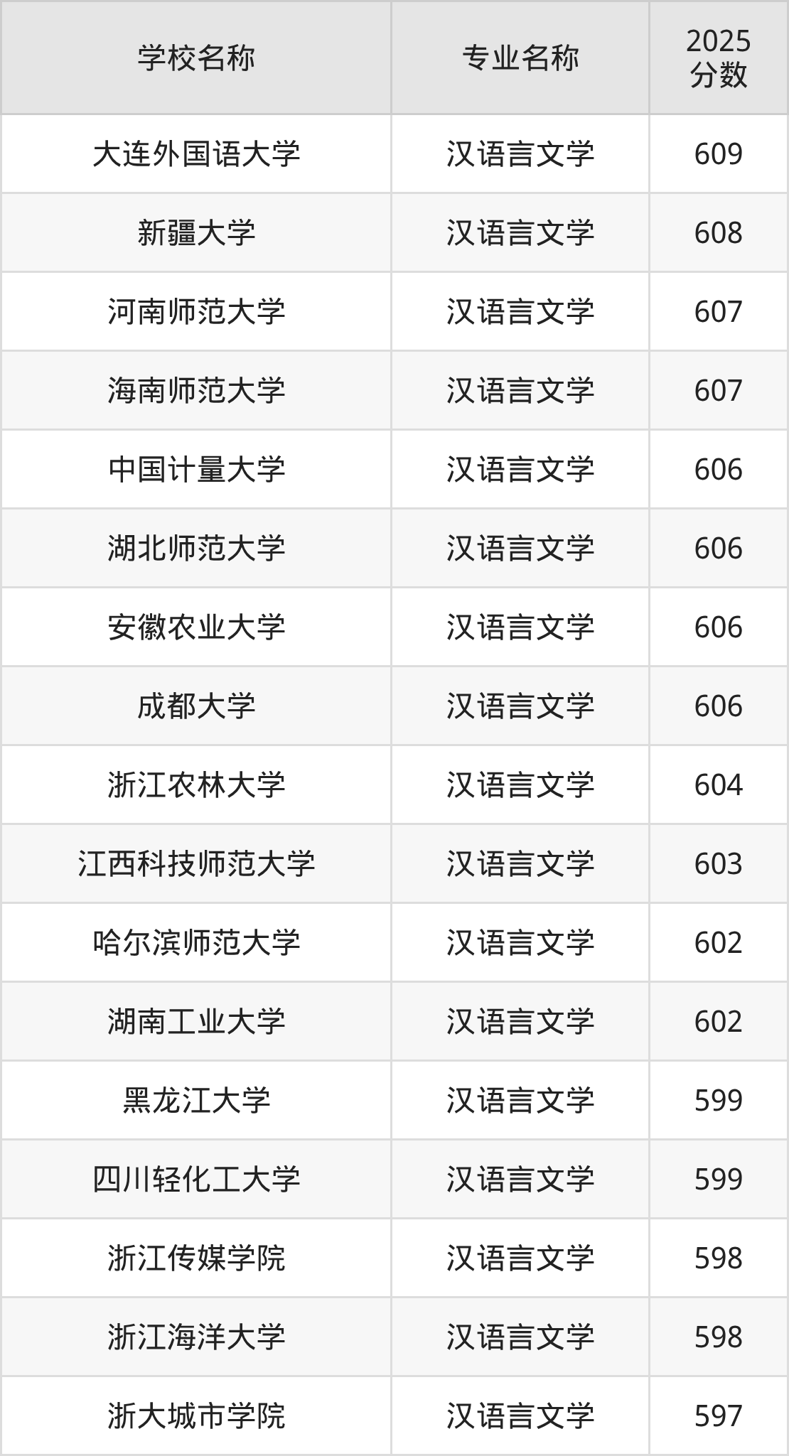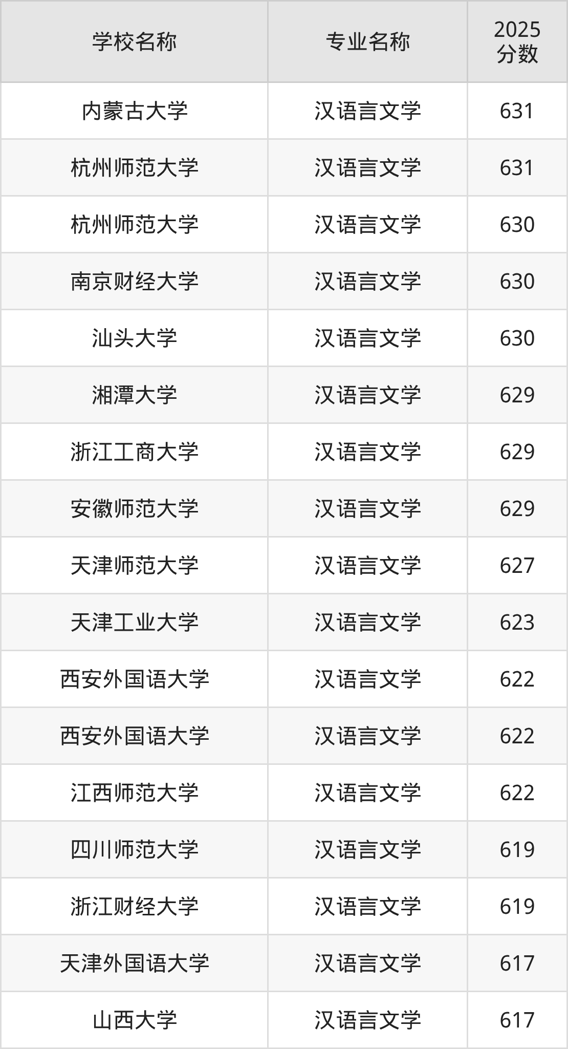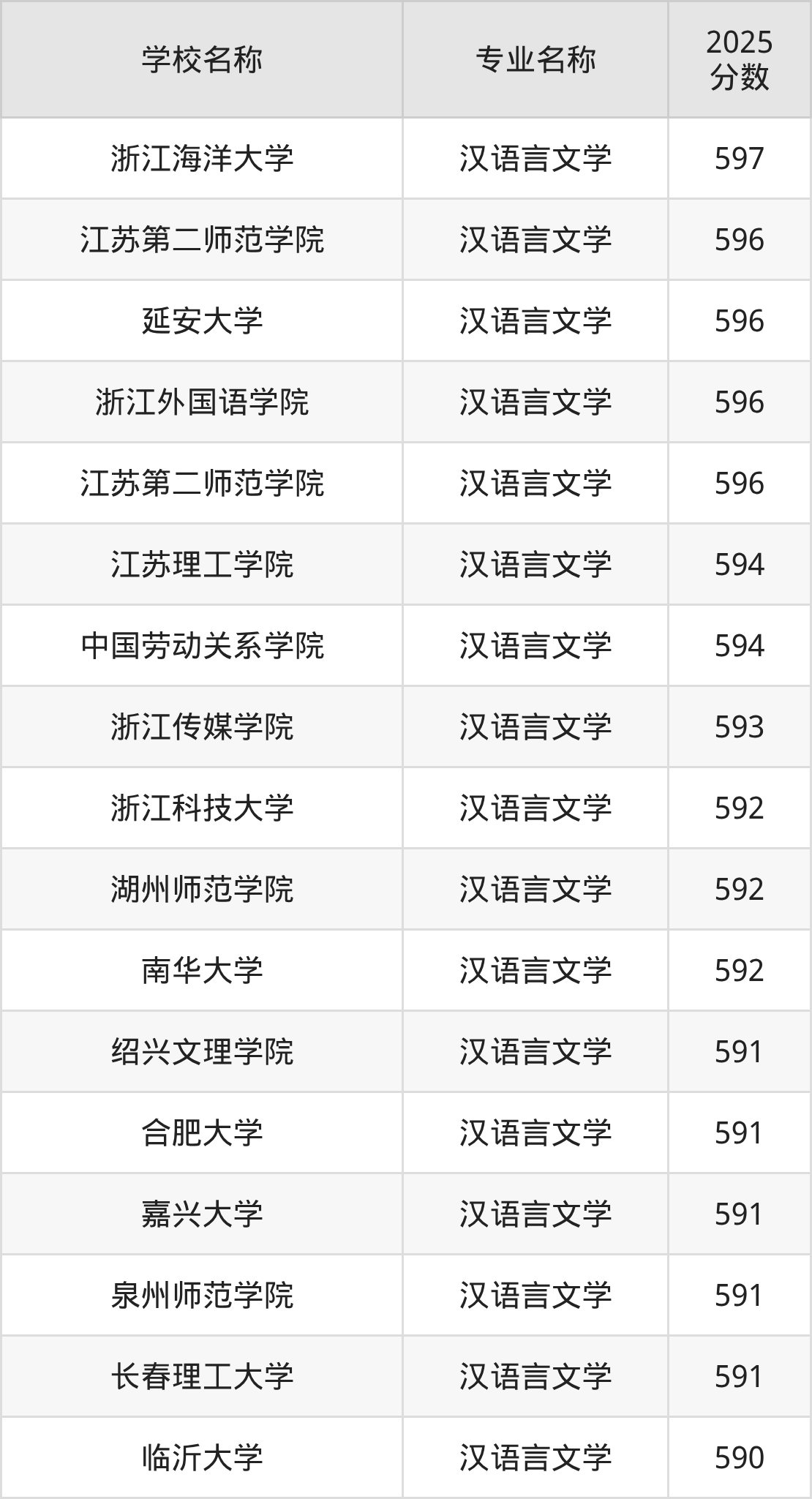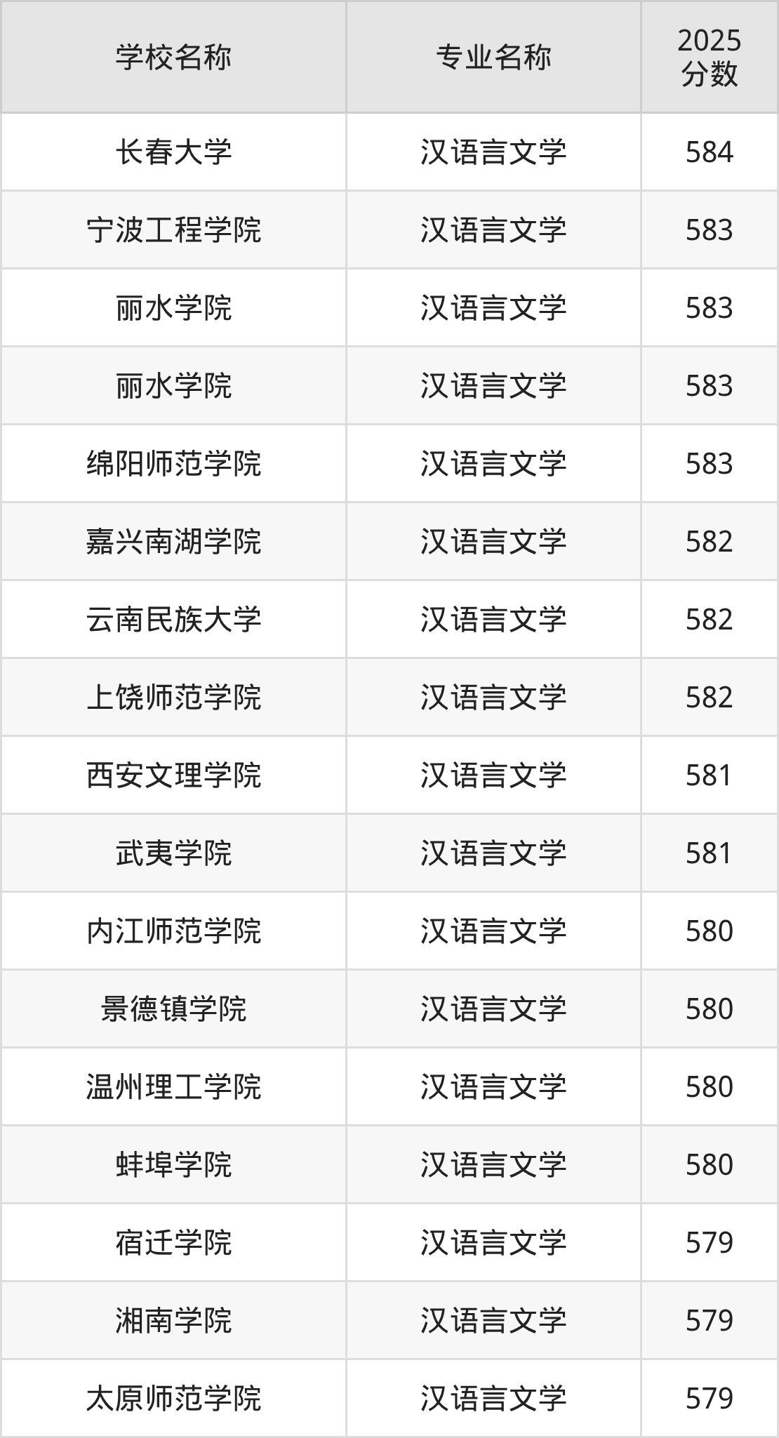 下面是2025年全国本科汉语言文学专业大学录取分数线。