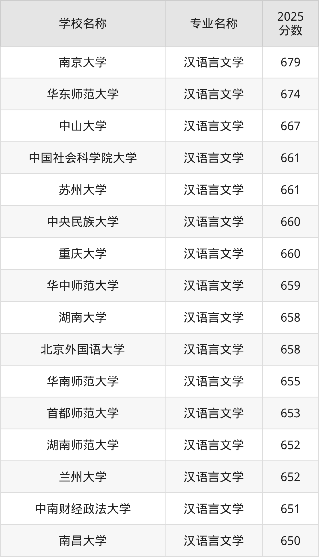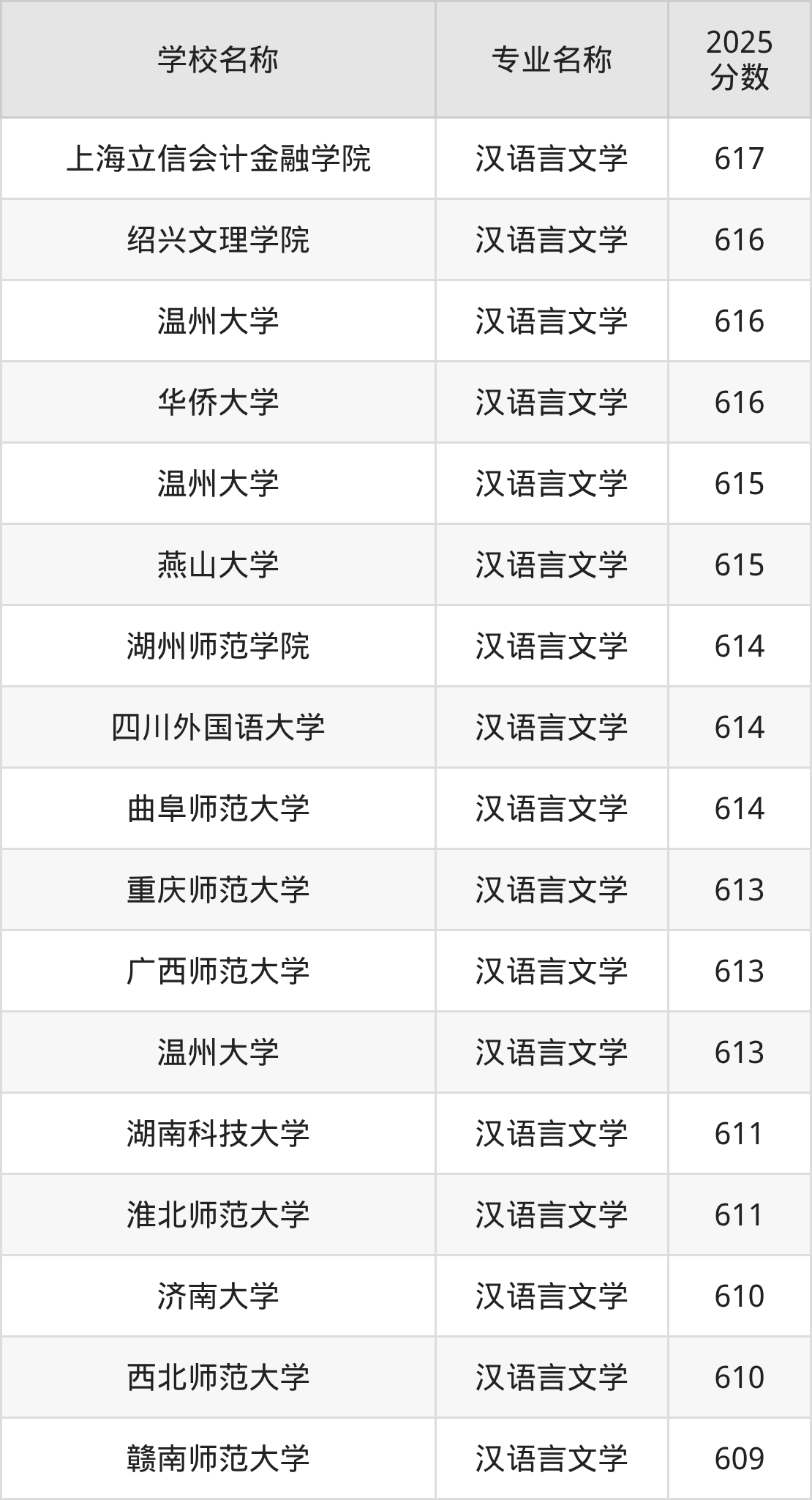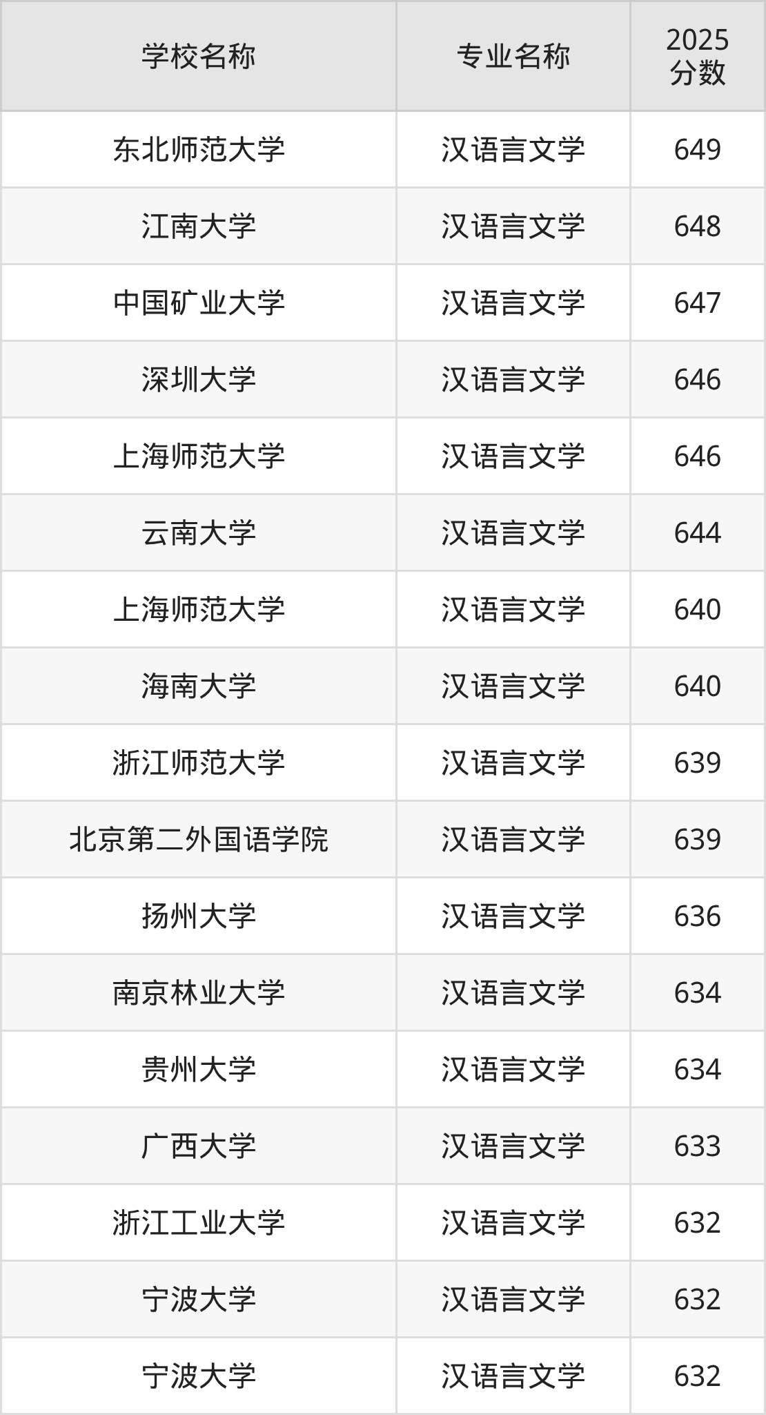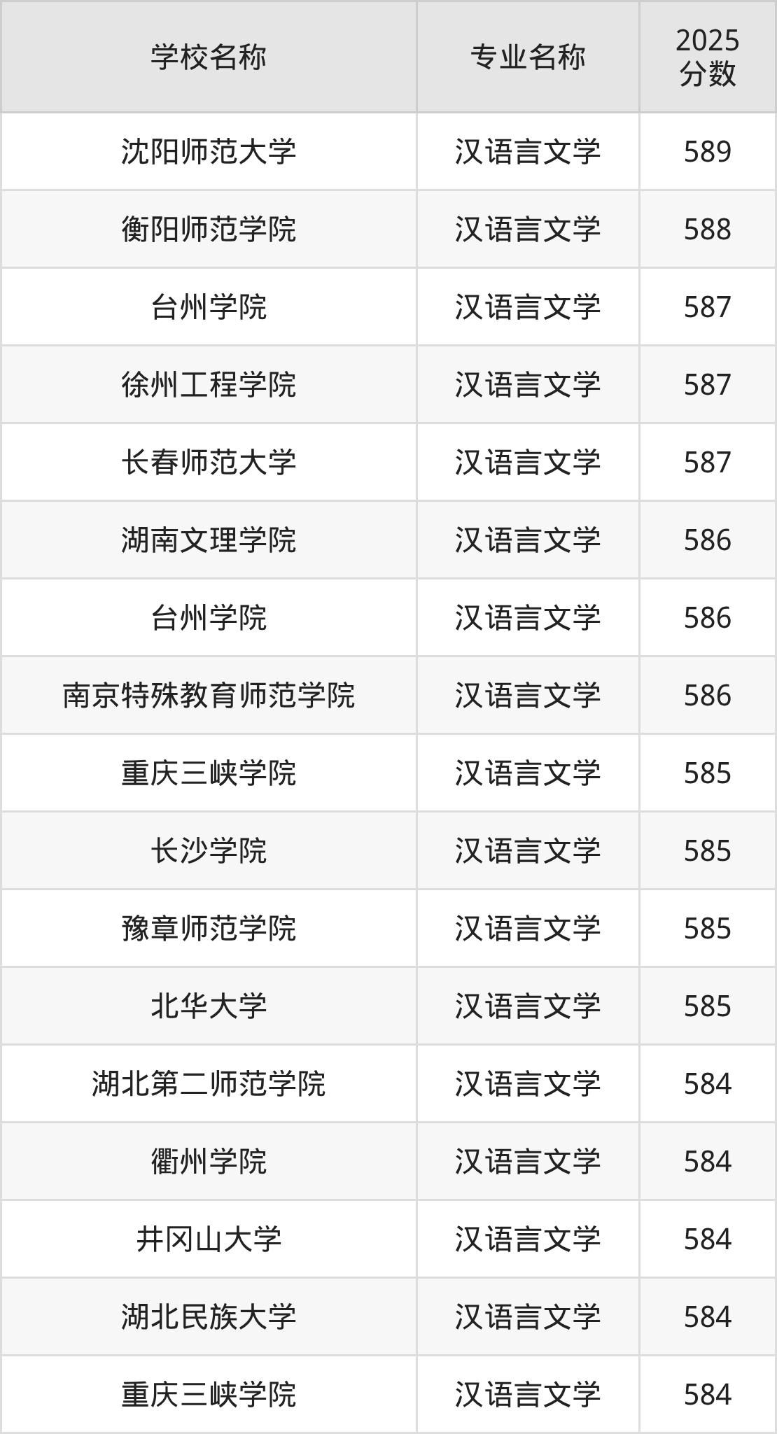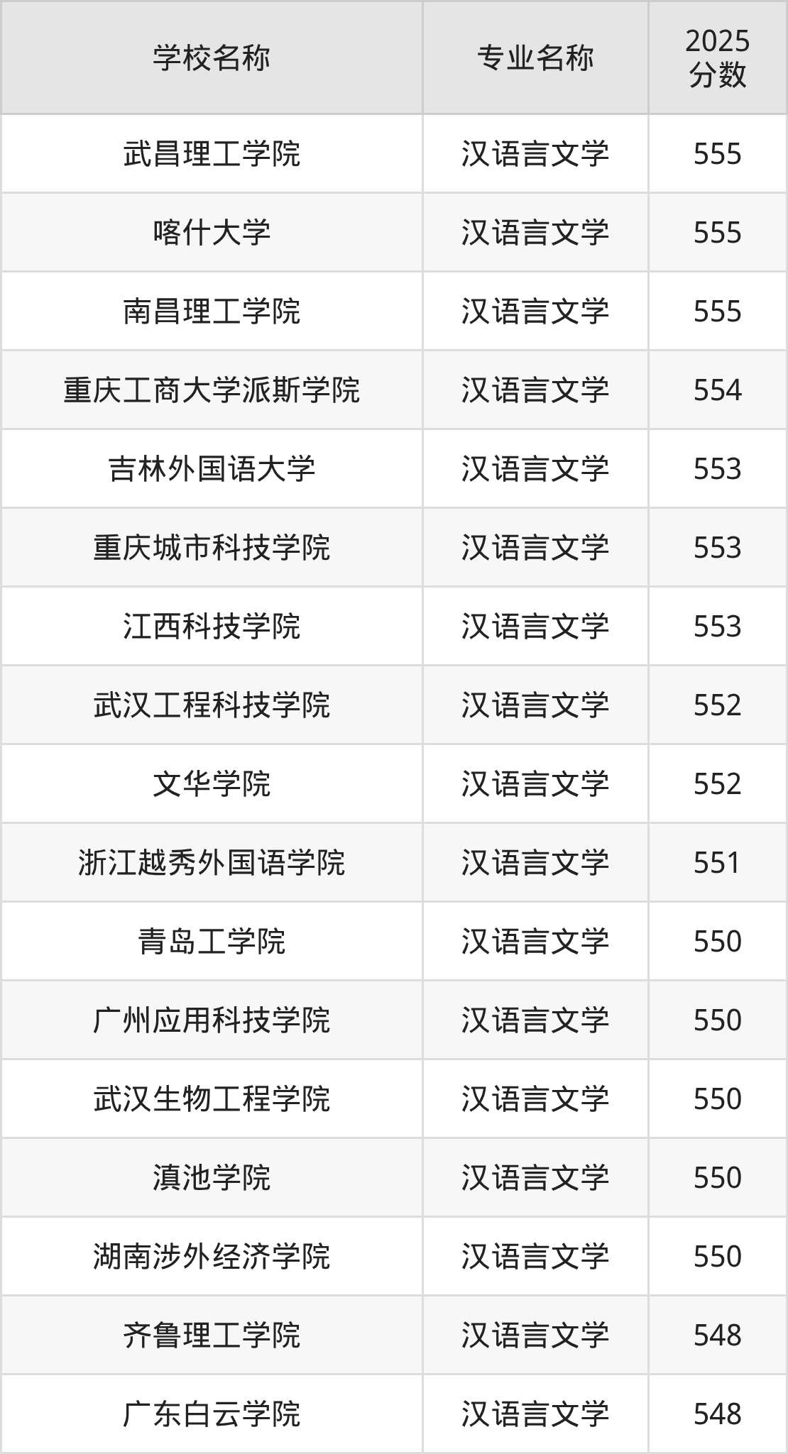 下面是2025年全国本科汉语言文学专业大学录取分数线。