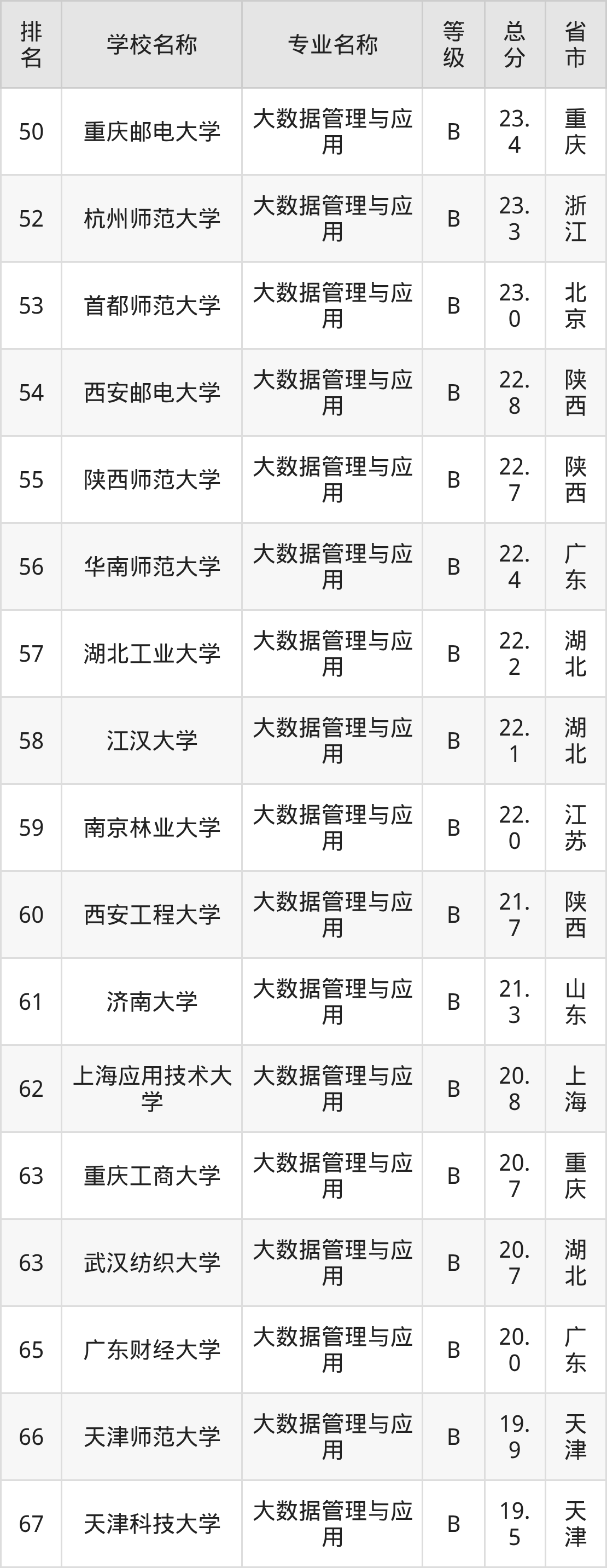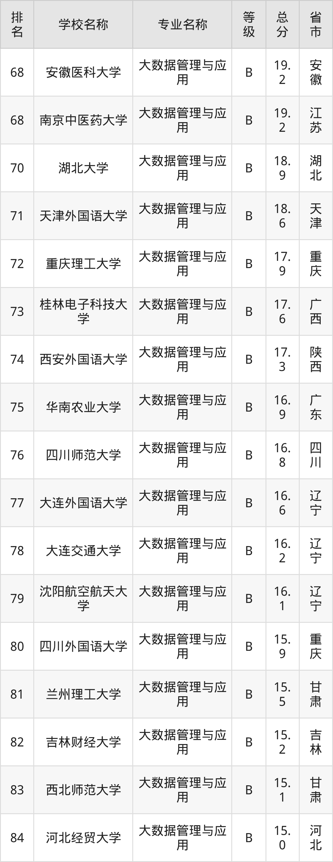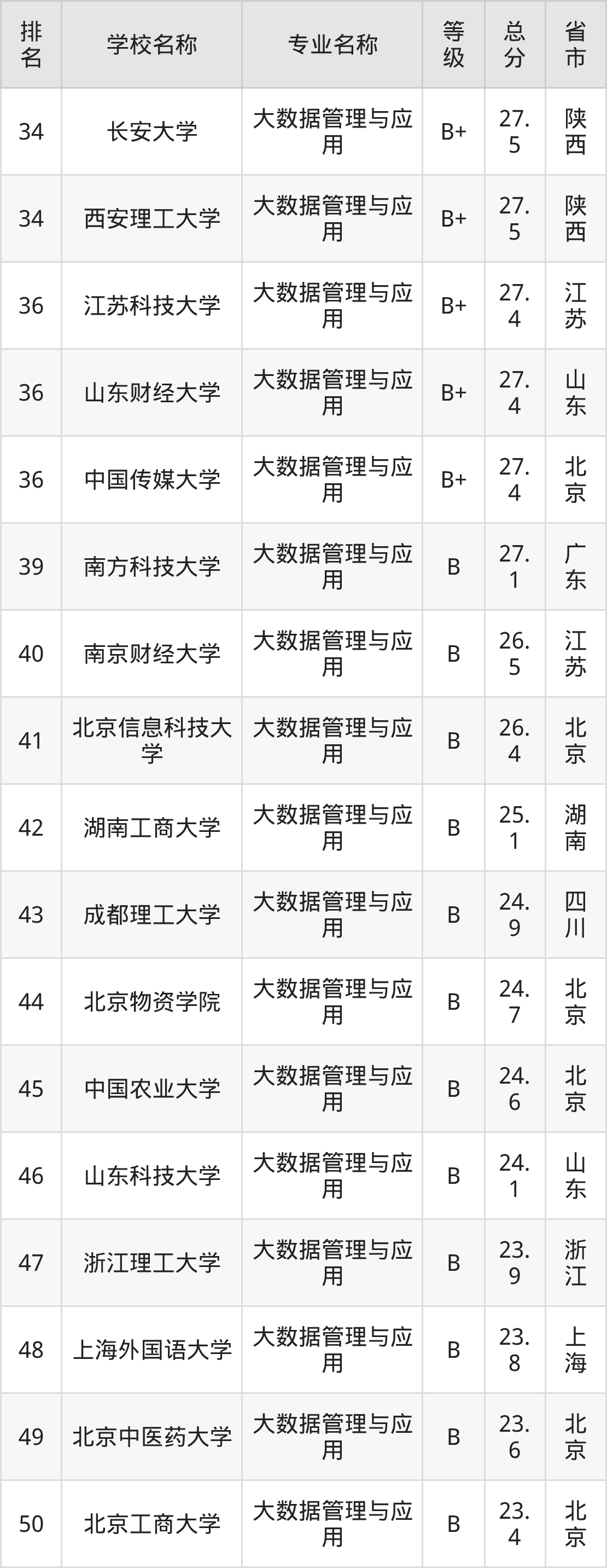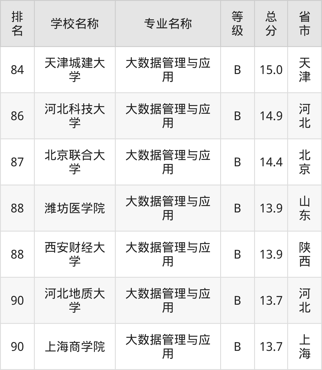 附大数据管理与应用专业全国91所院校排名榜单一览表!