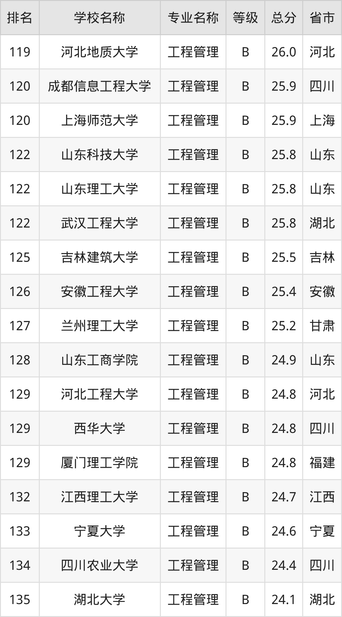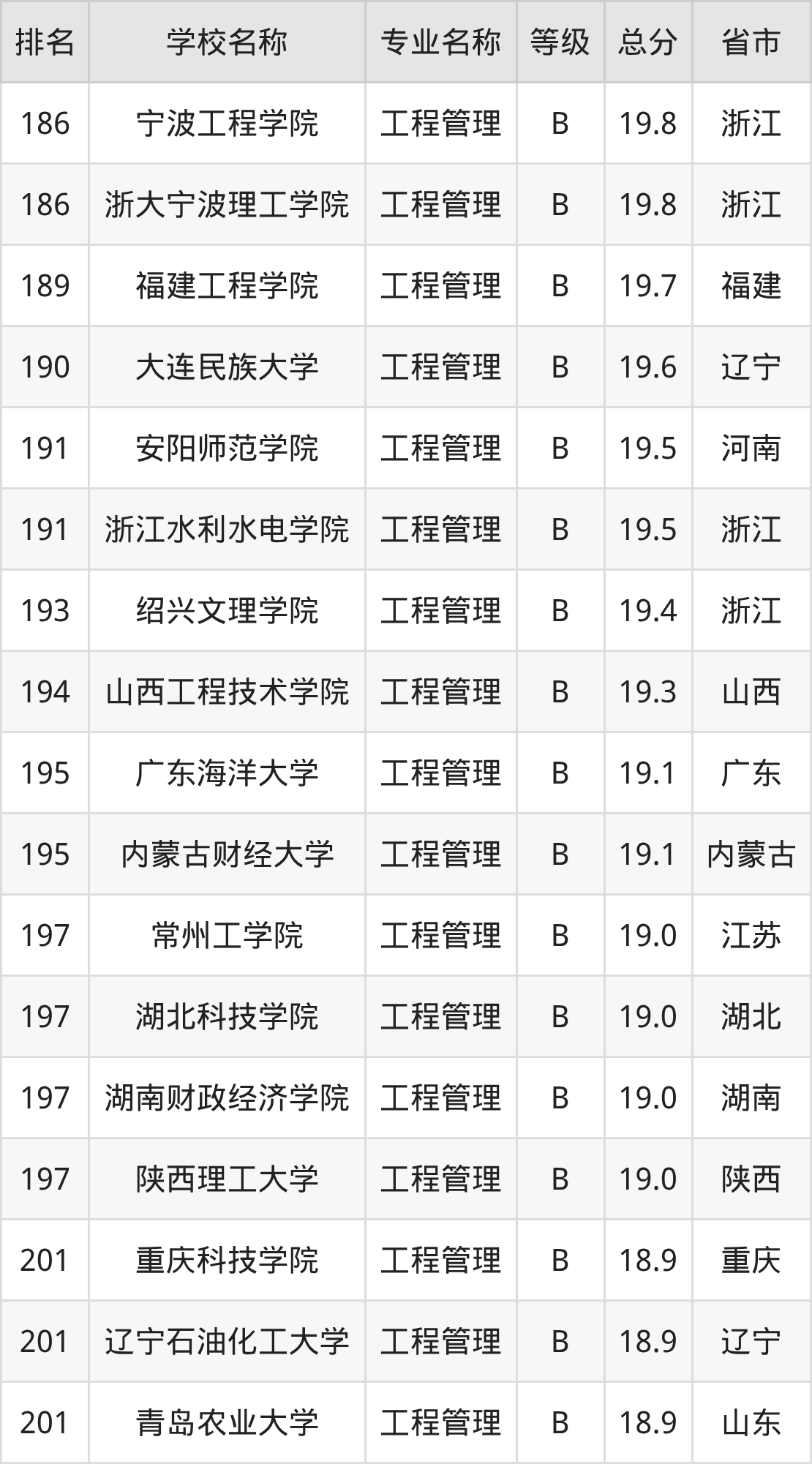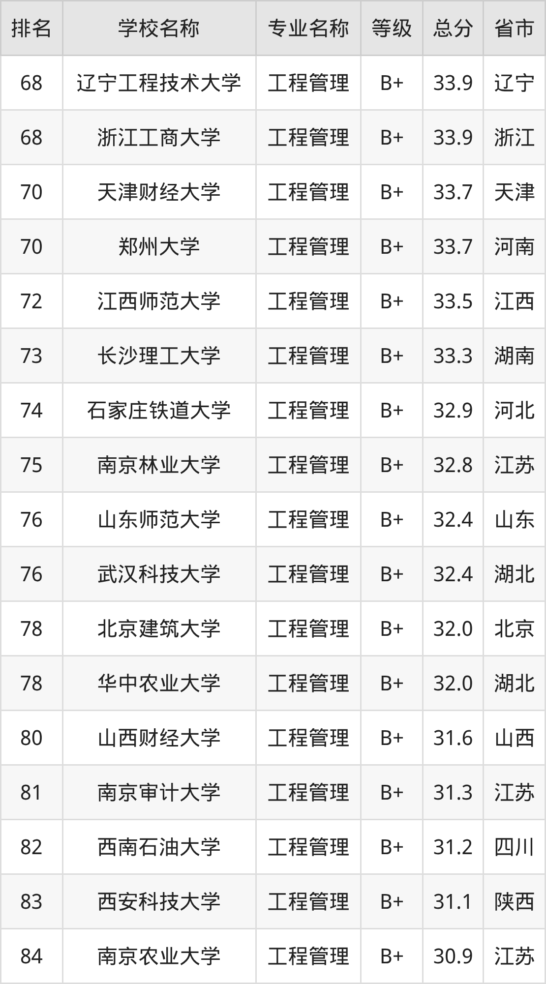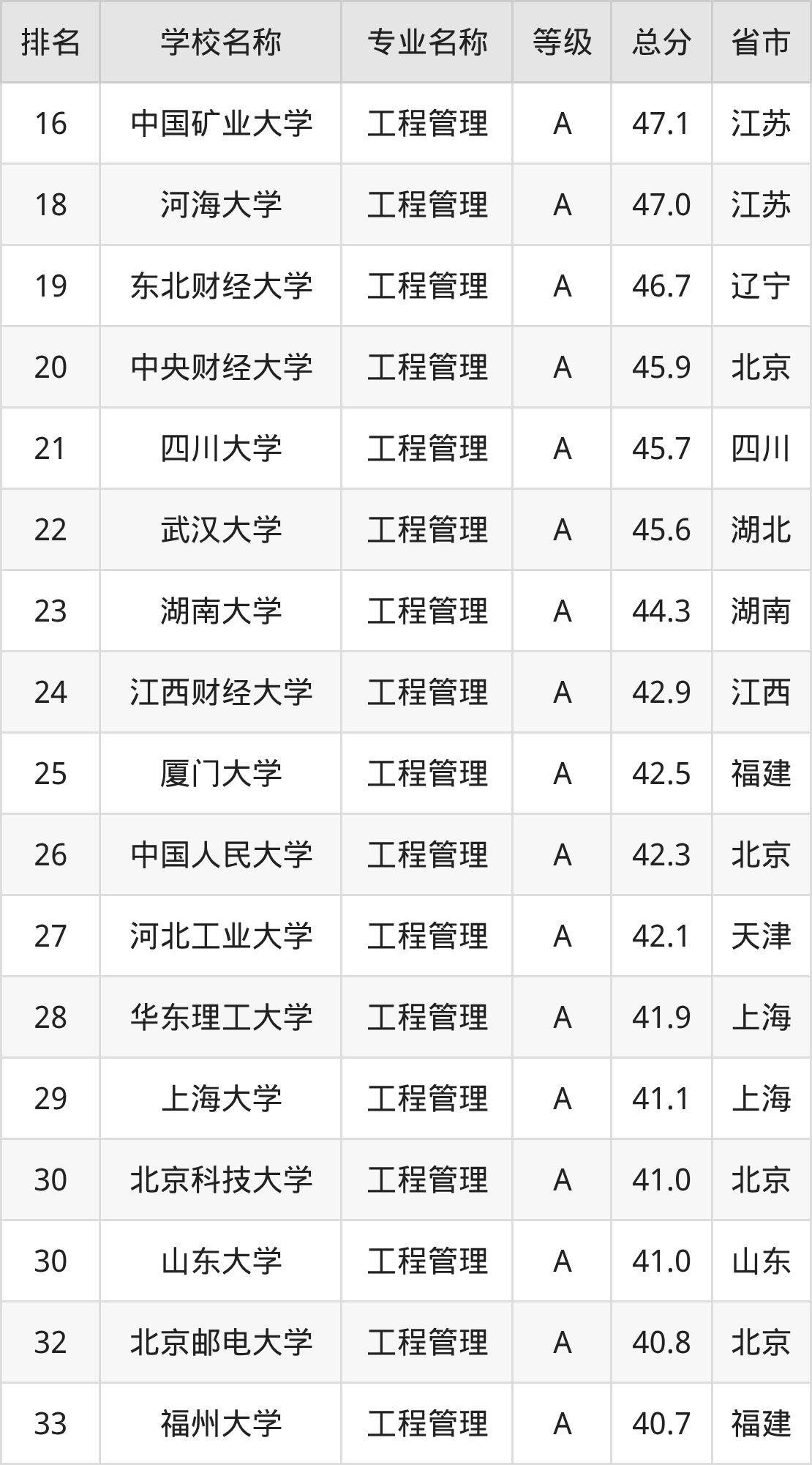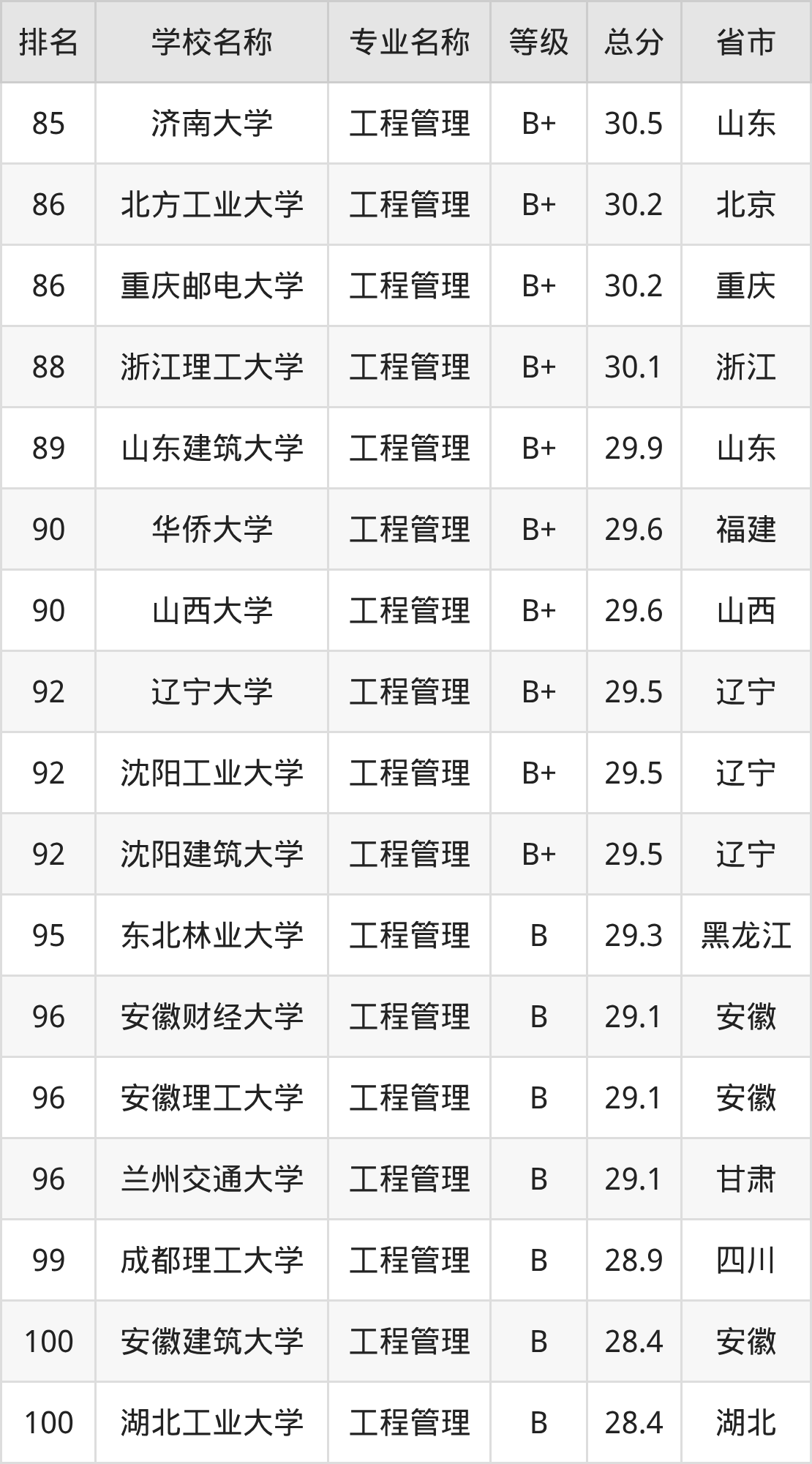 附工程管理专业全国234所院校排名榜单一览表!