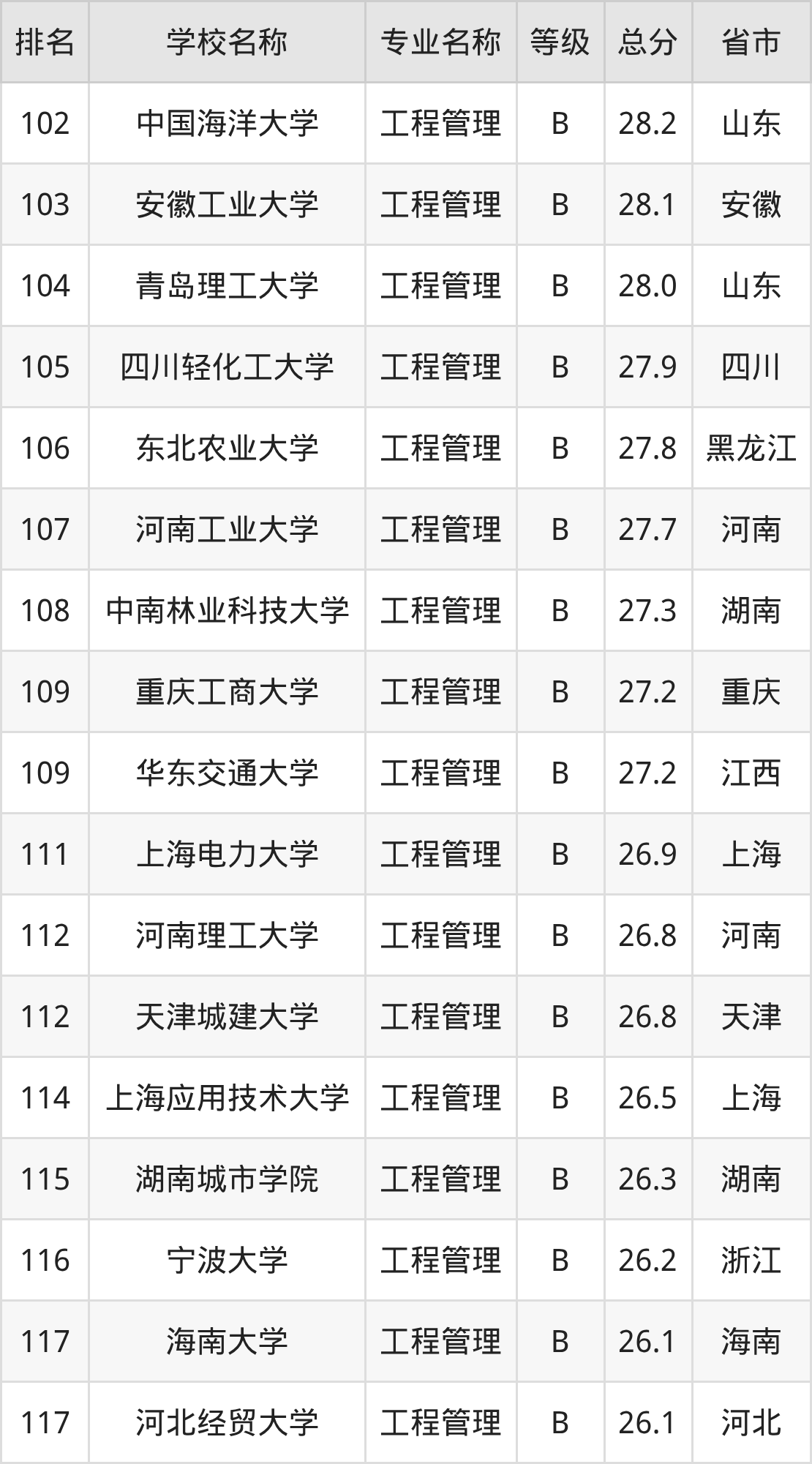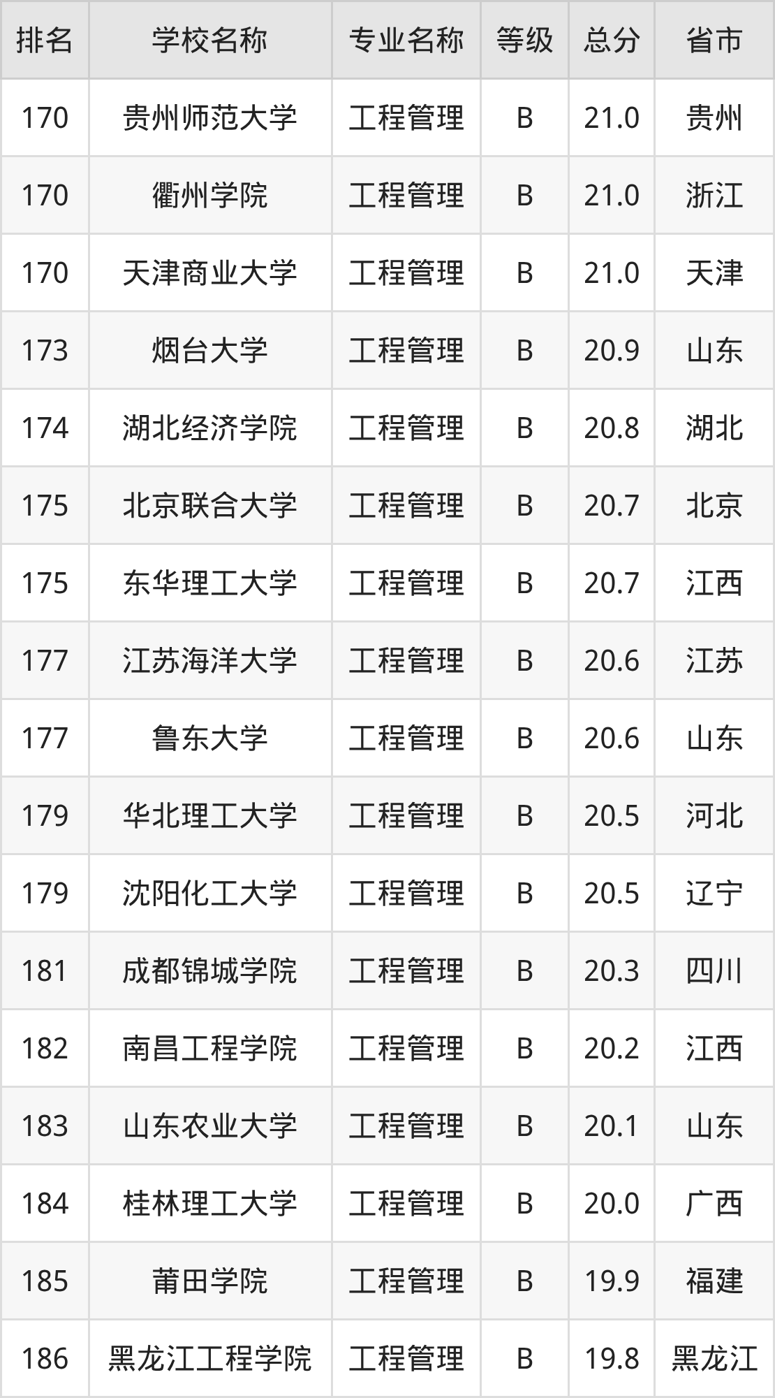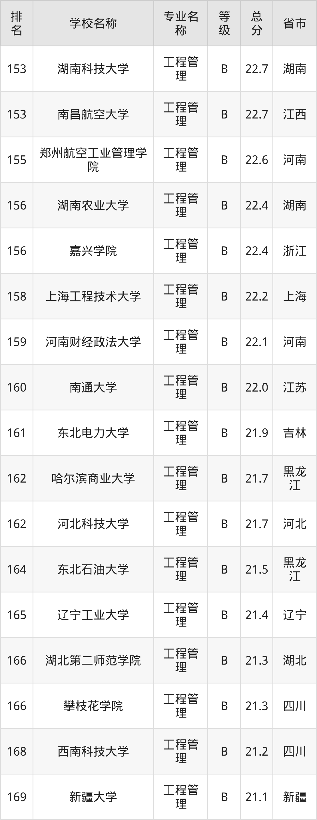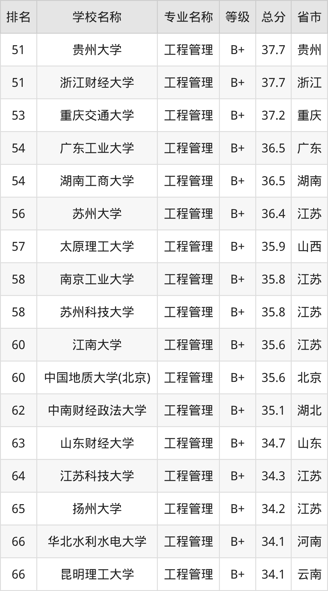 附工程管理专业全国234所院校排名榜单一览表!