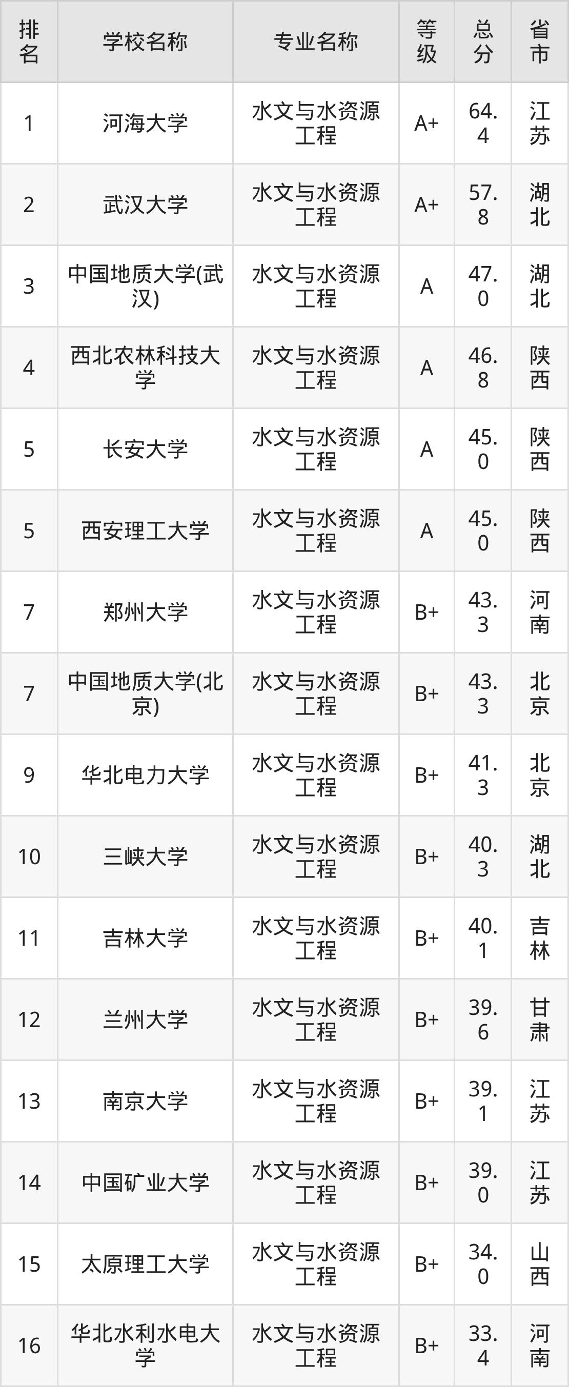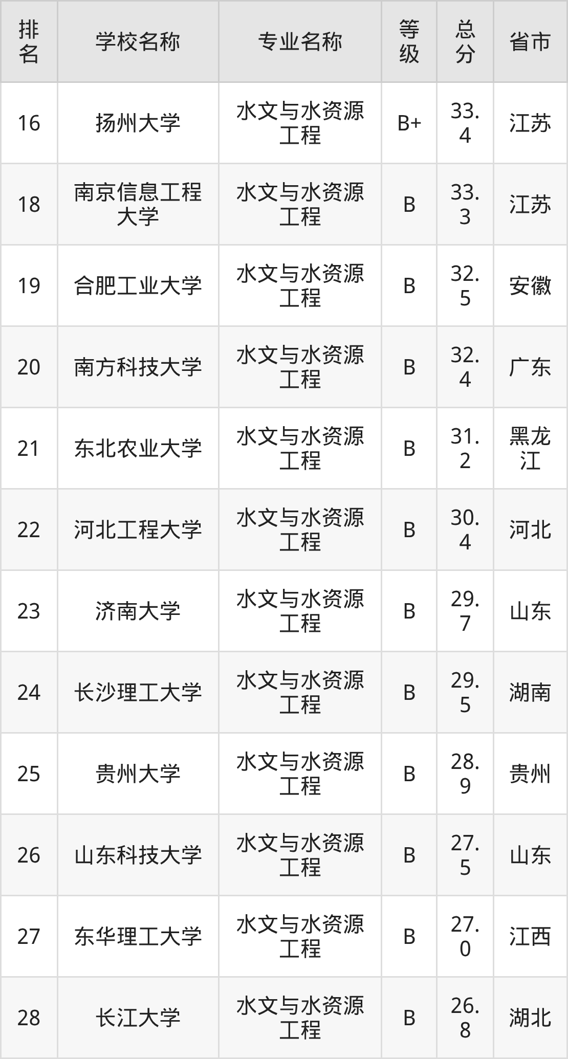 附水文与水资源工程专业全国28所院校排名榜单一览表!