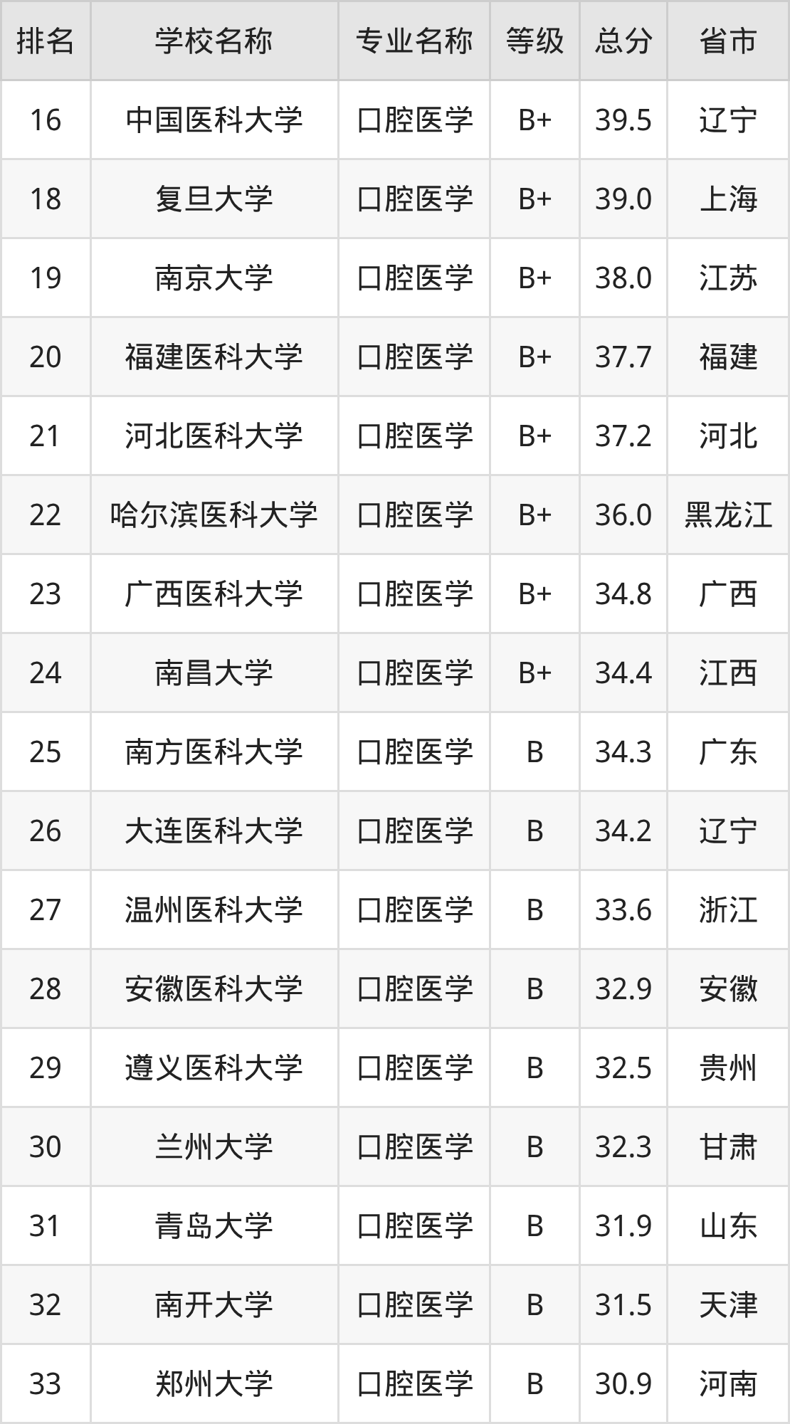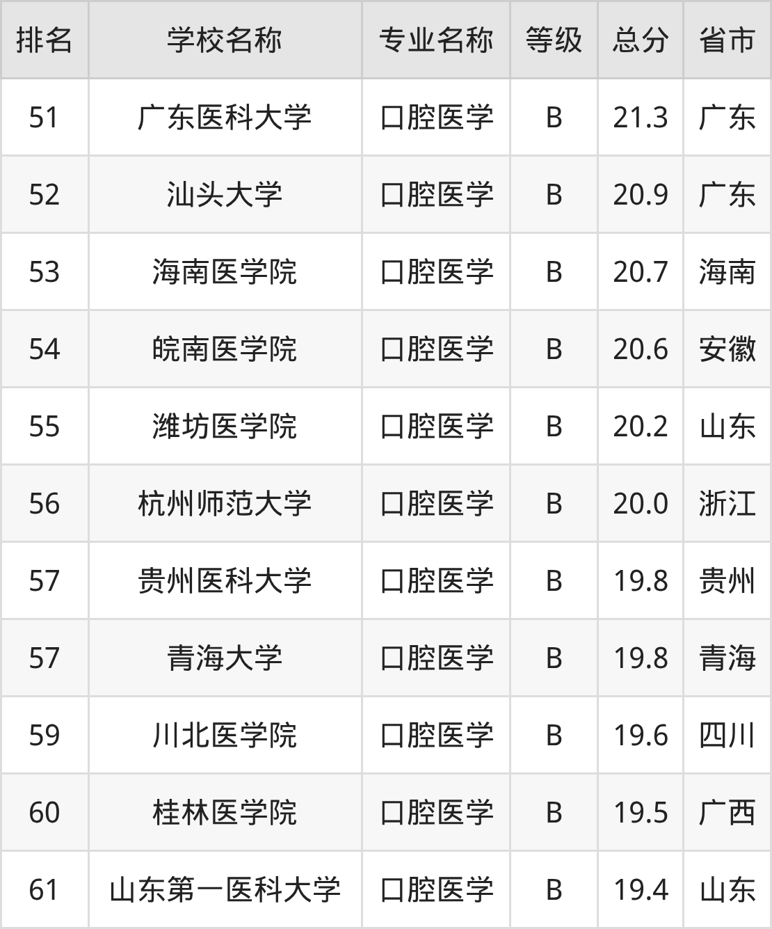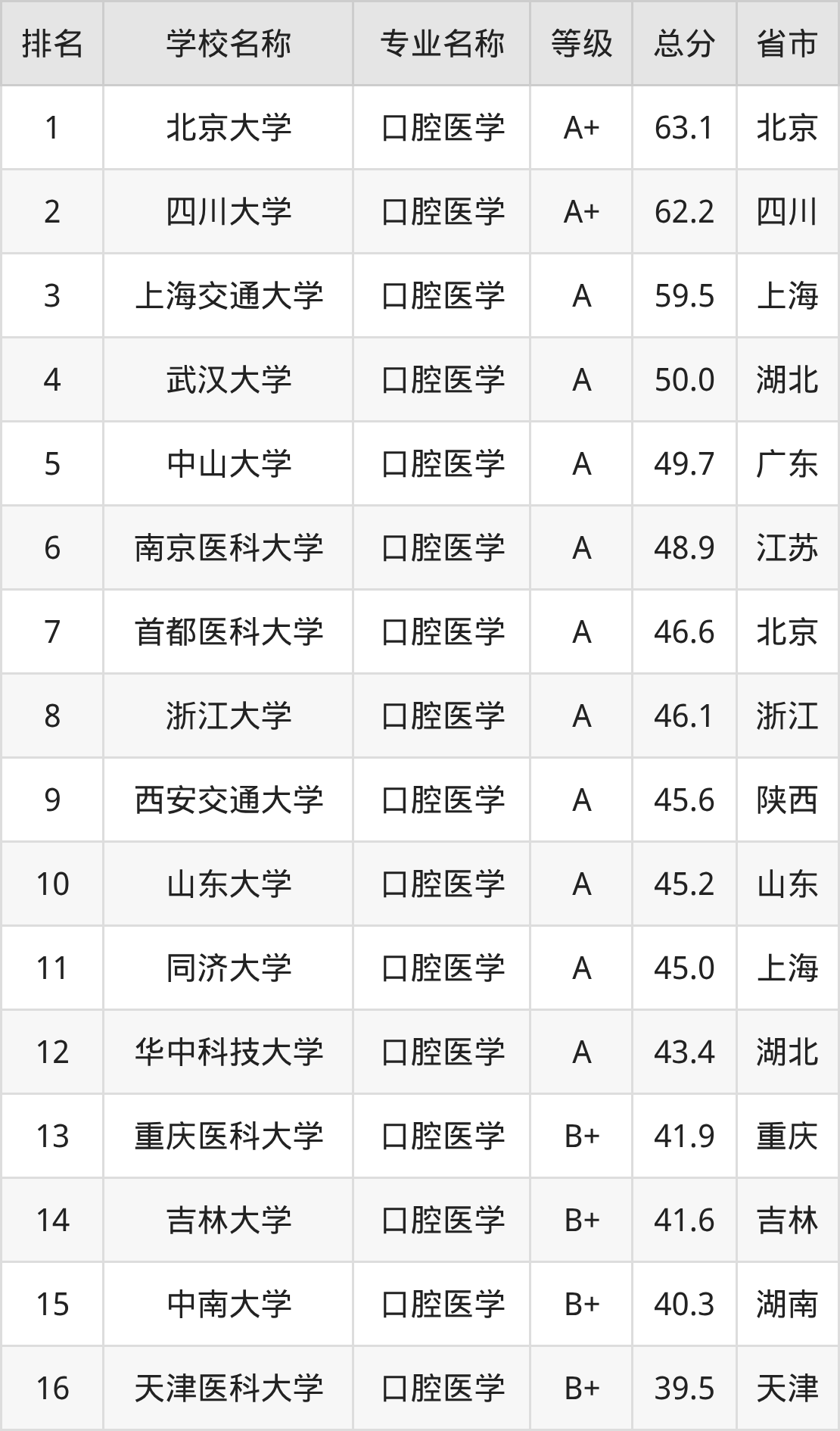 附口腔医学专业全国61所院校排名榜单一览表!