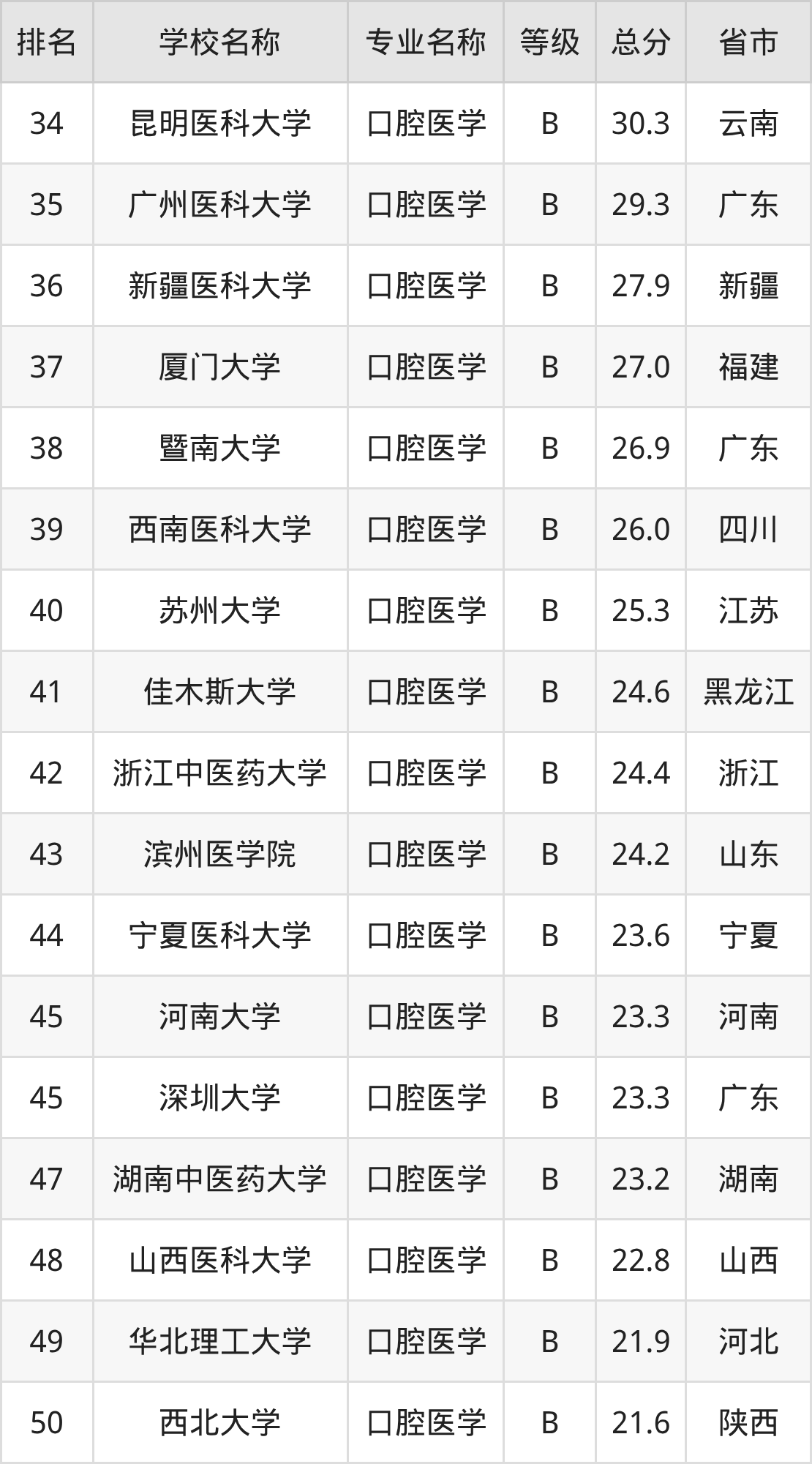 一、2025年口腔医学专业全国大学排名