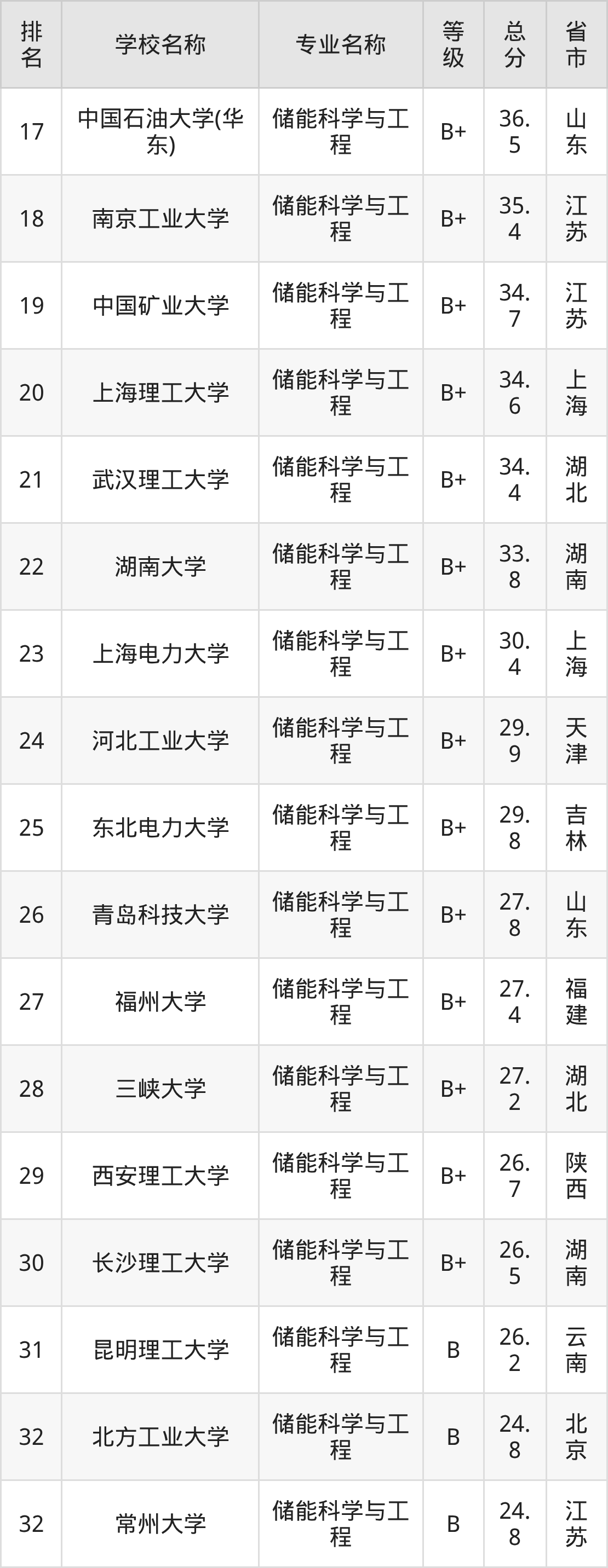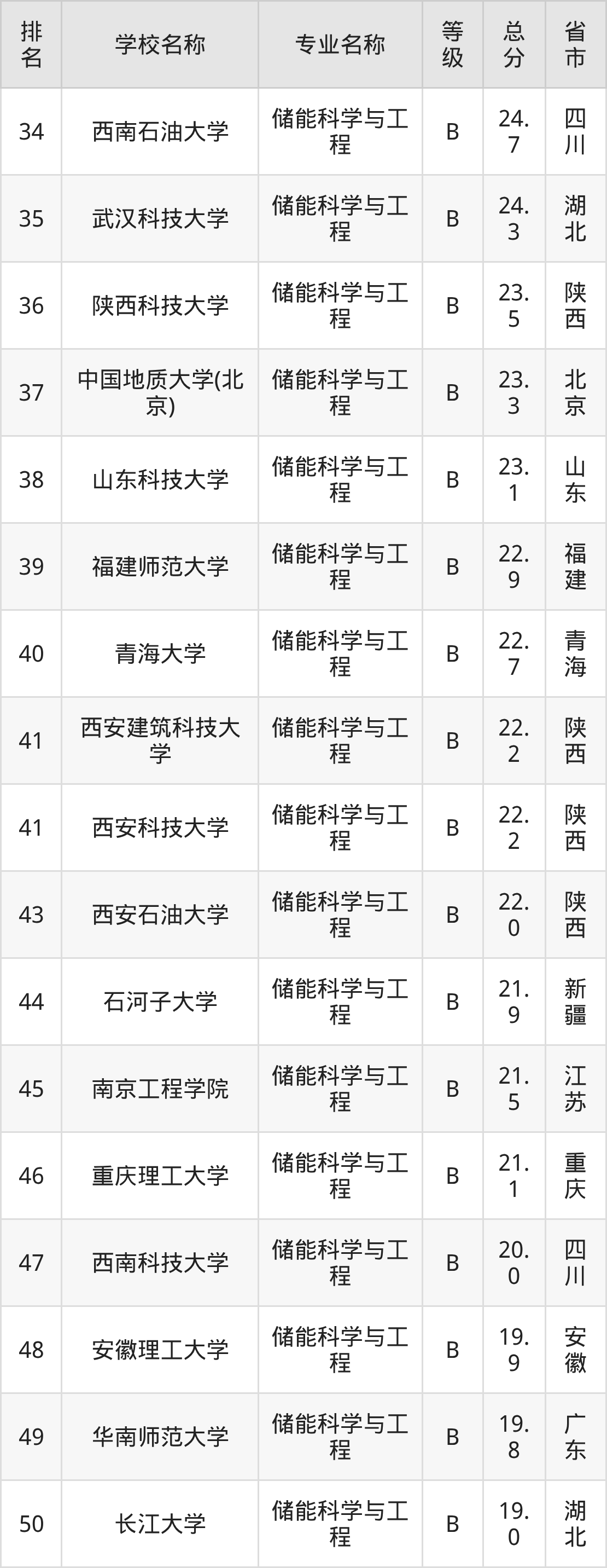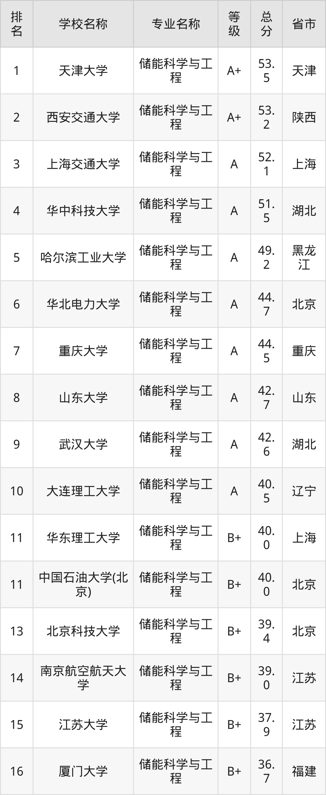 附储能科学与工程专业全国51所院校排名榜单一览表!
