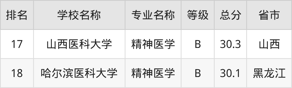 附精神医学专业全国18所院校排名榜单一览表!