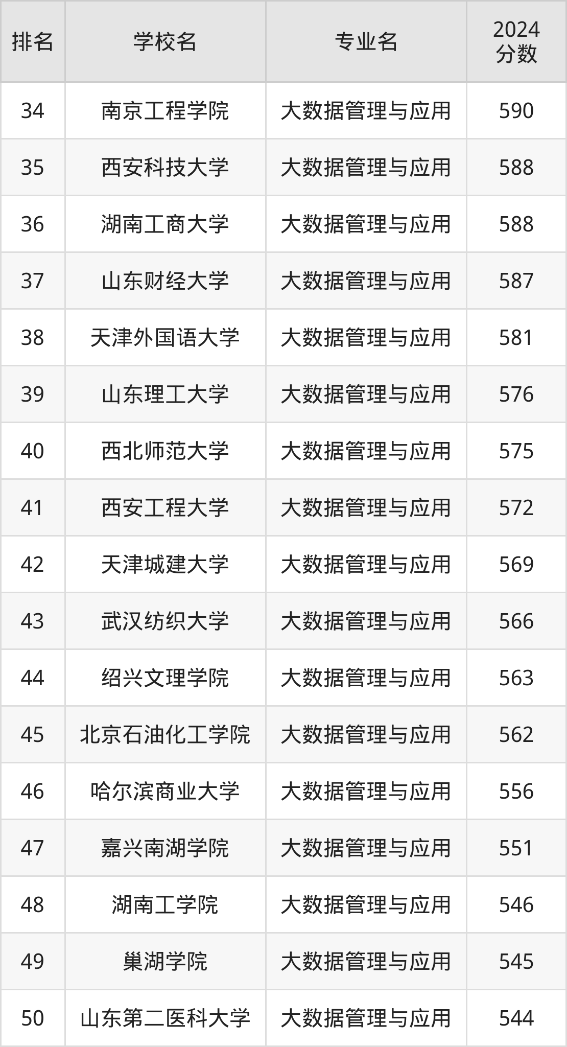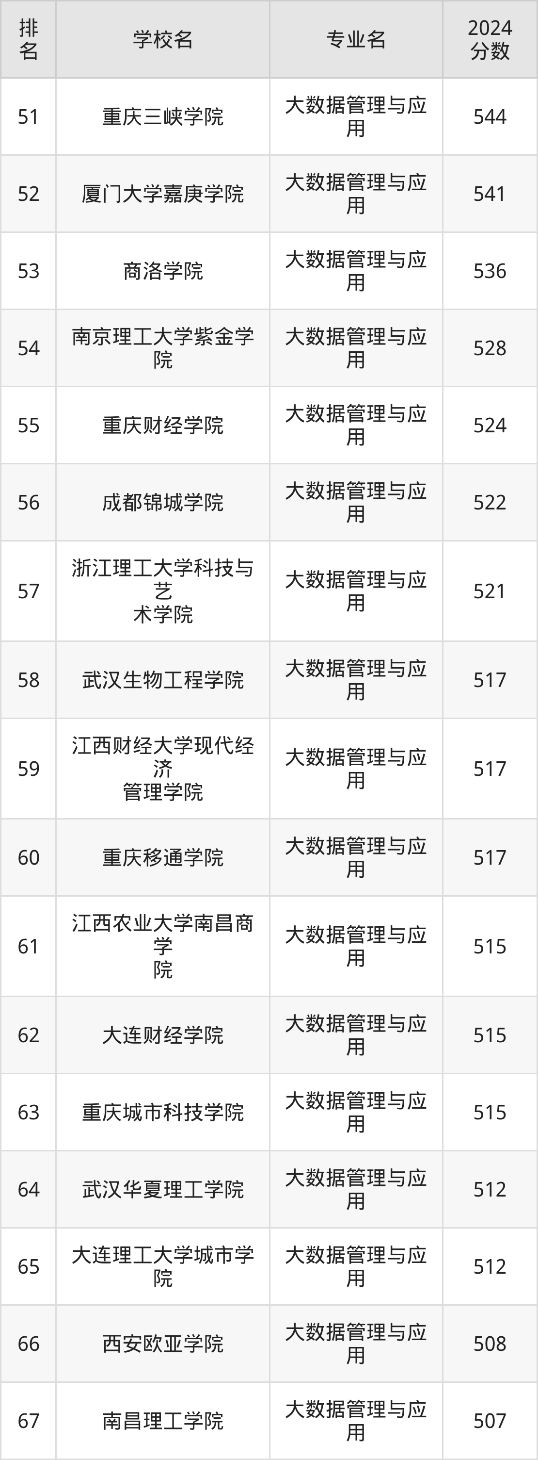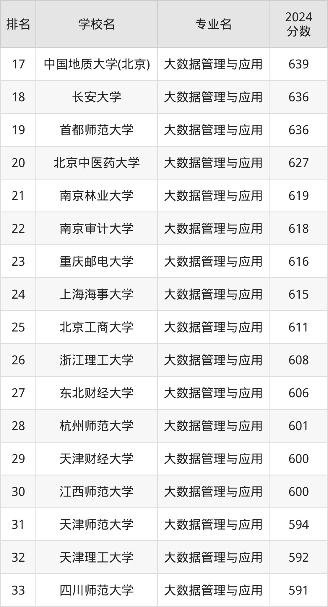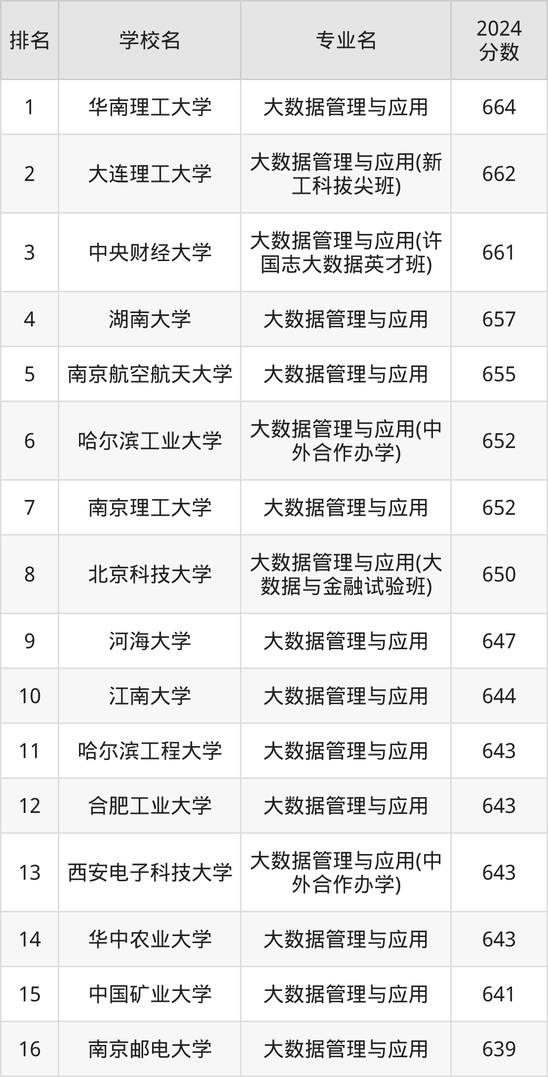 (注:不包含把大数据管理与应用专业列在大类专业中招生的名校)