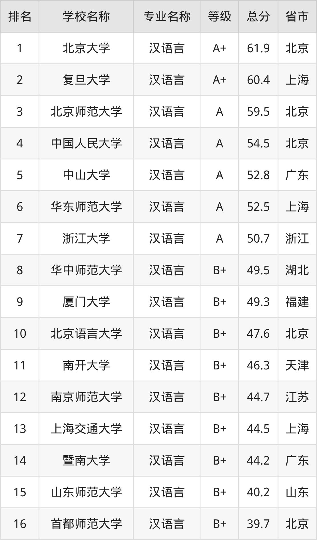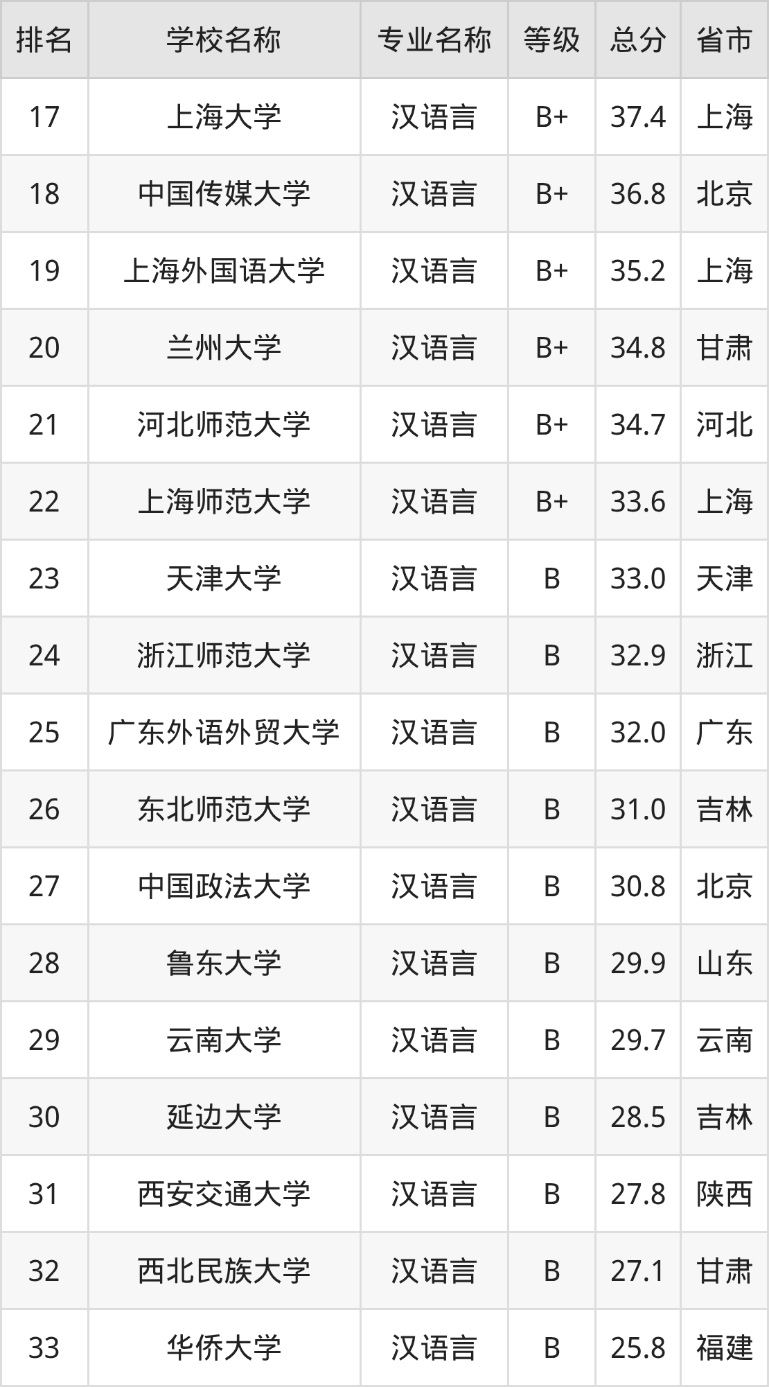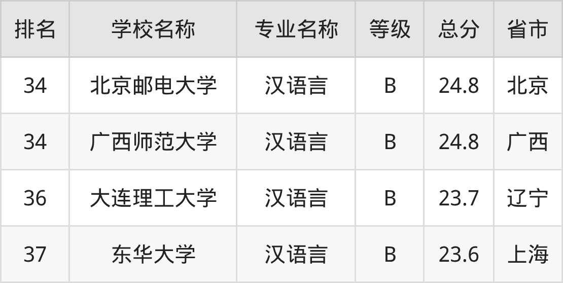 附汉语言专业全国37所院校排名榜单一览表!