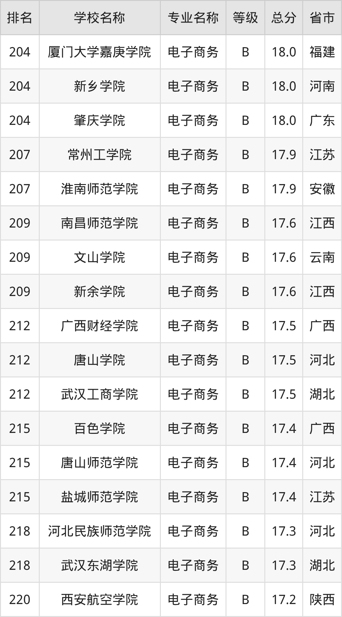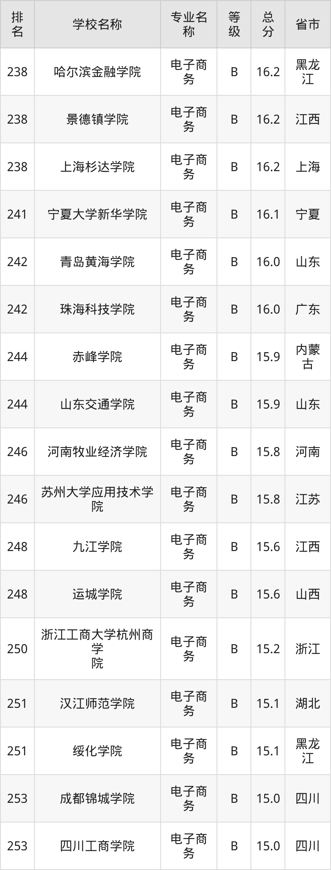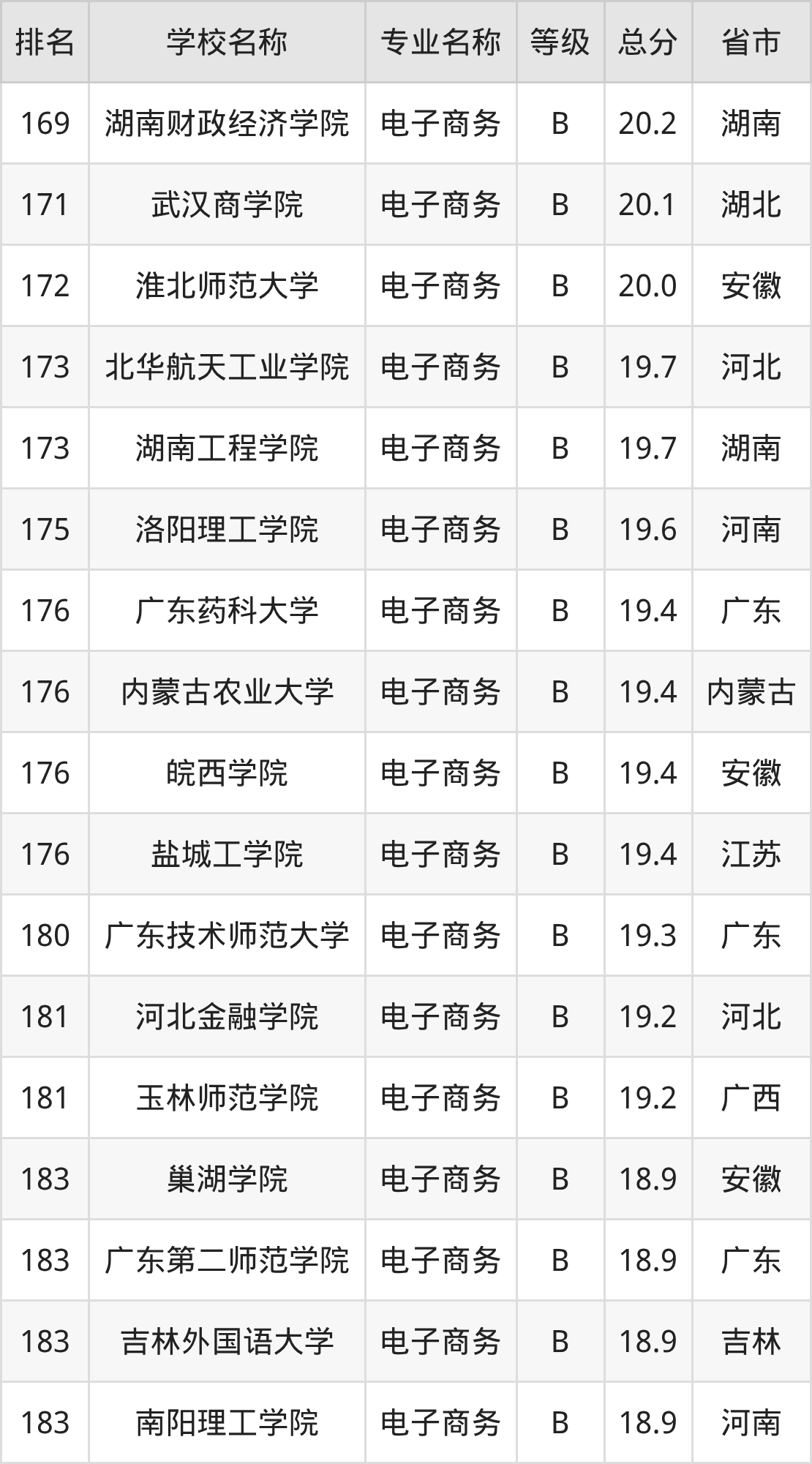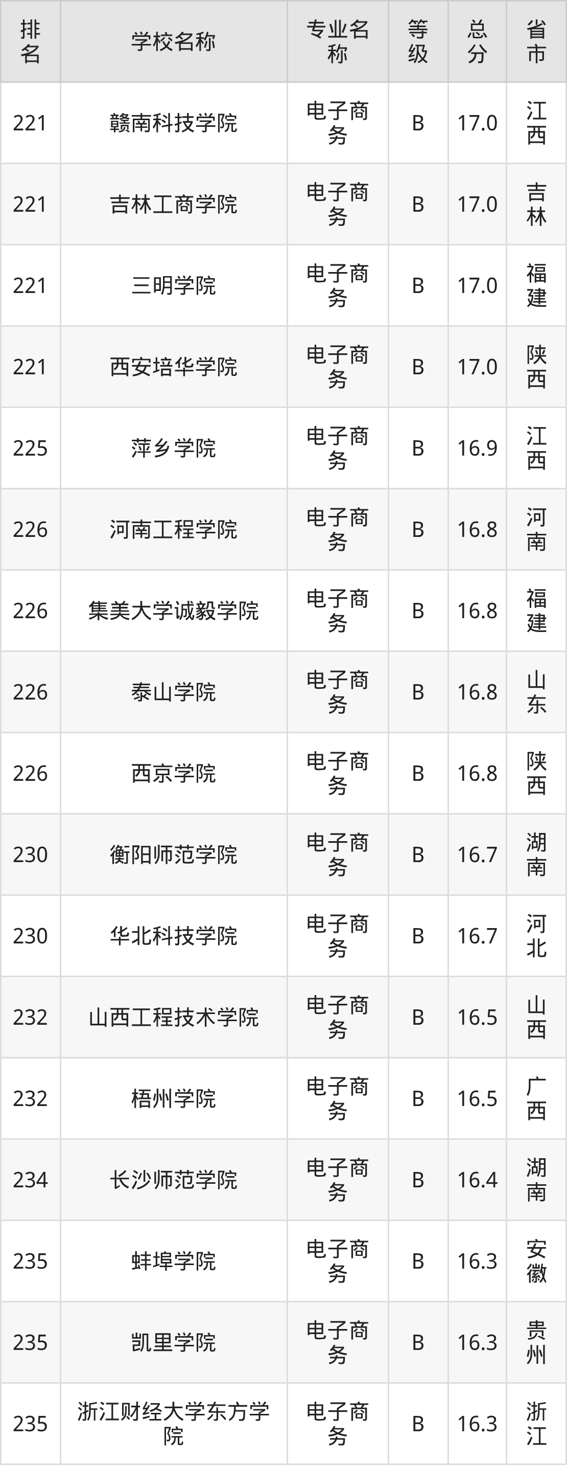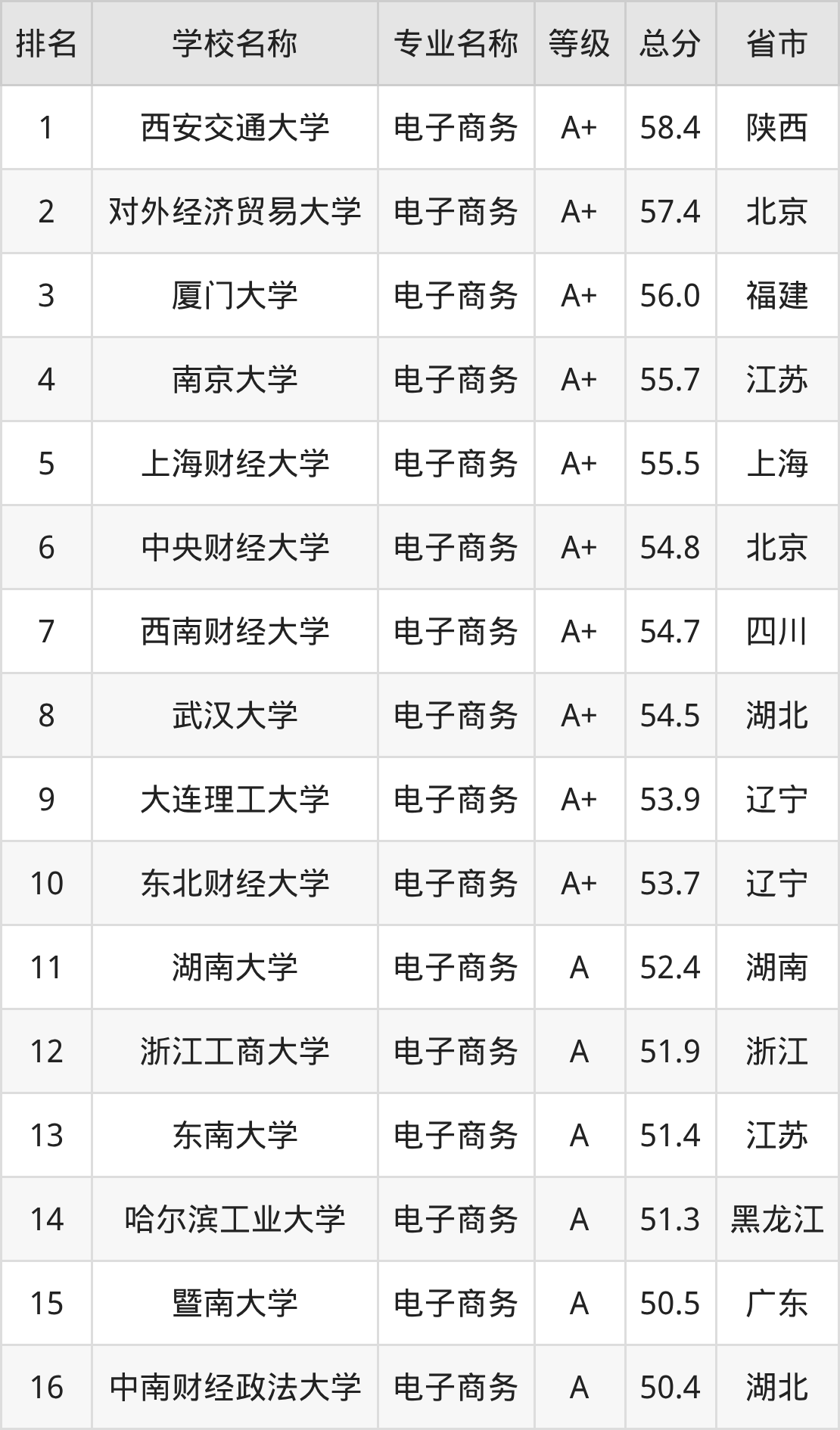 根据软科榜单可知,电子商务专业全国排名前十的大学分别是: