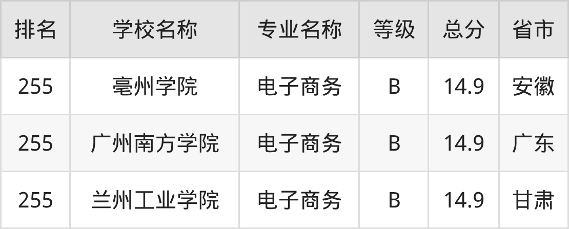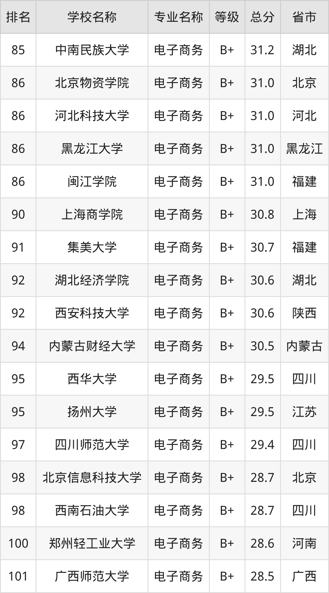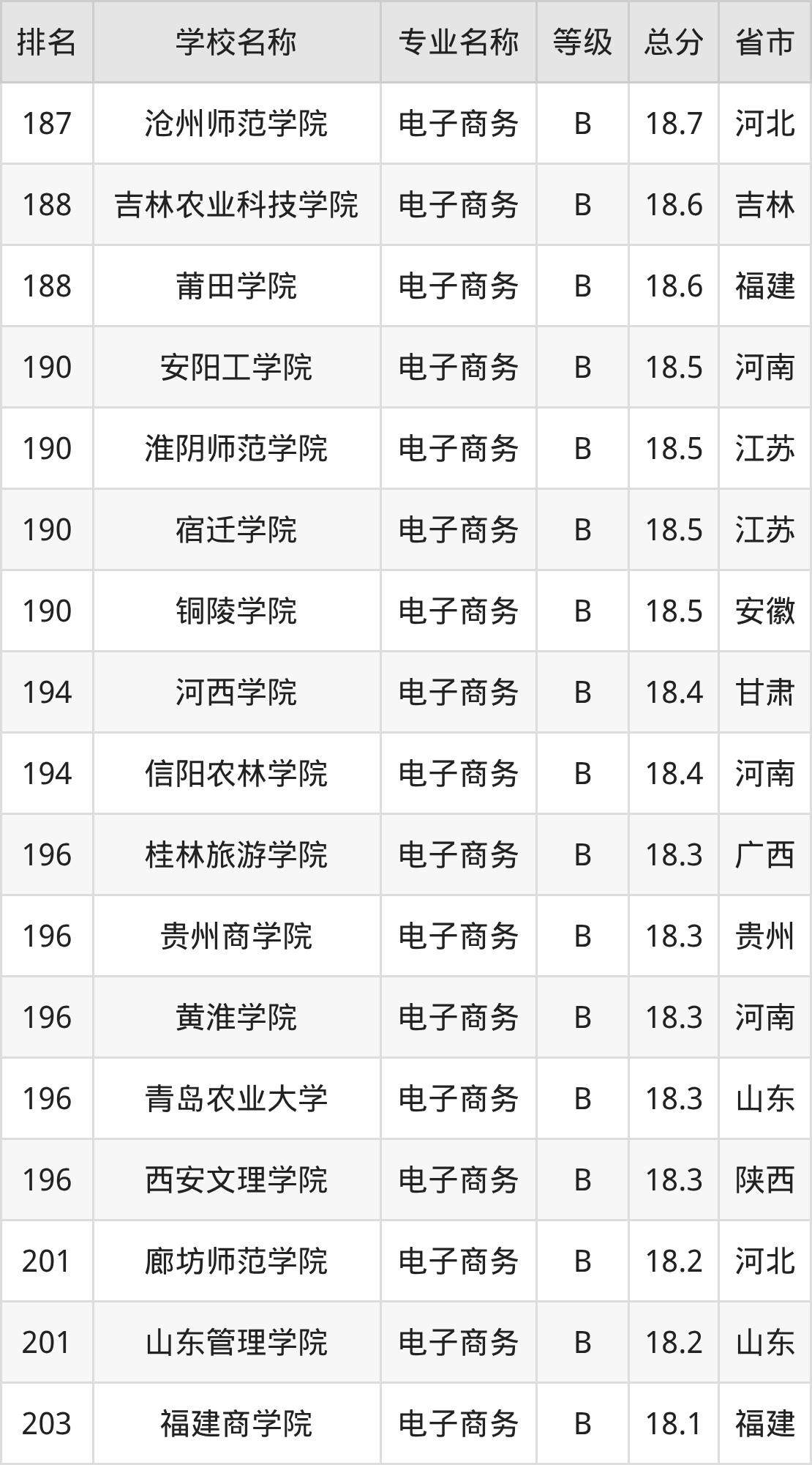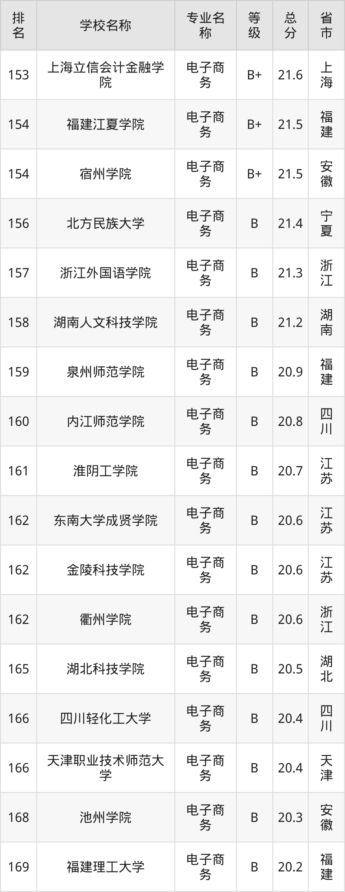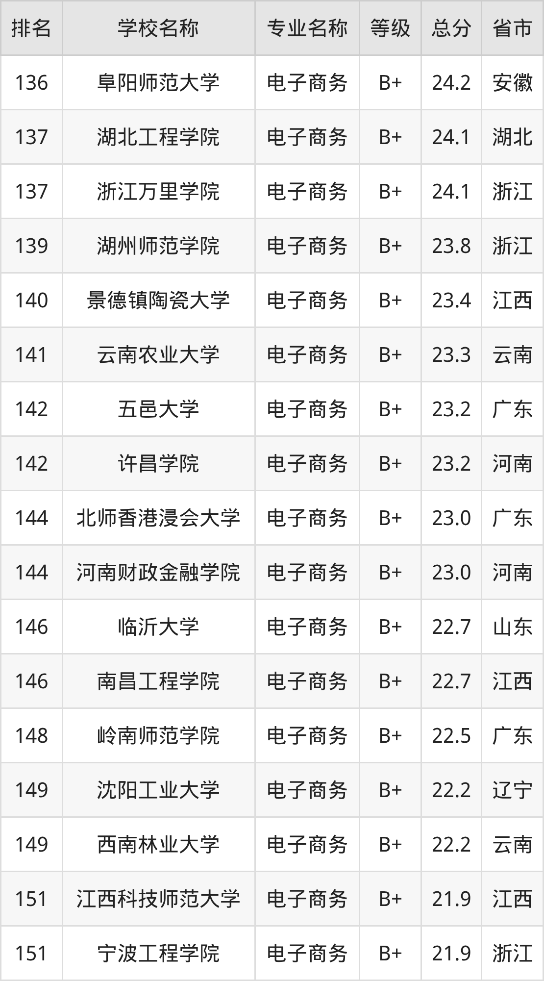 根据软科榜单可知,电子商务专业全国排名前十的大学分别是: