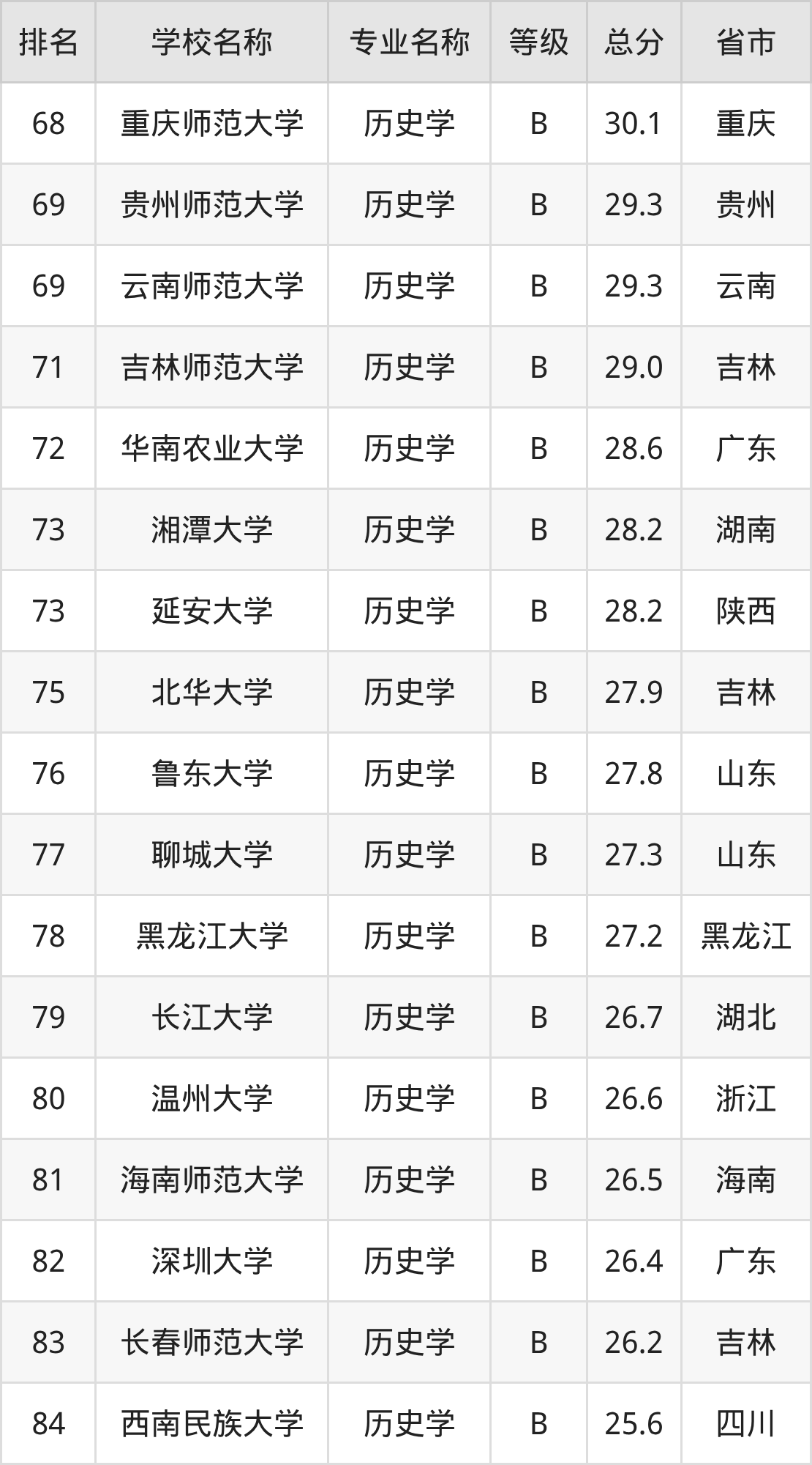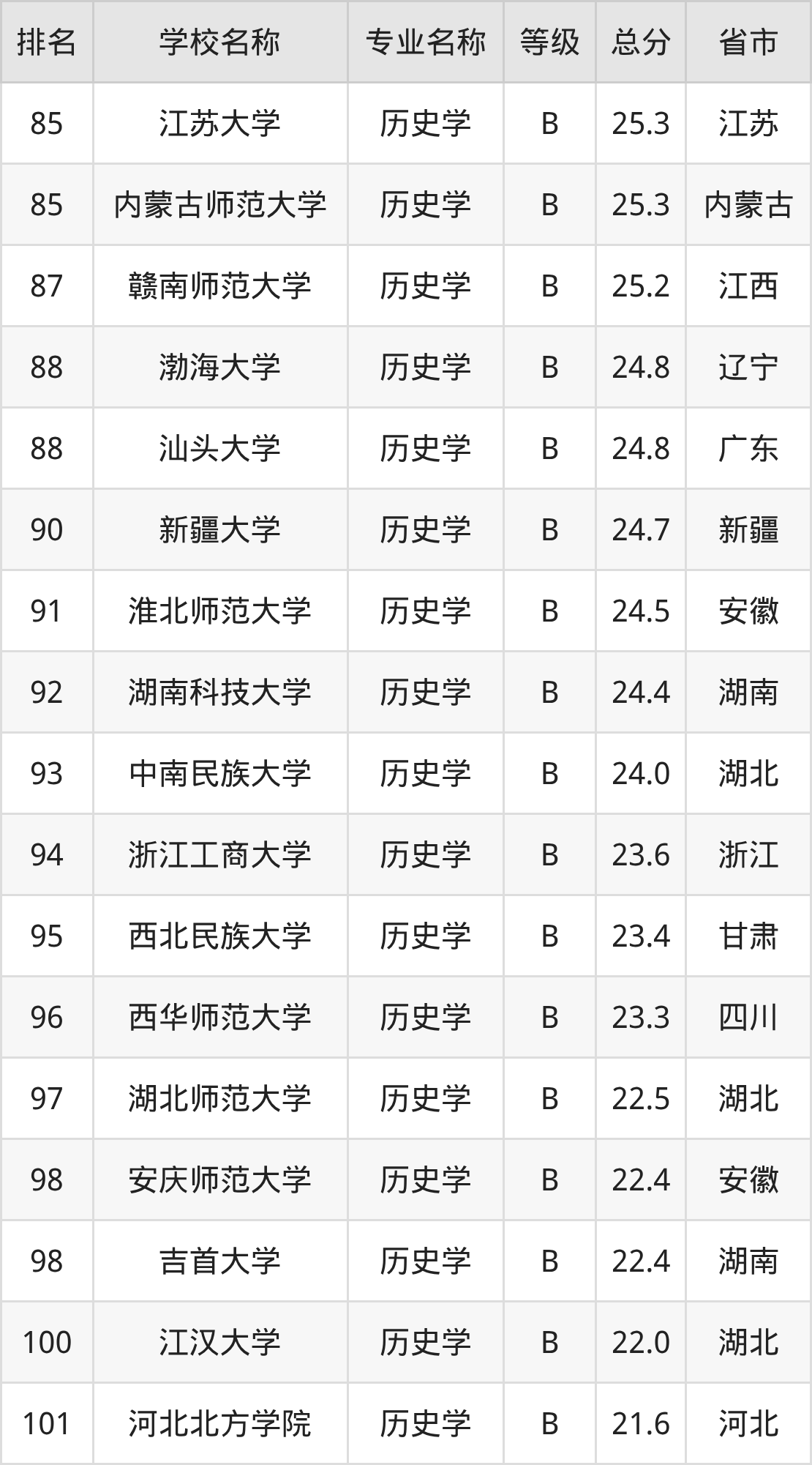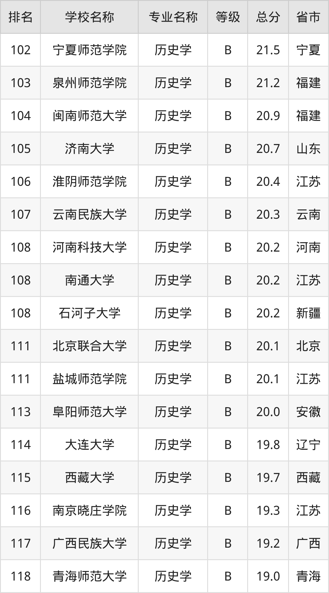 根据软科榜单可知,历史学专业全国排名前十的大学分别是: