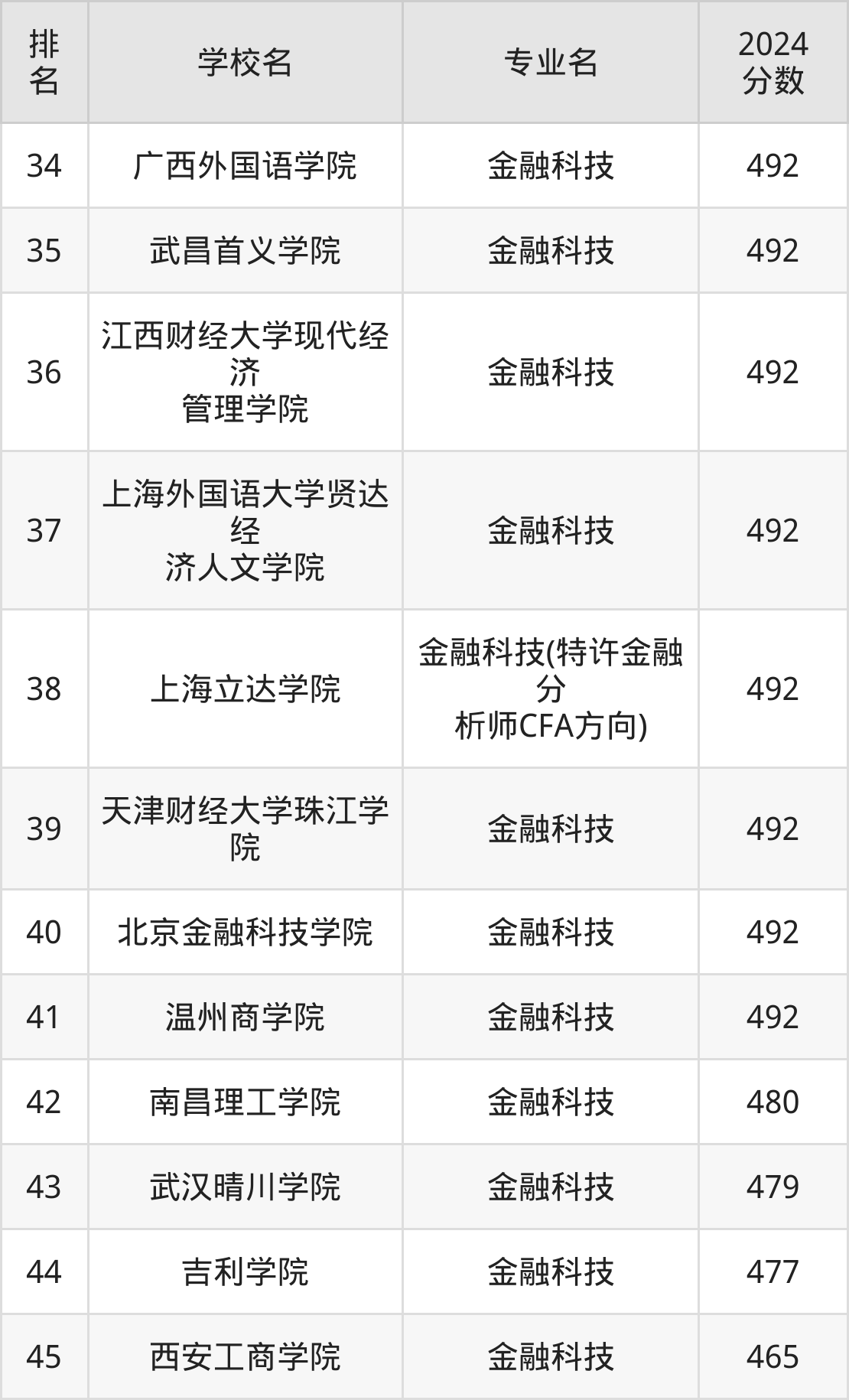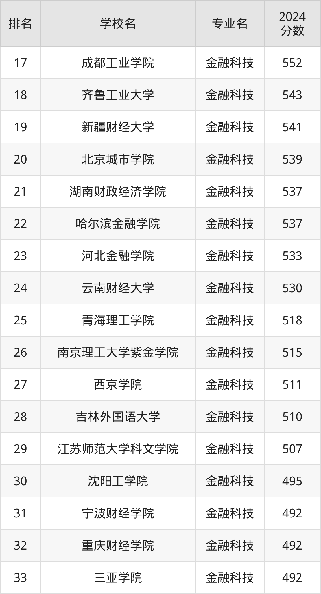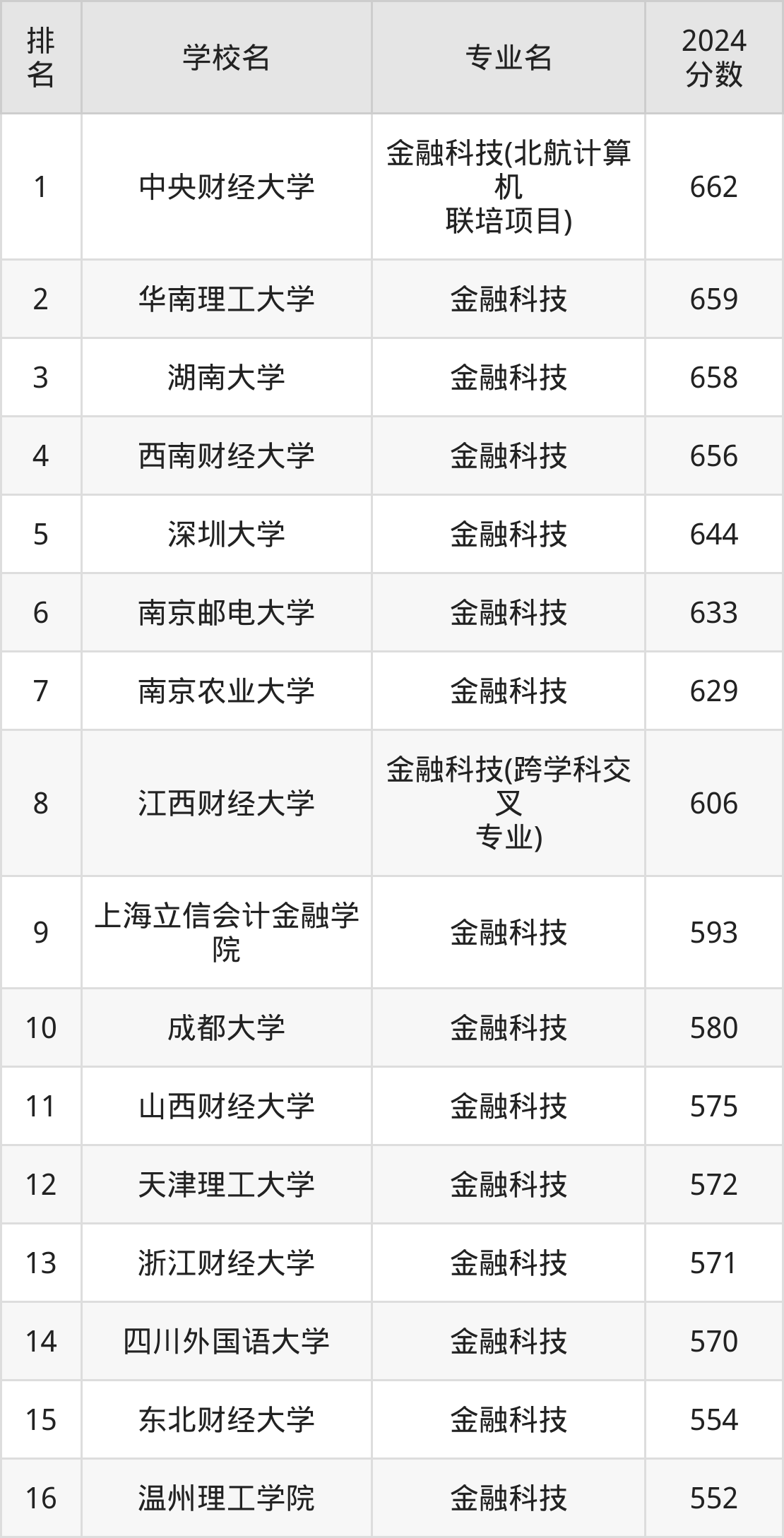 (注:不包含把金融科技专业列在大类专业中招生的名校)