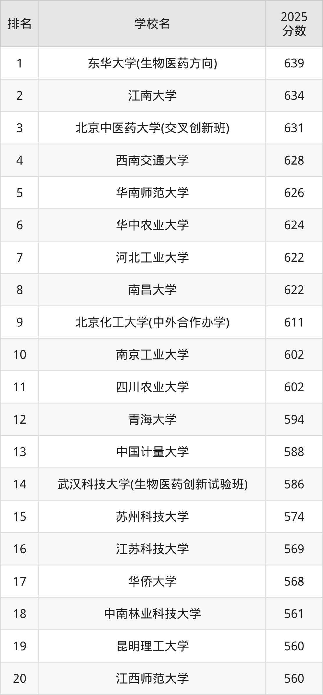 根据软科2025最新排名可知,生物工程专业最好的十所名校名单如下: