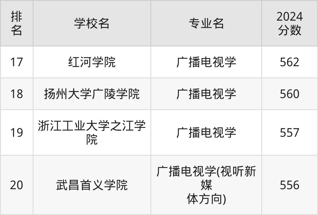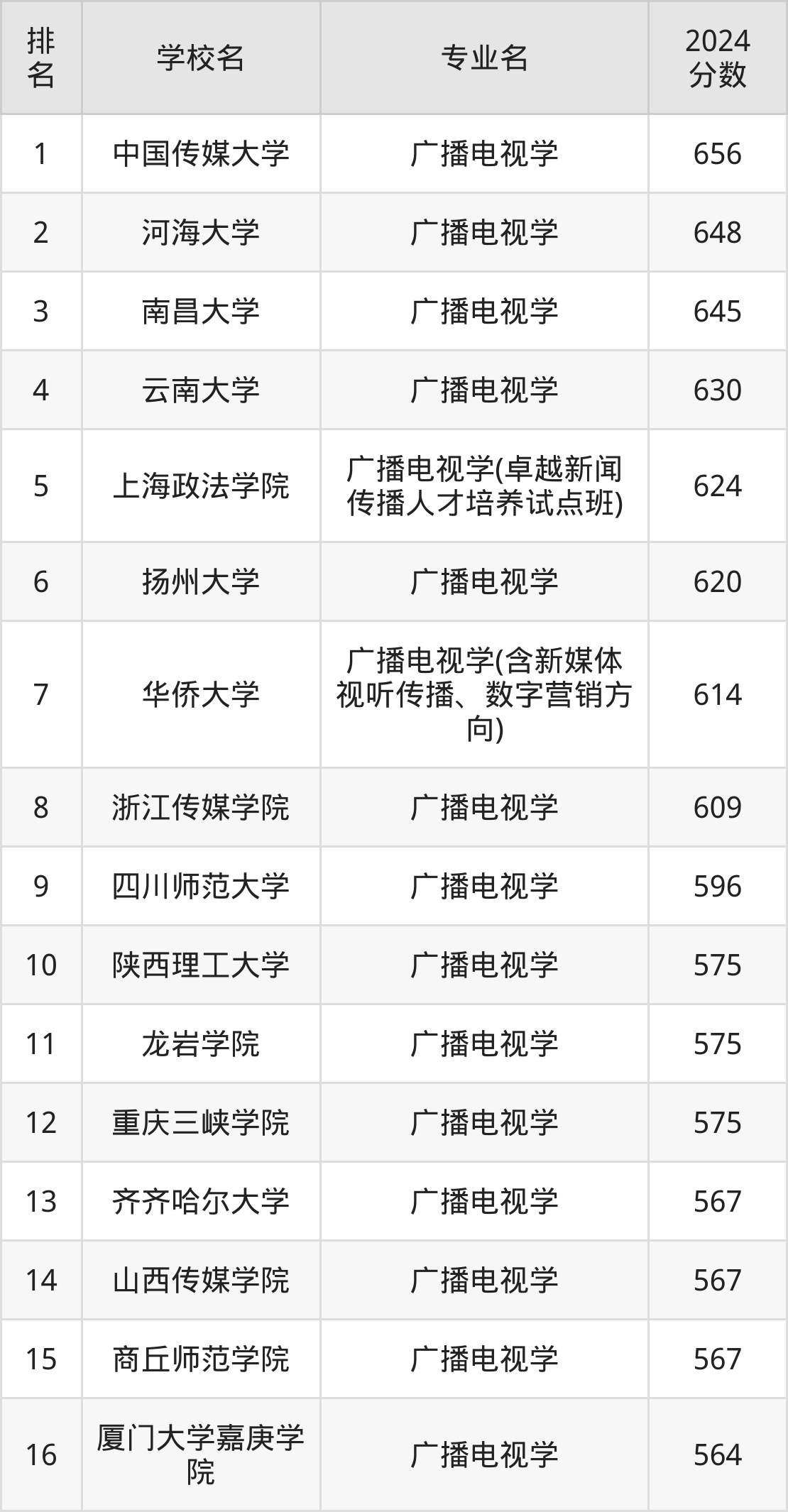 (注:不包含把广播电视学专业列在大类专业中招生的名校)