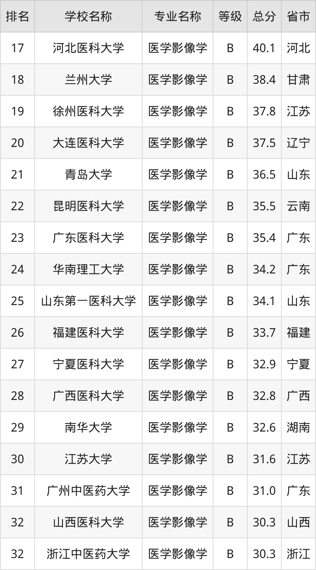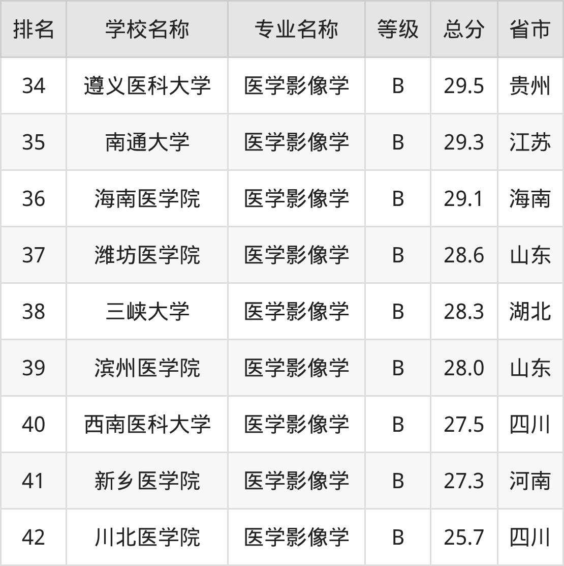 根据软科榜单可知,医学影像学专业全国排名前十的大学分别是: