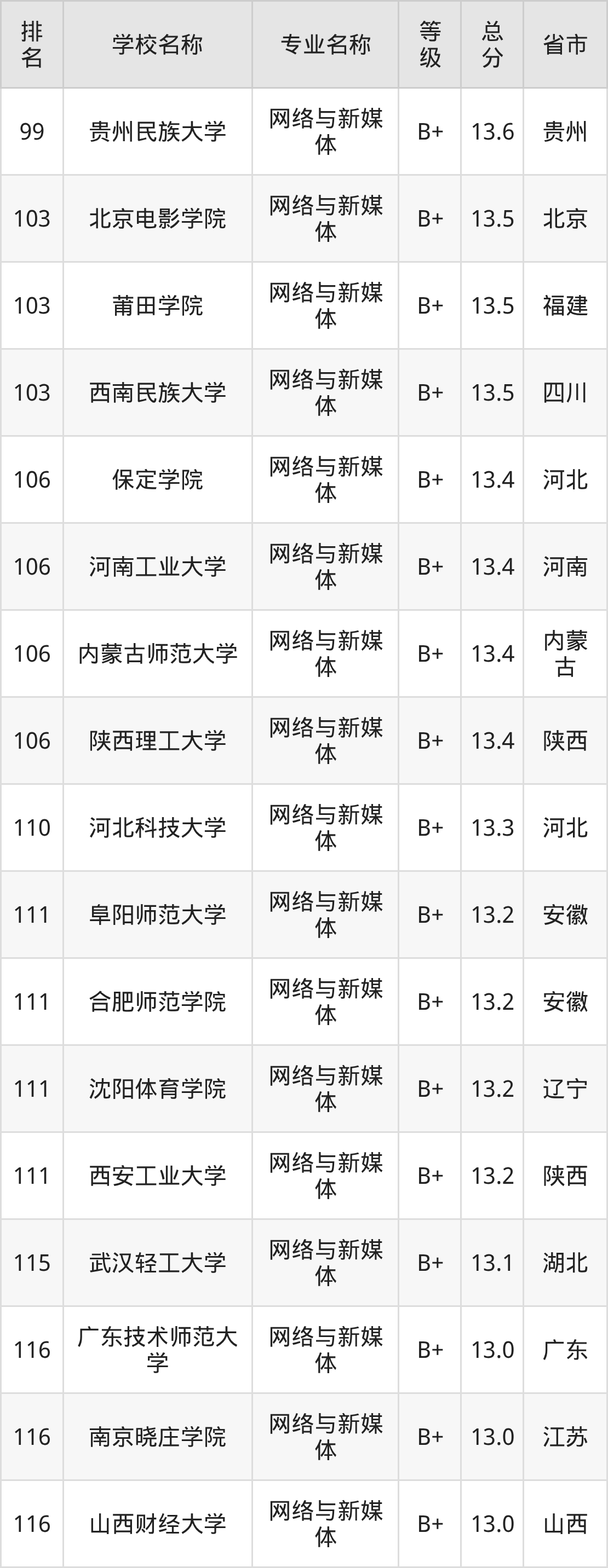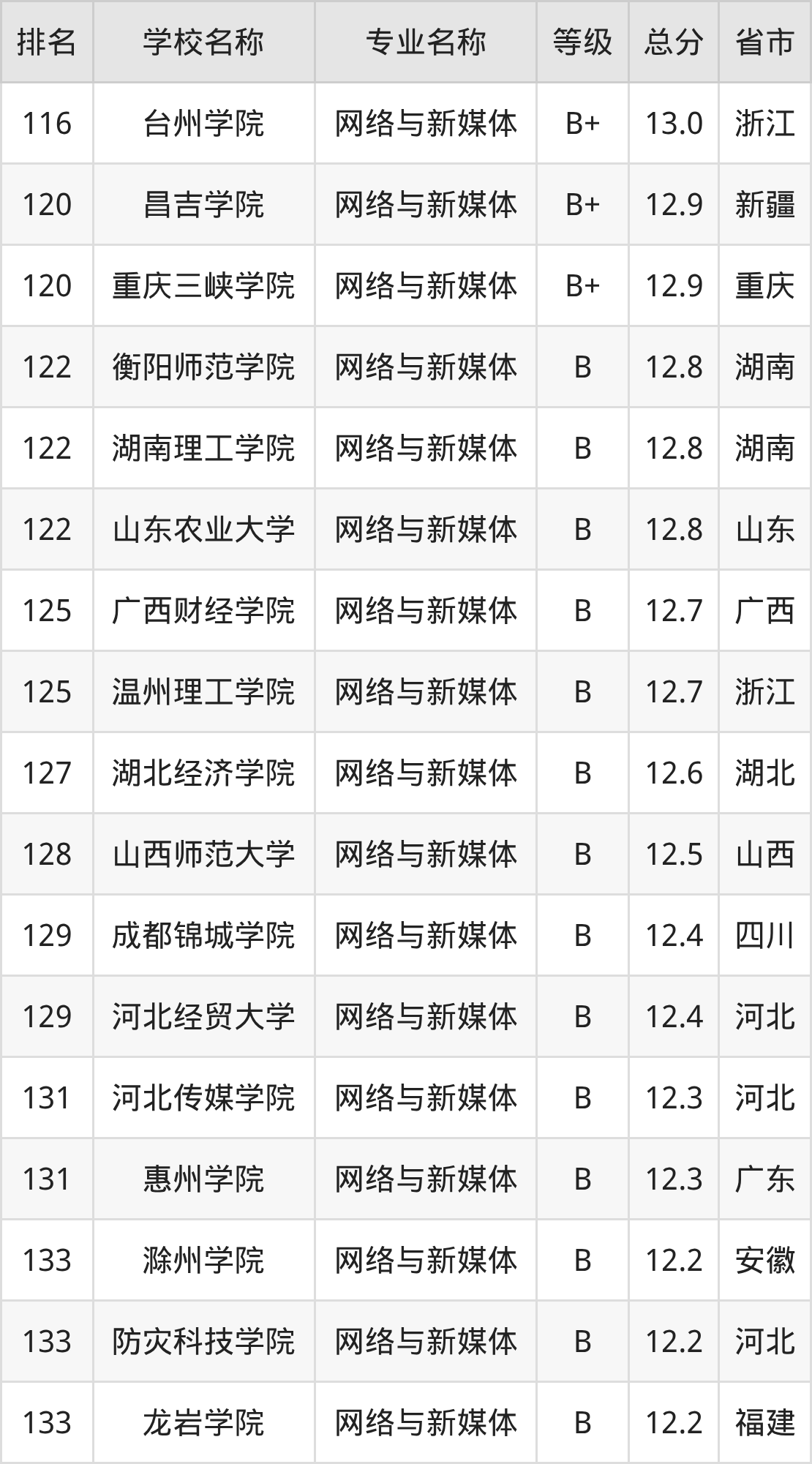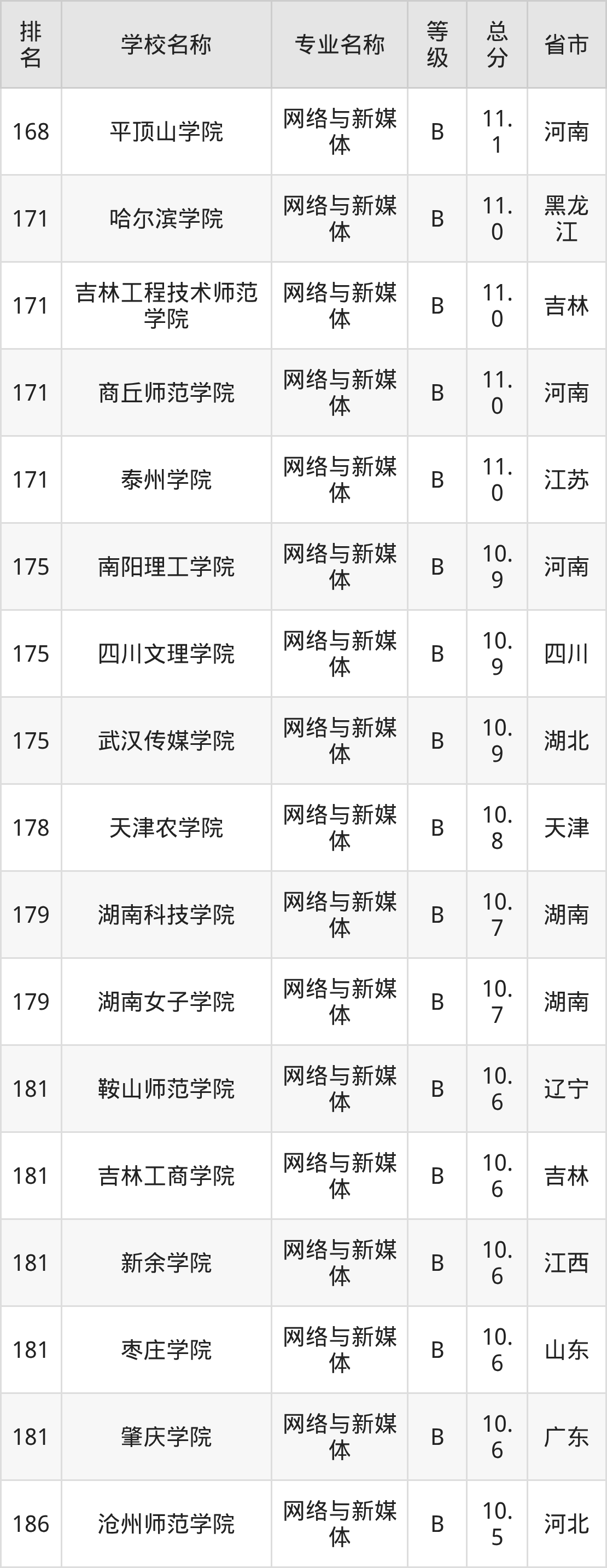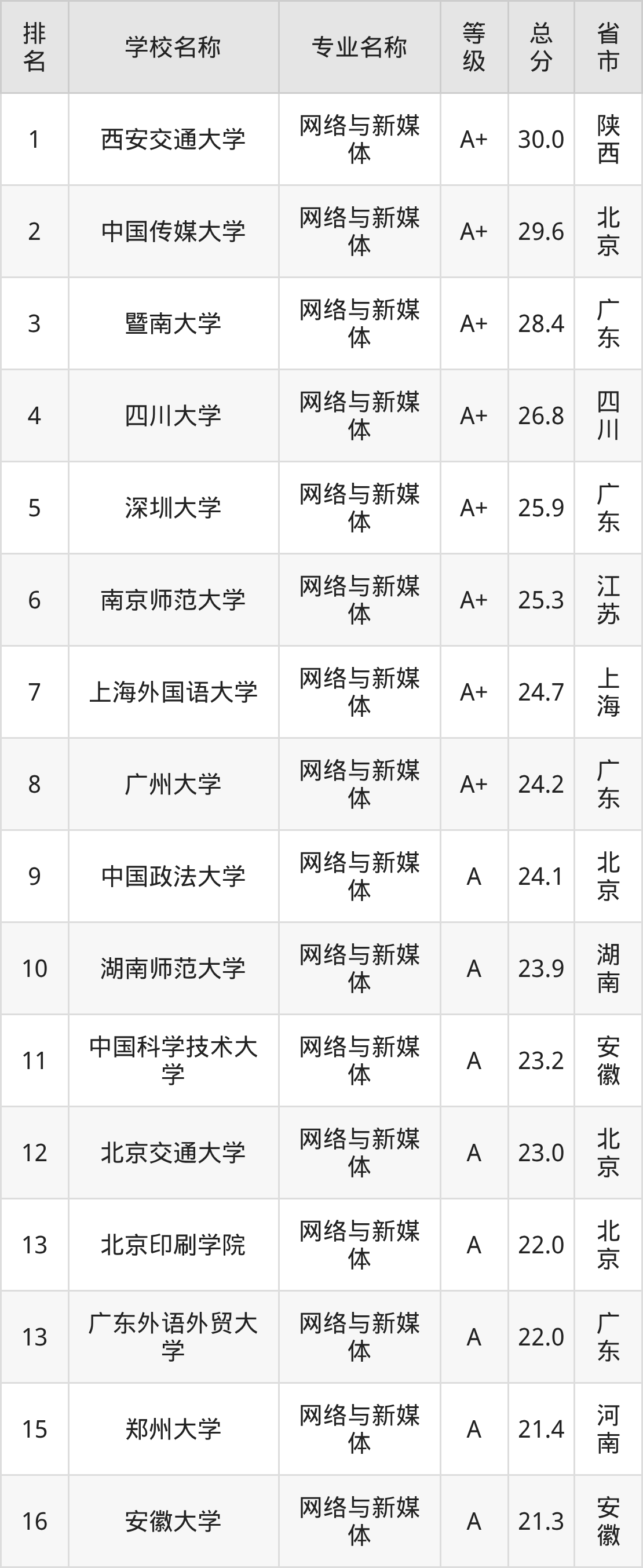 附网络与新媒体专业全国206所院校排名榜单一览表!