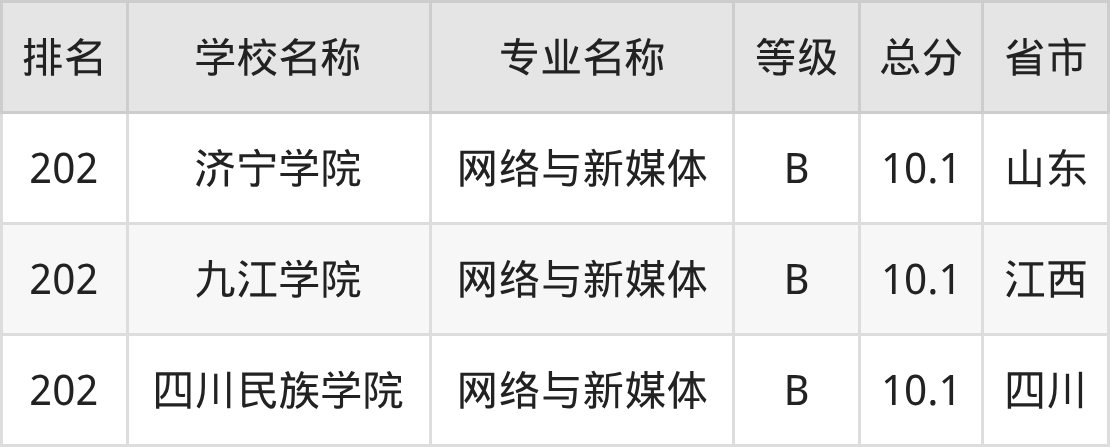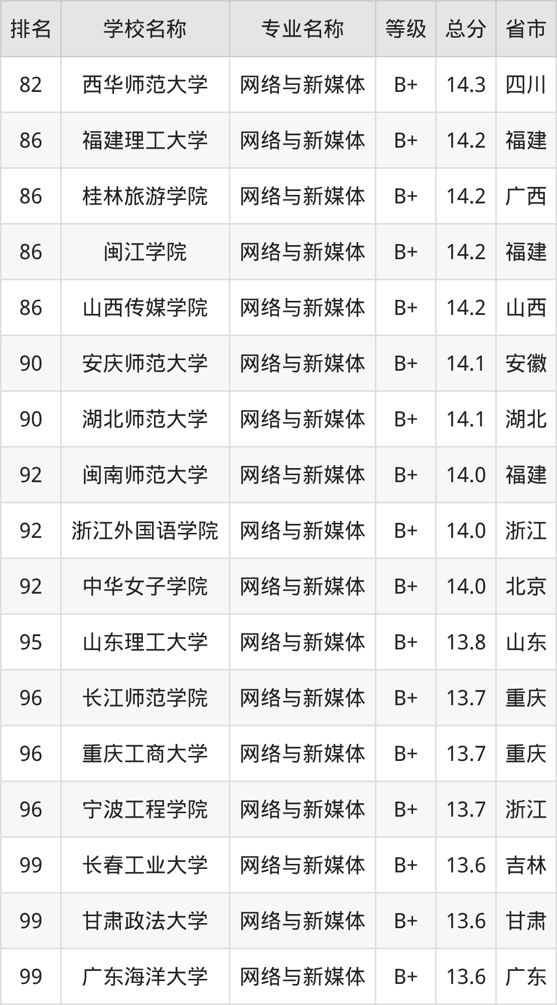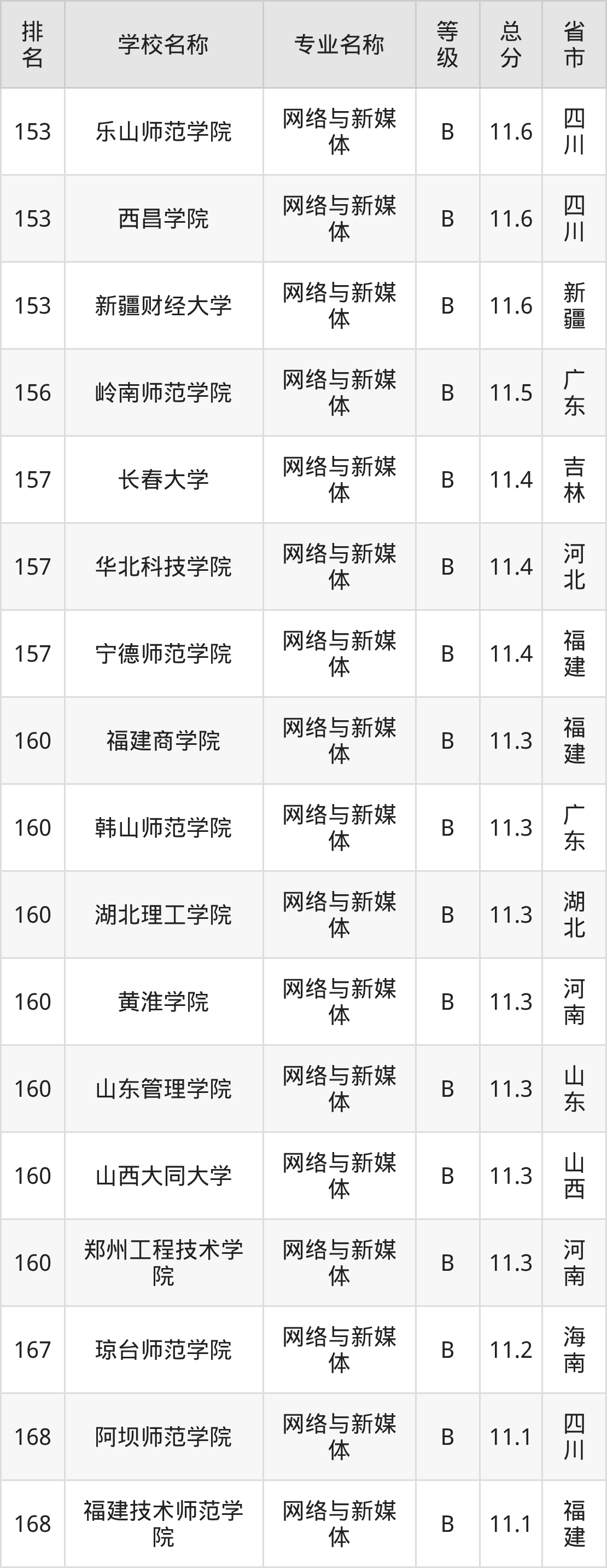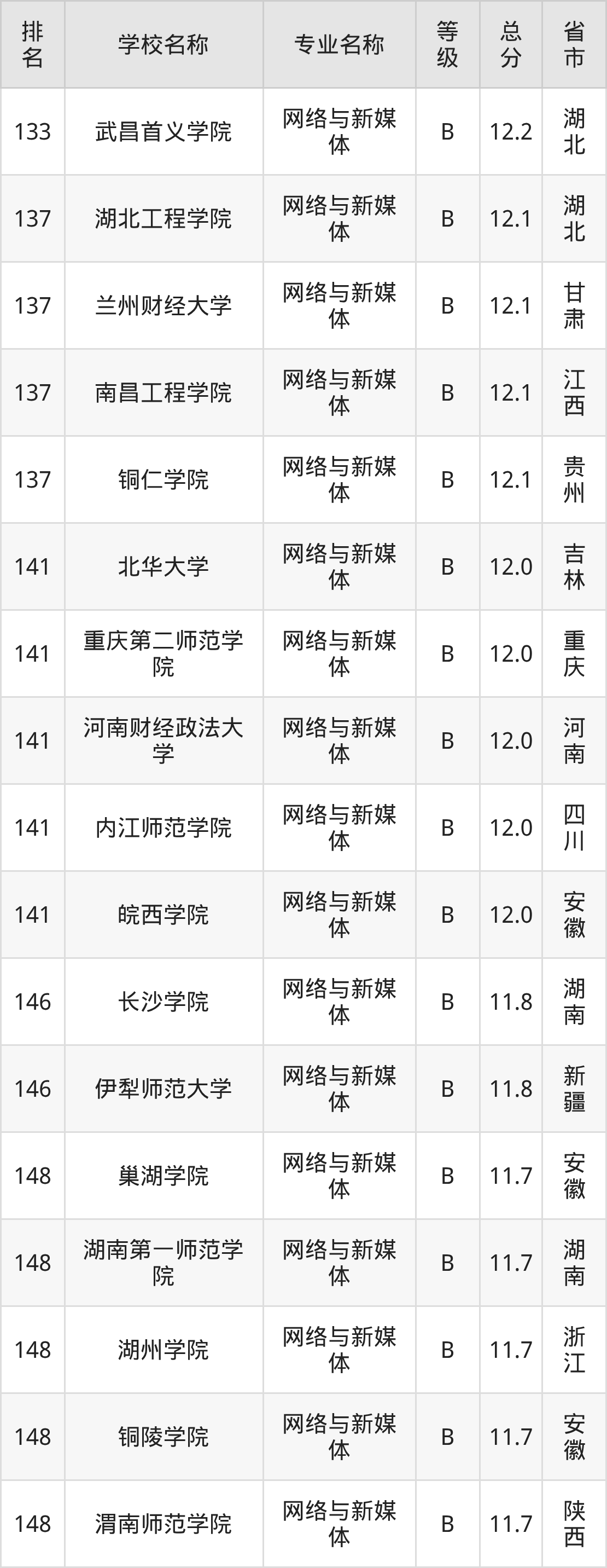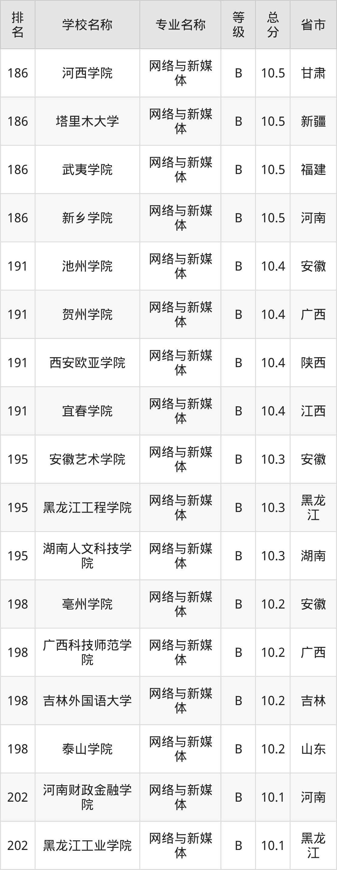 附网络与新媒体专业全国206所院校排名榜单一览表!
