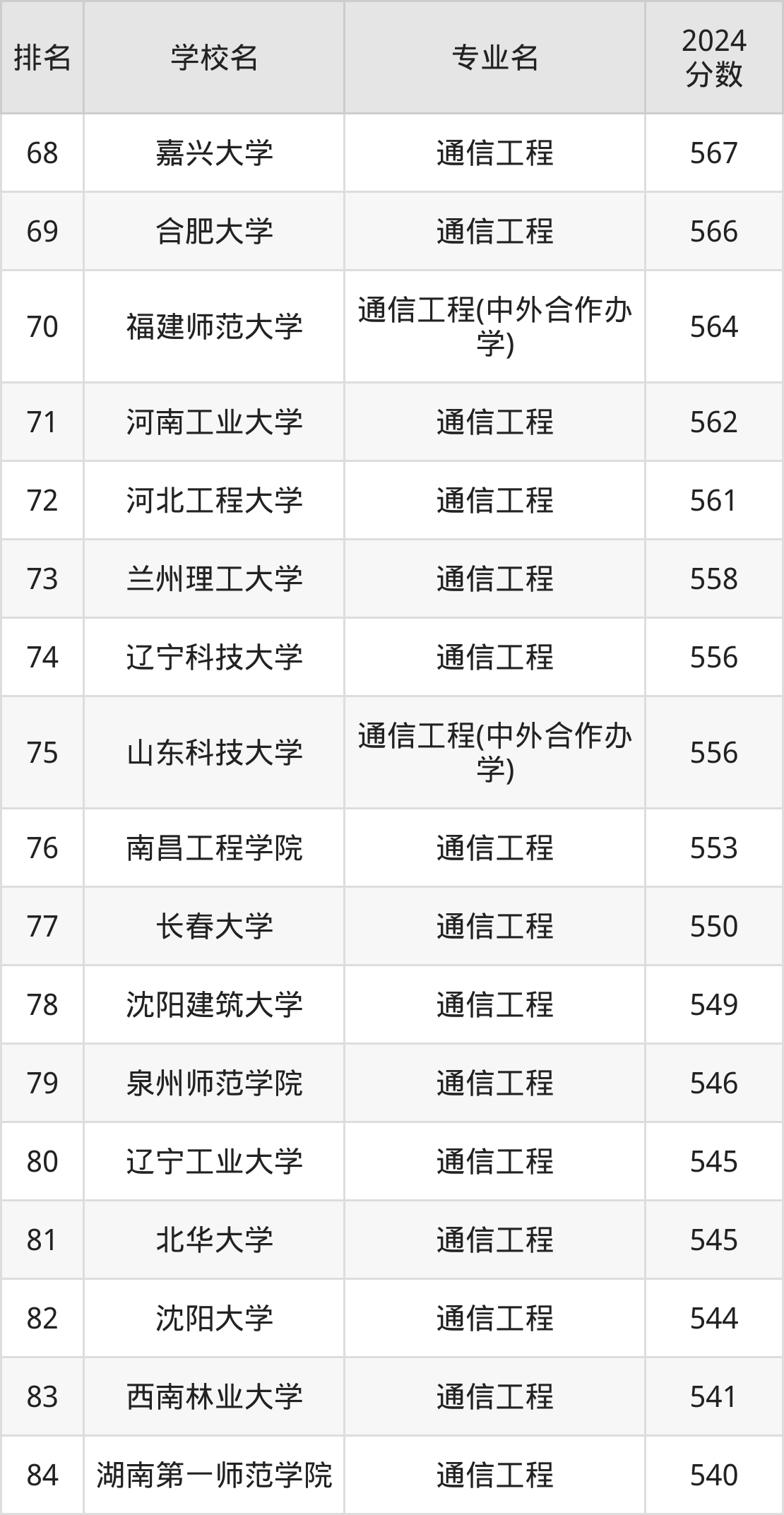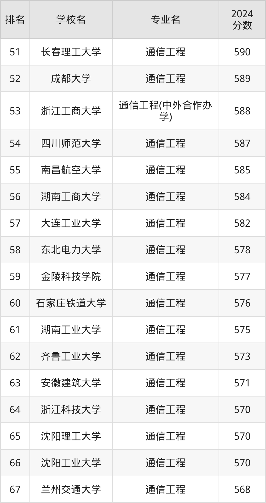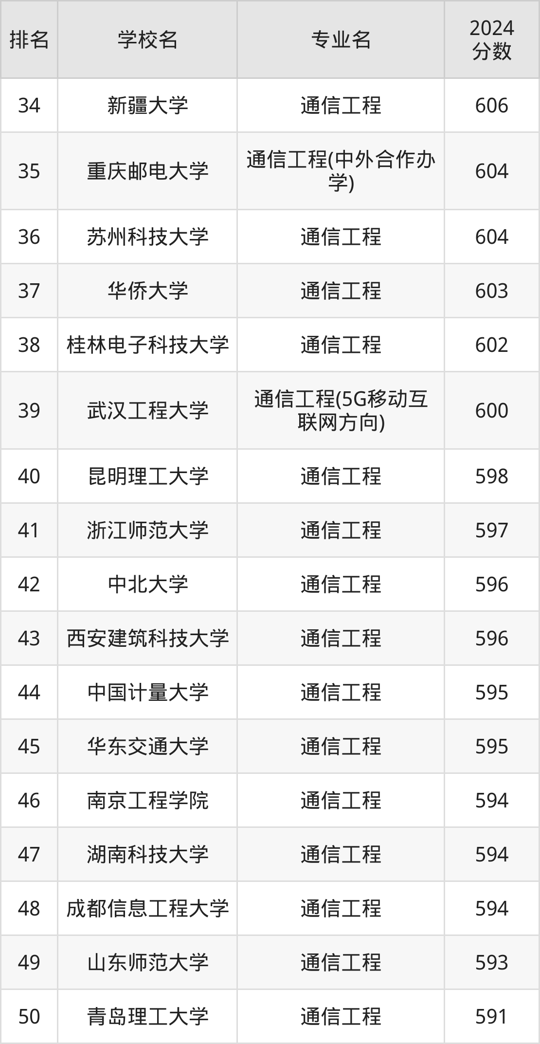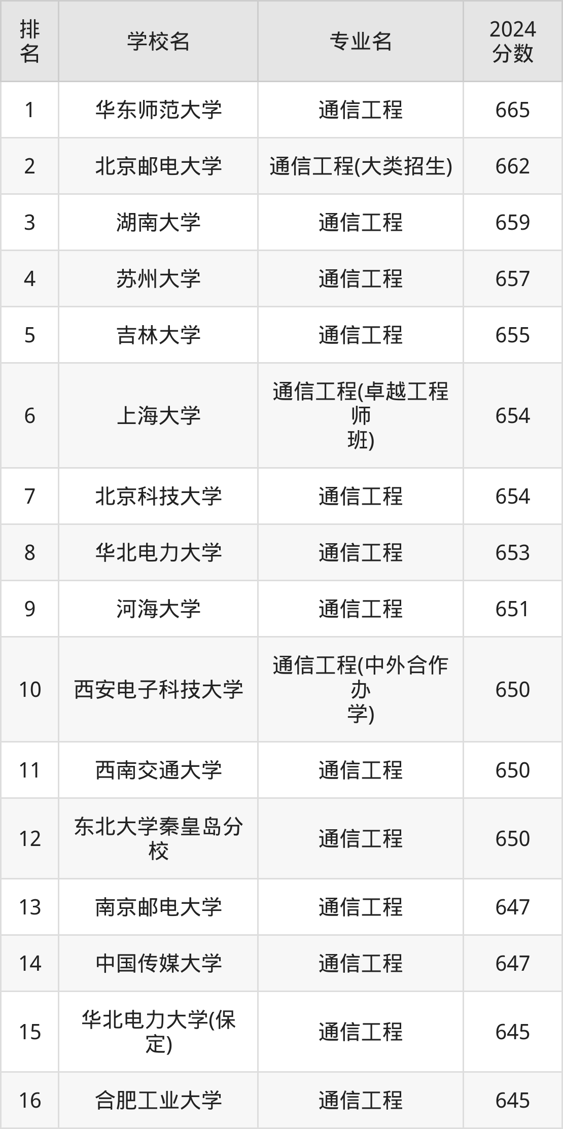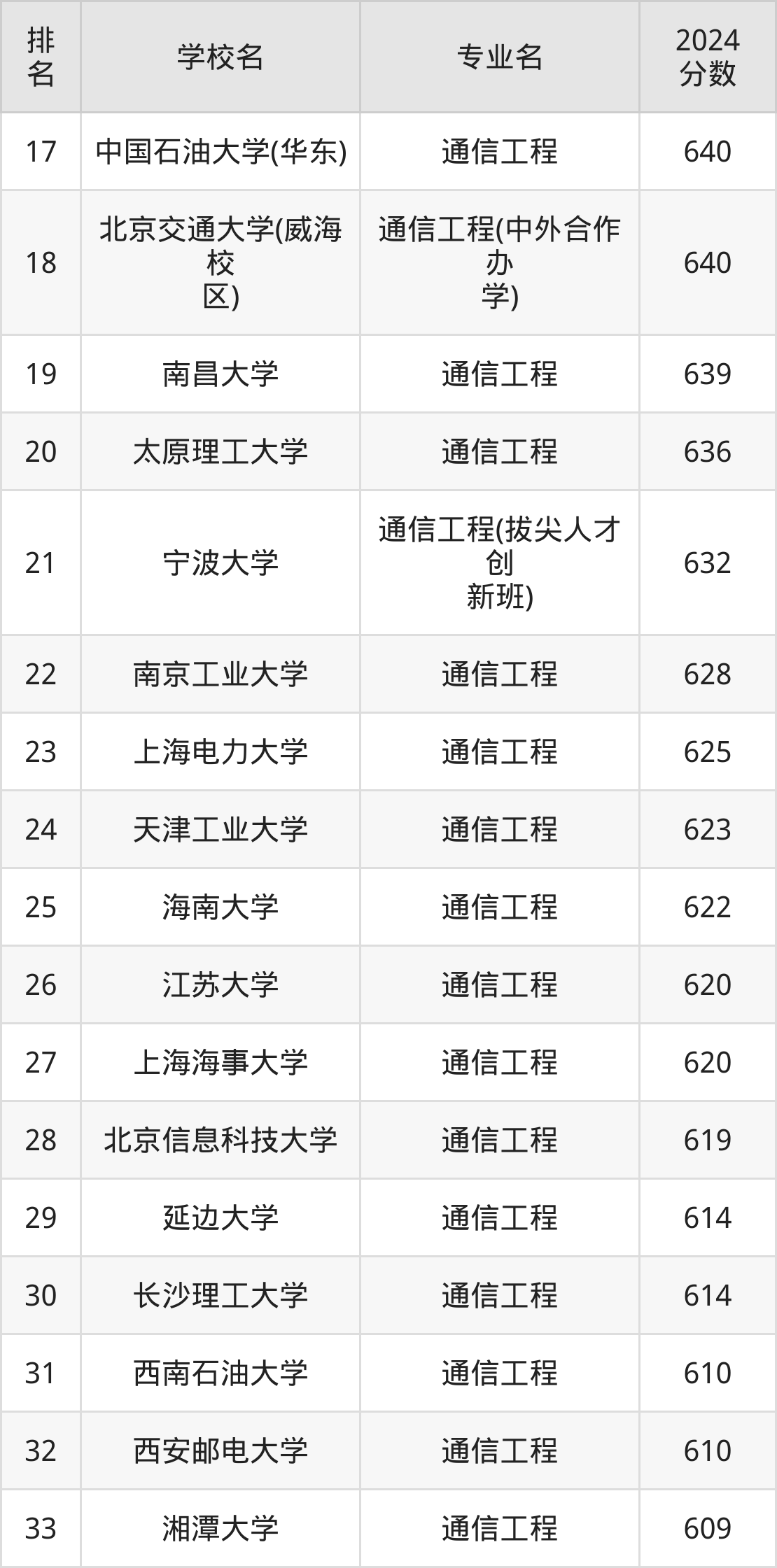 (注:不包含把通信工程专业列在大类专业中招生的名校)