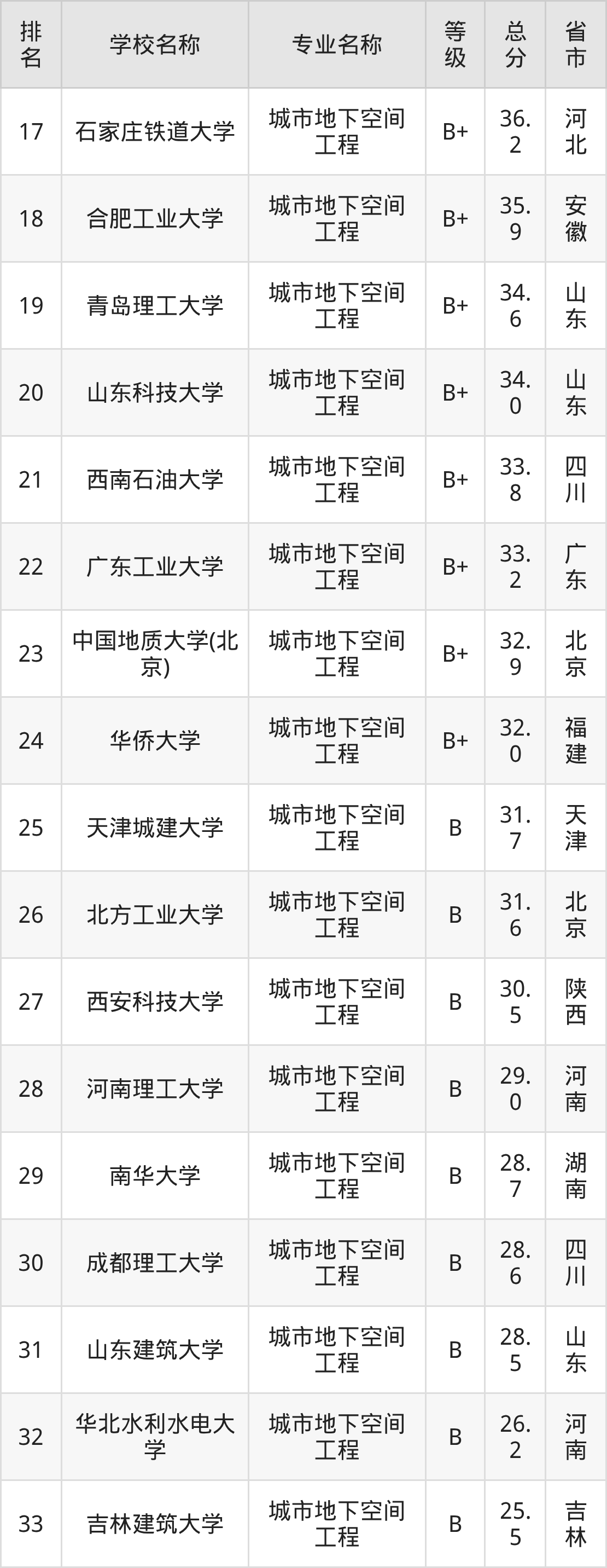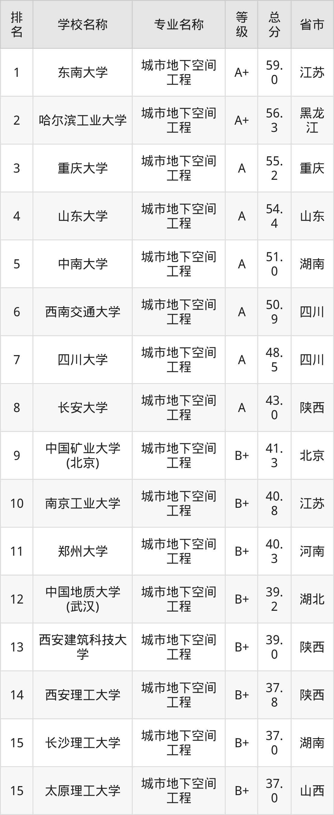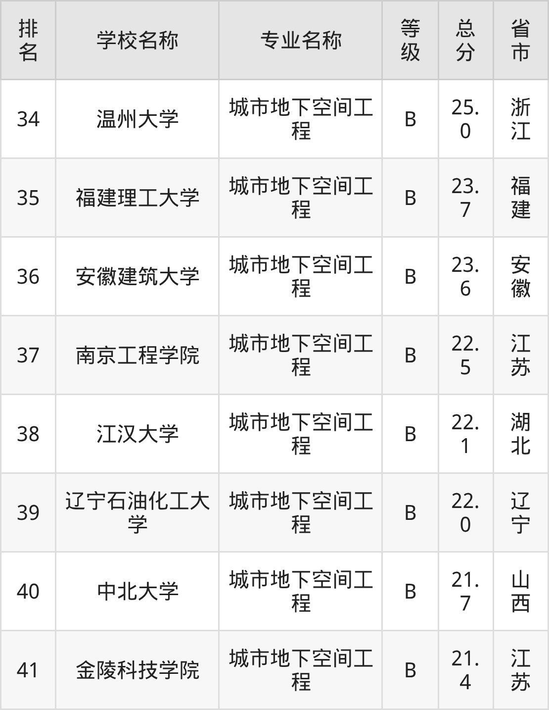 附城市地下空间工程专业全国41所院校排名榜单一览表!