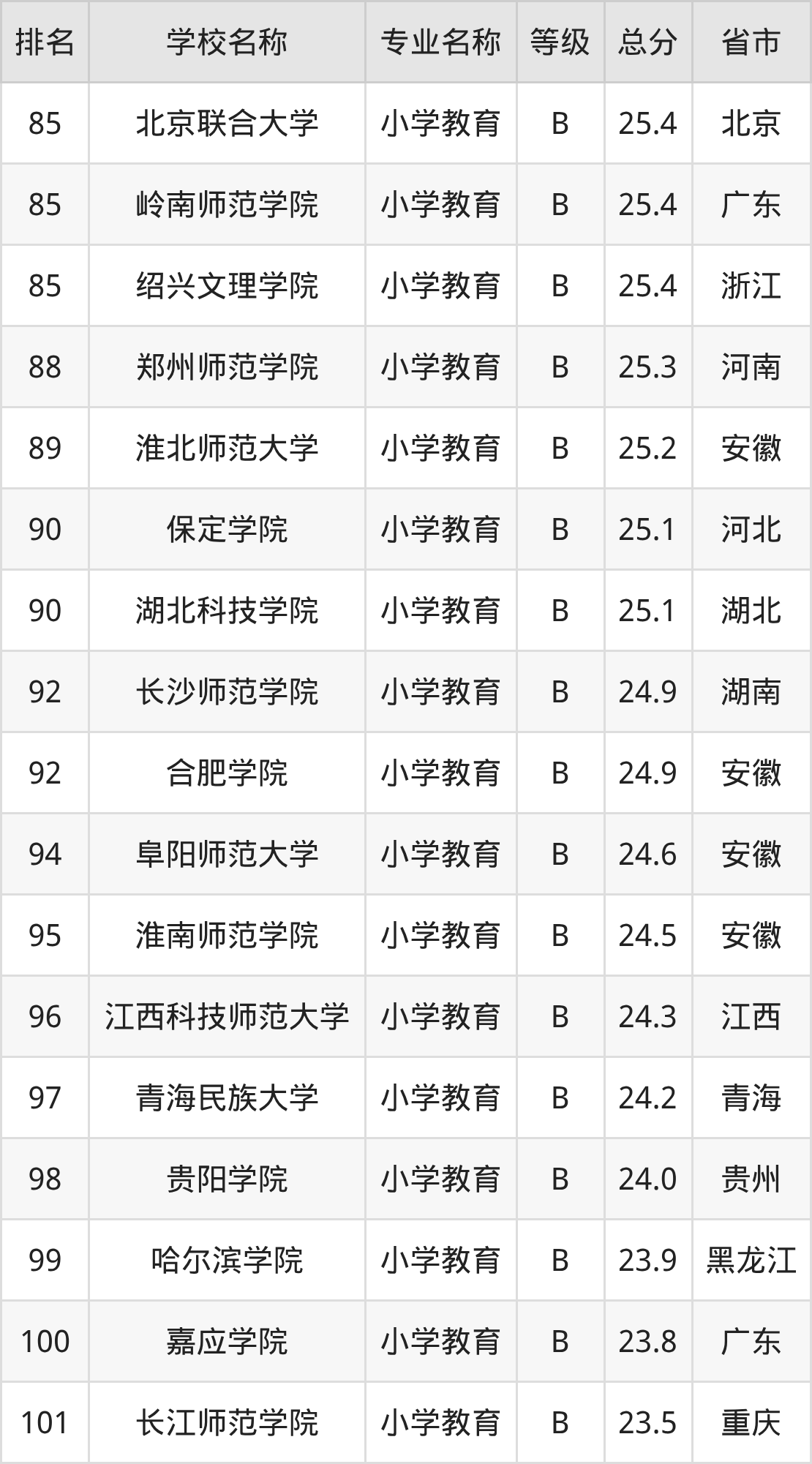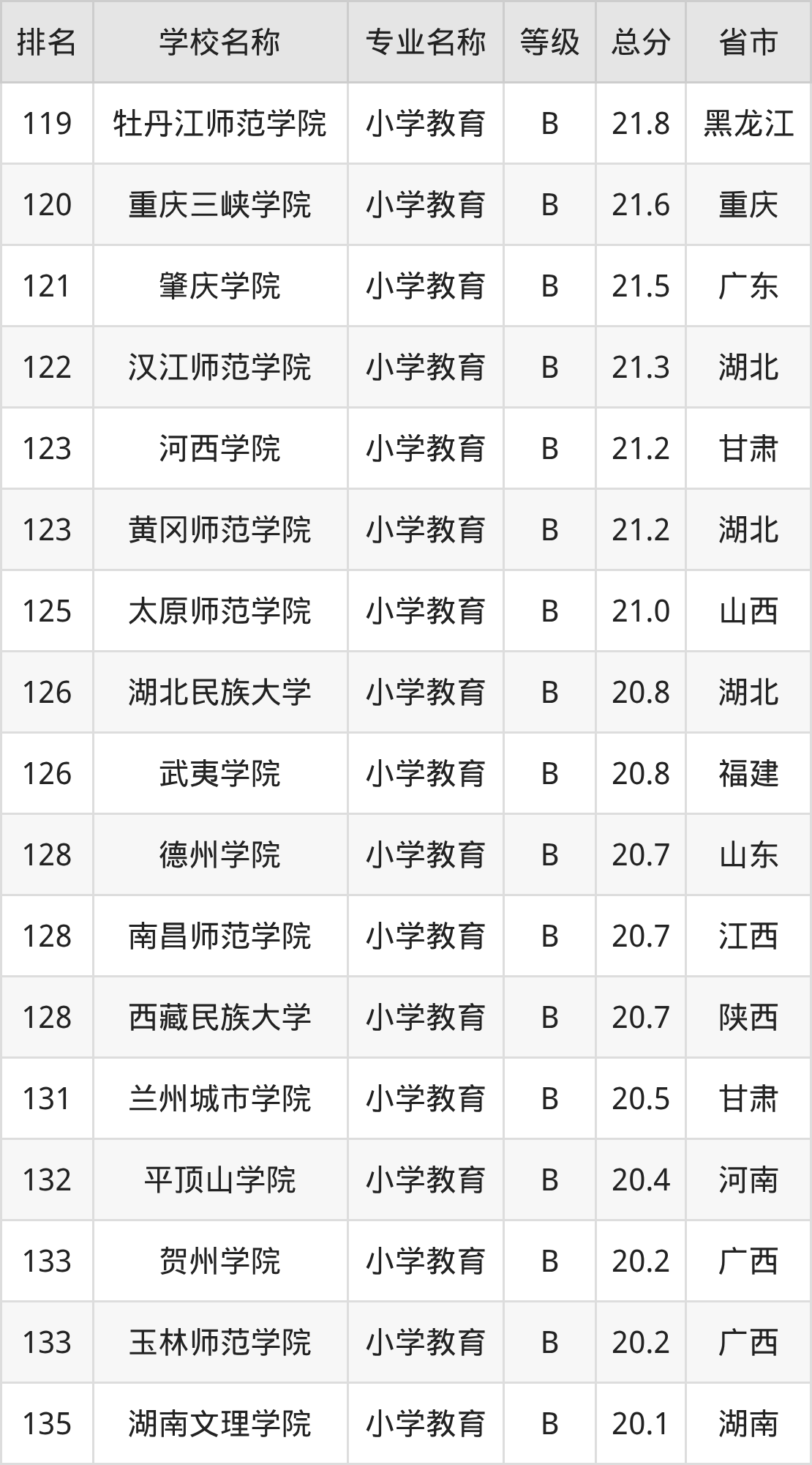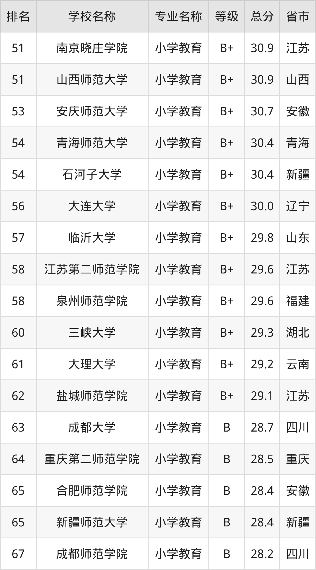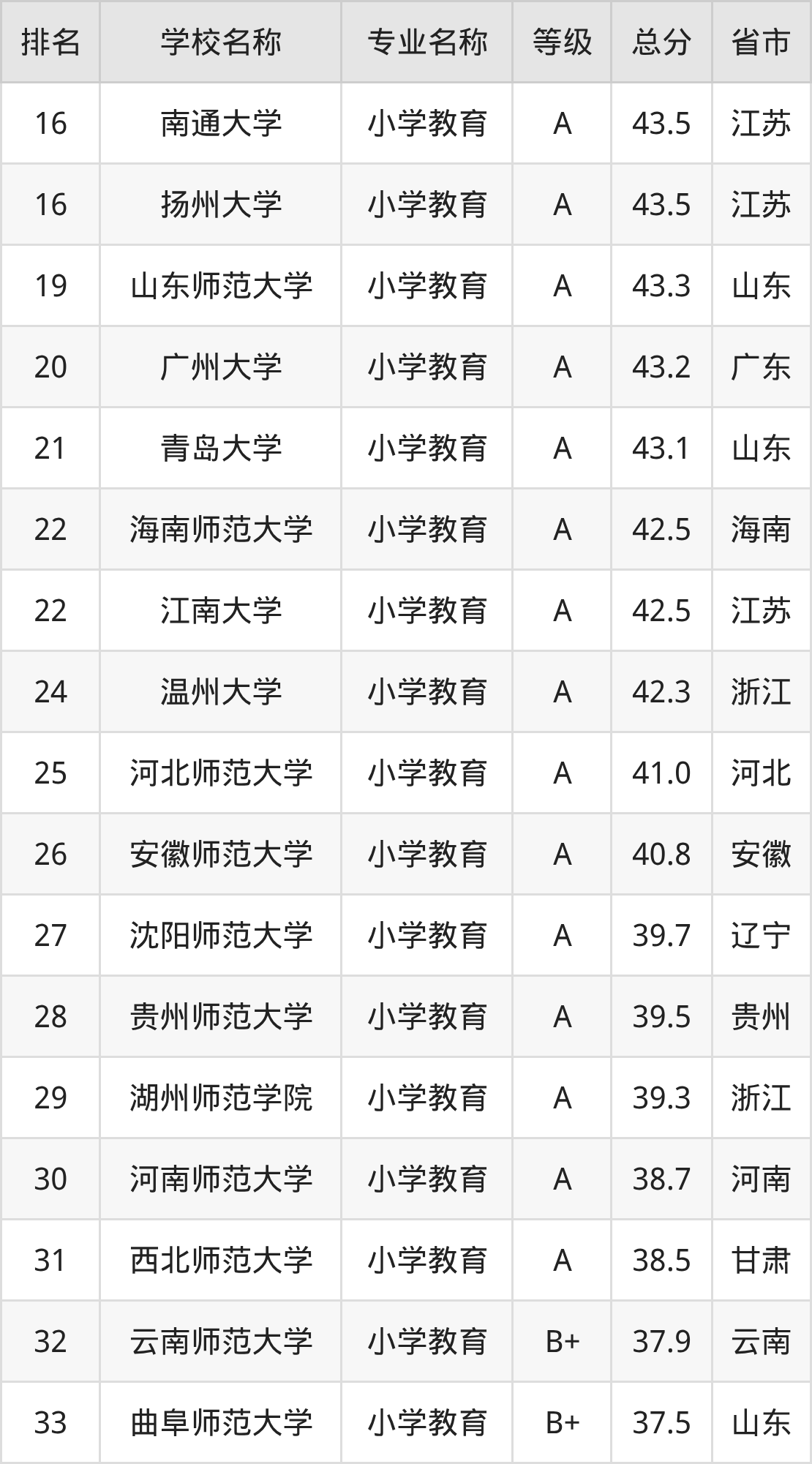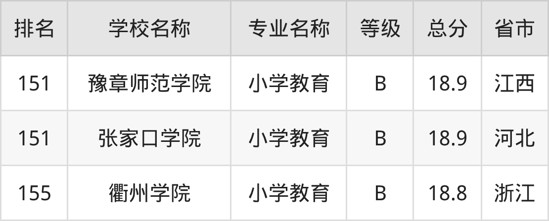 附小学教育专业全国155所院校排名榜单一览表!