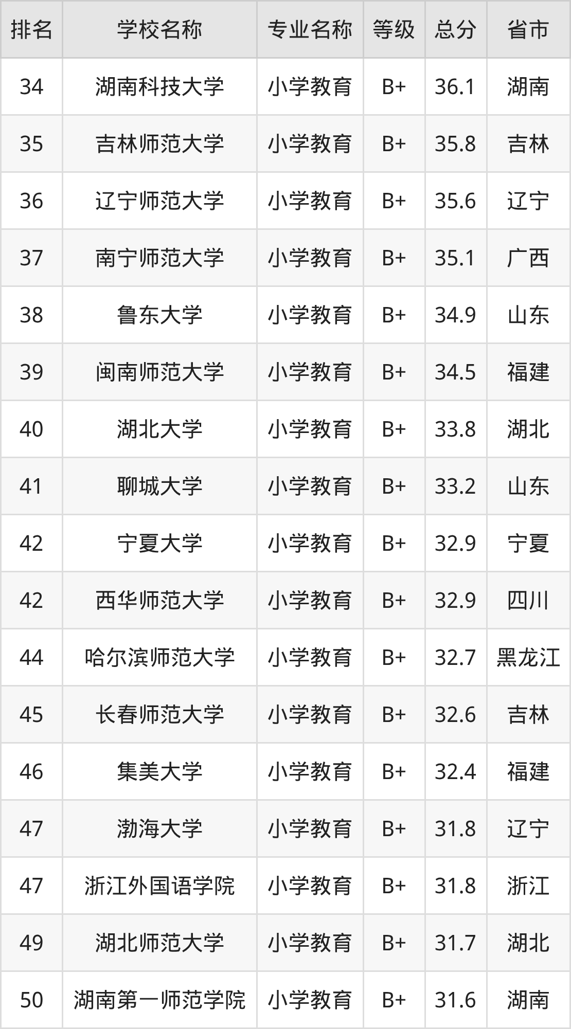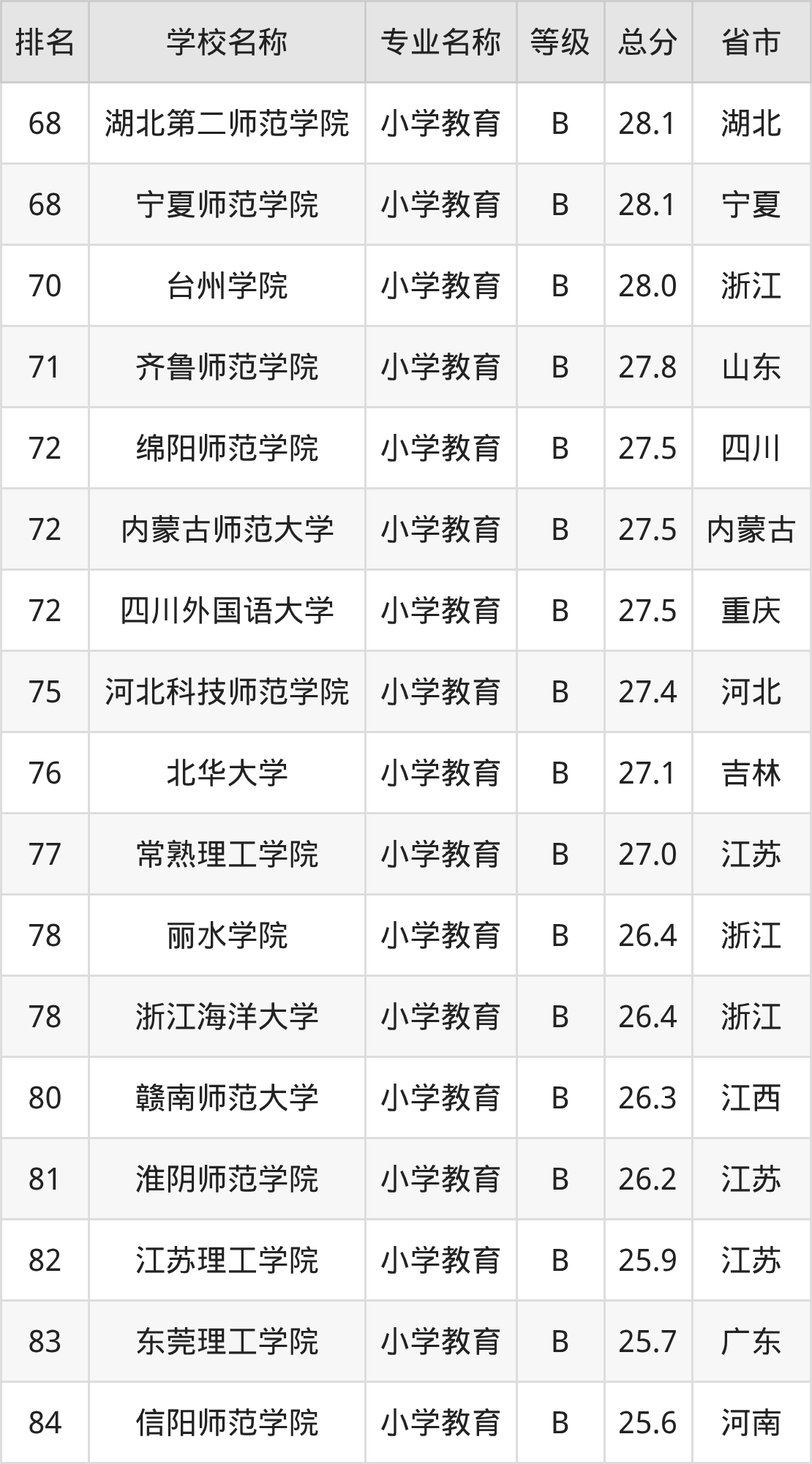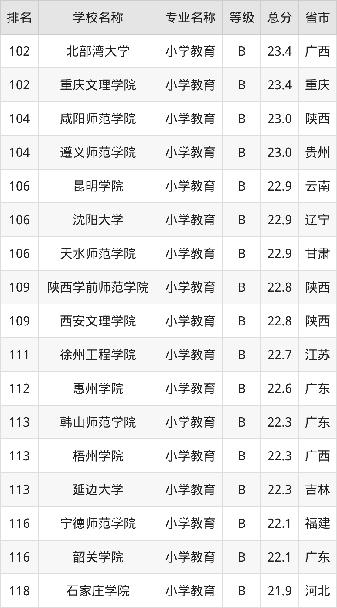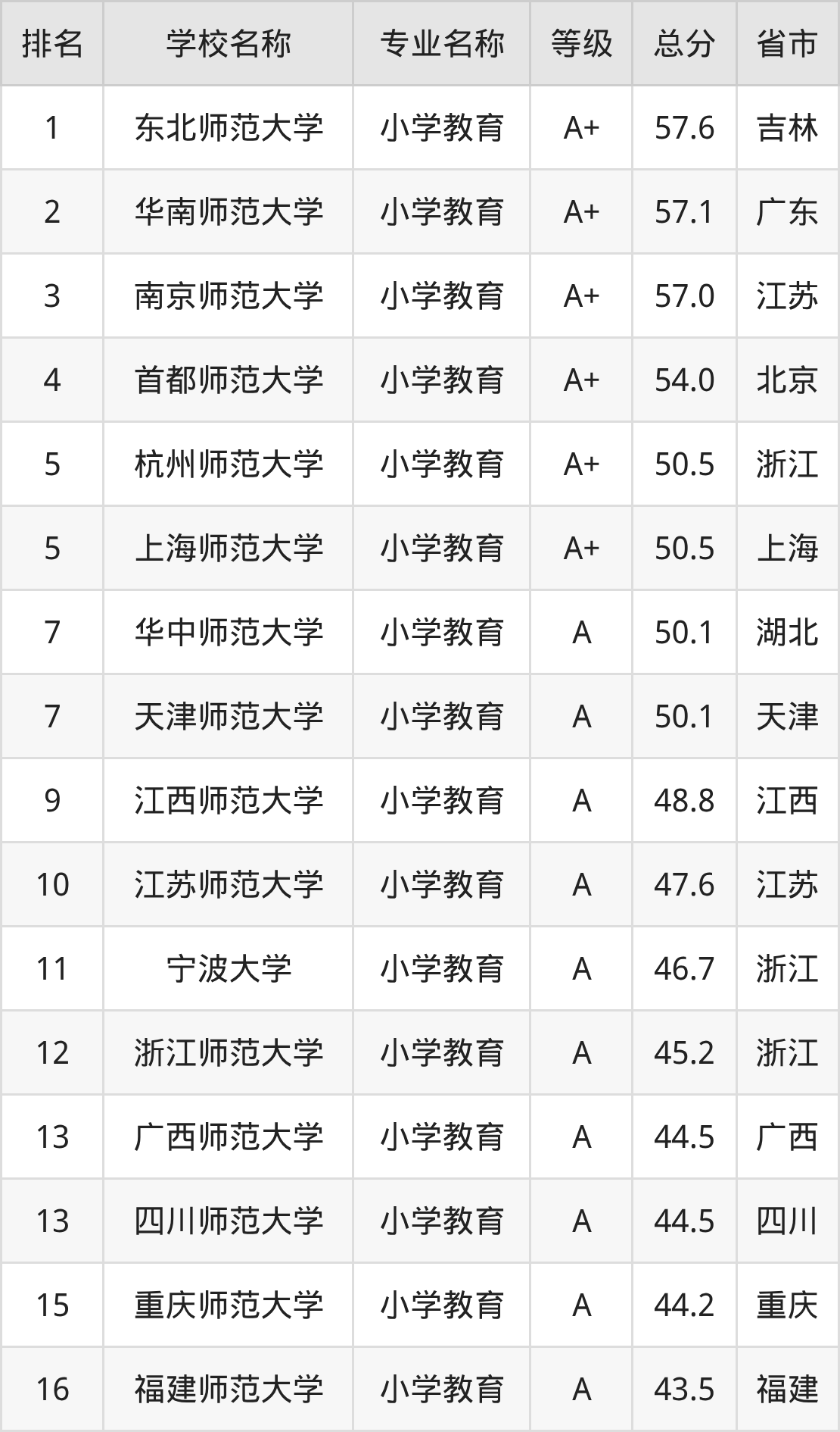 附小学教育专业全国155所院校排名榜单一览表!