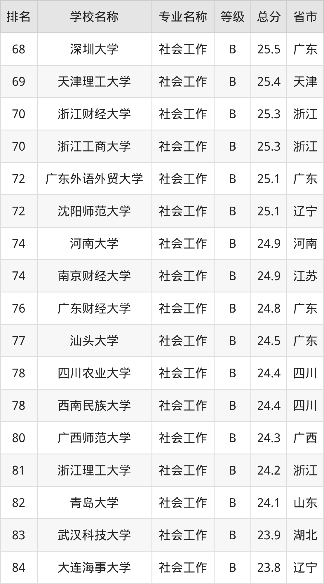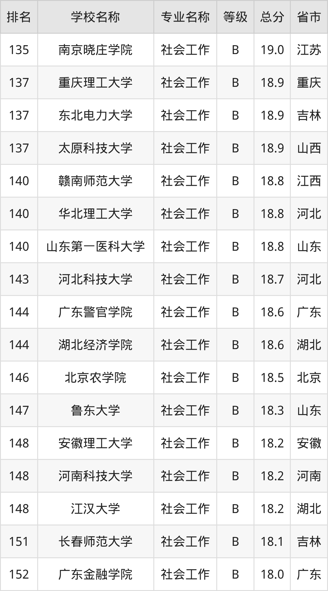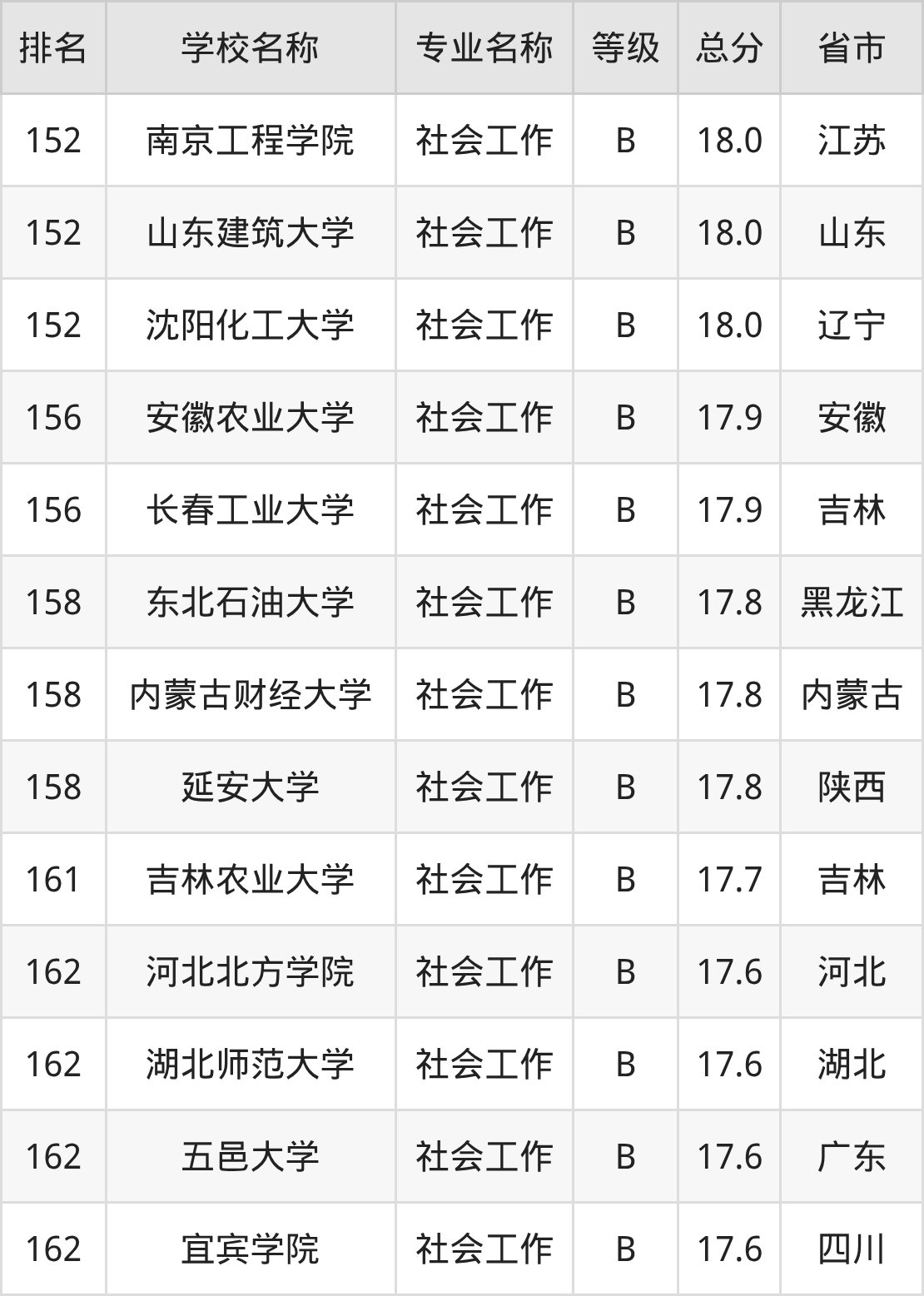 2025年社会工作专业全国大学排名中,排名第一的是北京大学,被软科榜单评为:社会工作专业实力最强的本科院校。本文将展示社会工作专业上榜软科榜单的165所院校排名以及等级评分,供2026年想读社会工作专业的同学们参考!