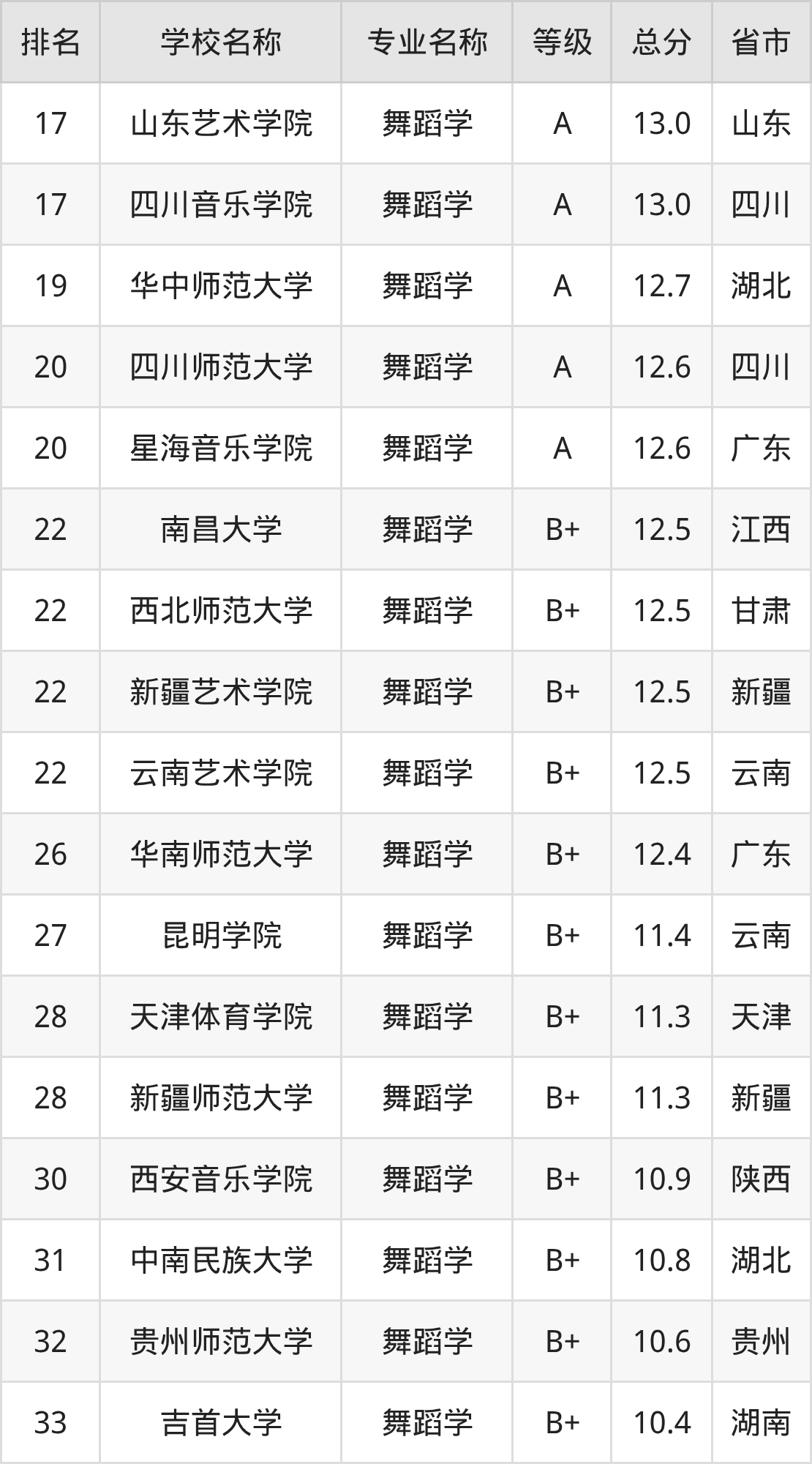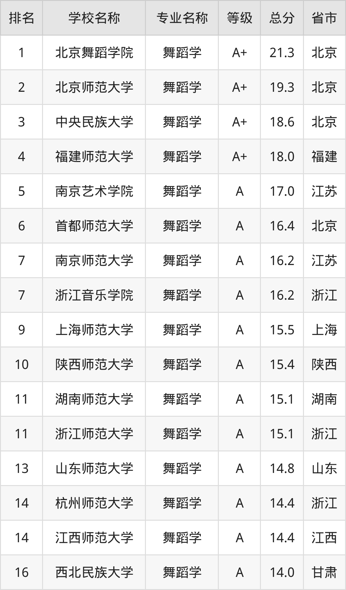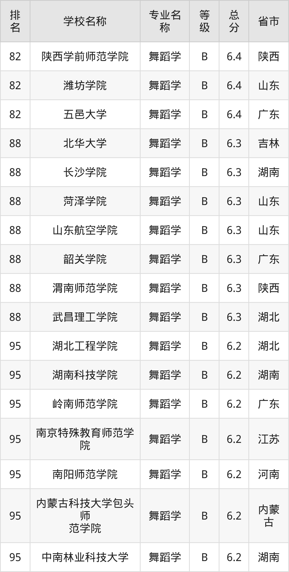 附舞蹈学专业全国110所院校排名榜单一览表!
